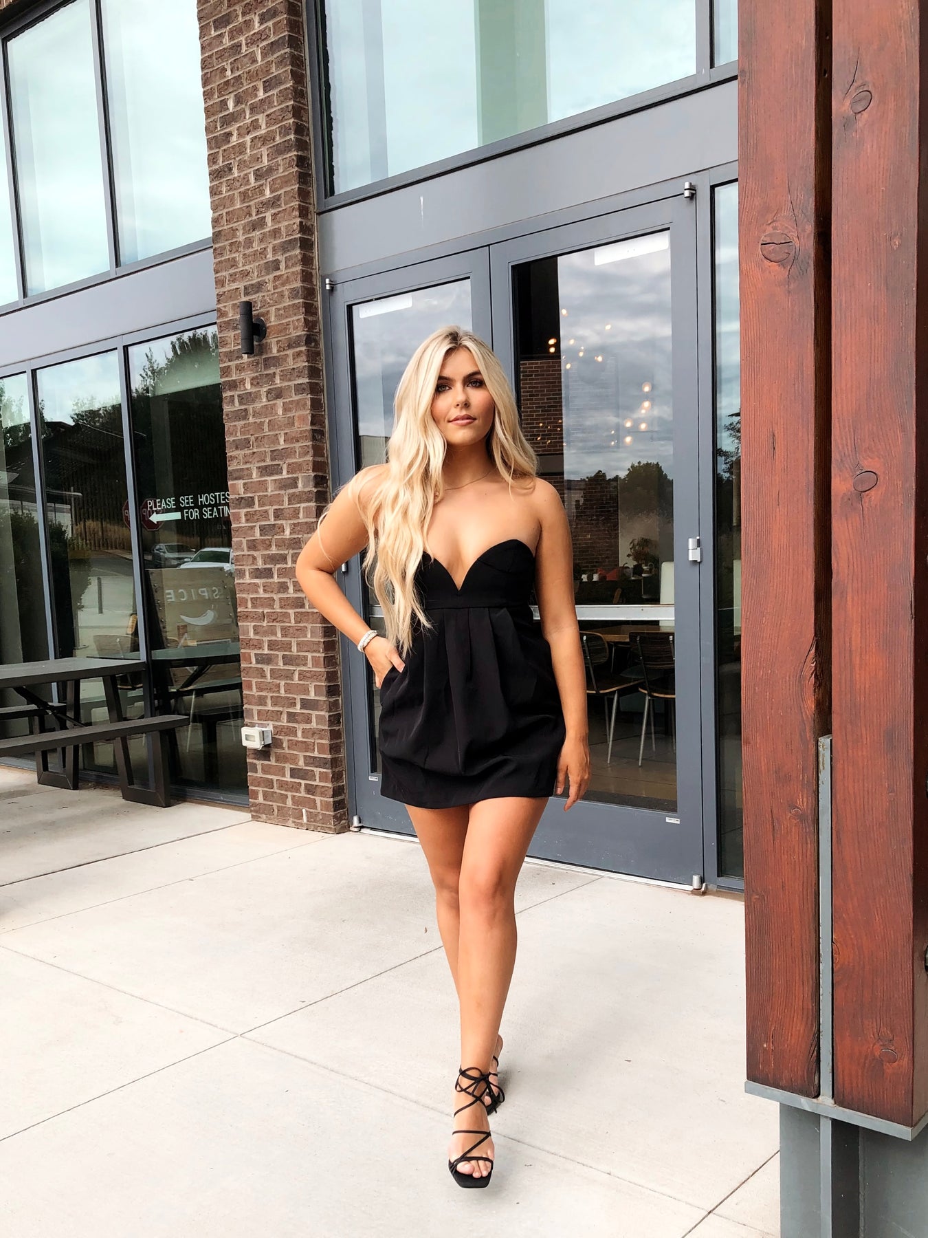Silhouette is everything with this charming mini dress, featuring an elongated sweetheart neckline and a structured empire waist bodice in a playful babydoll silhouette for added flair.