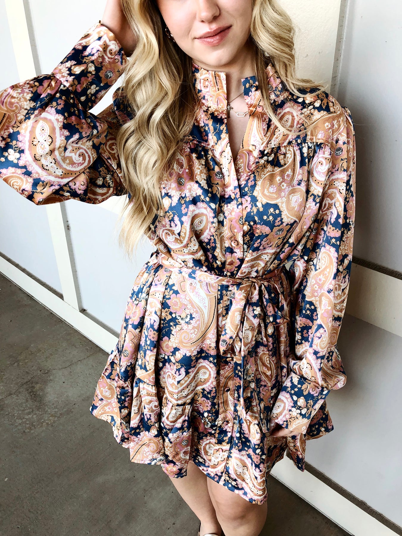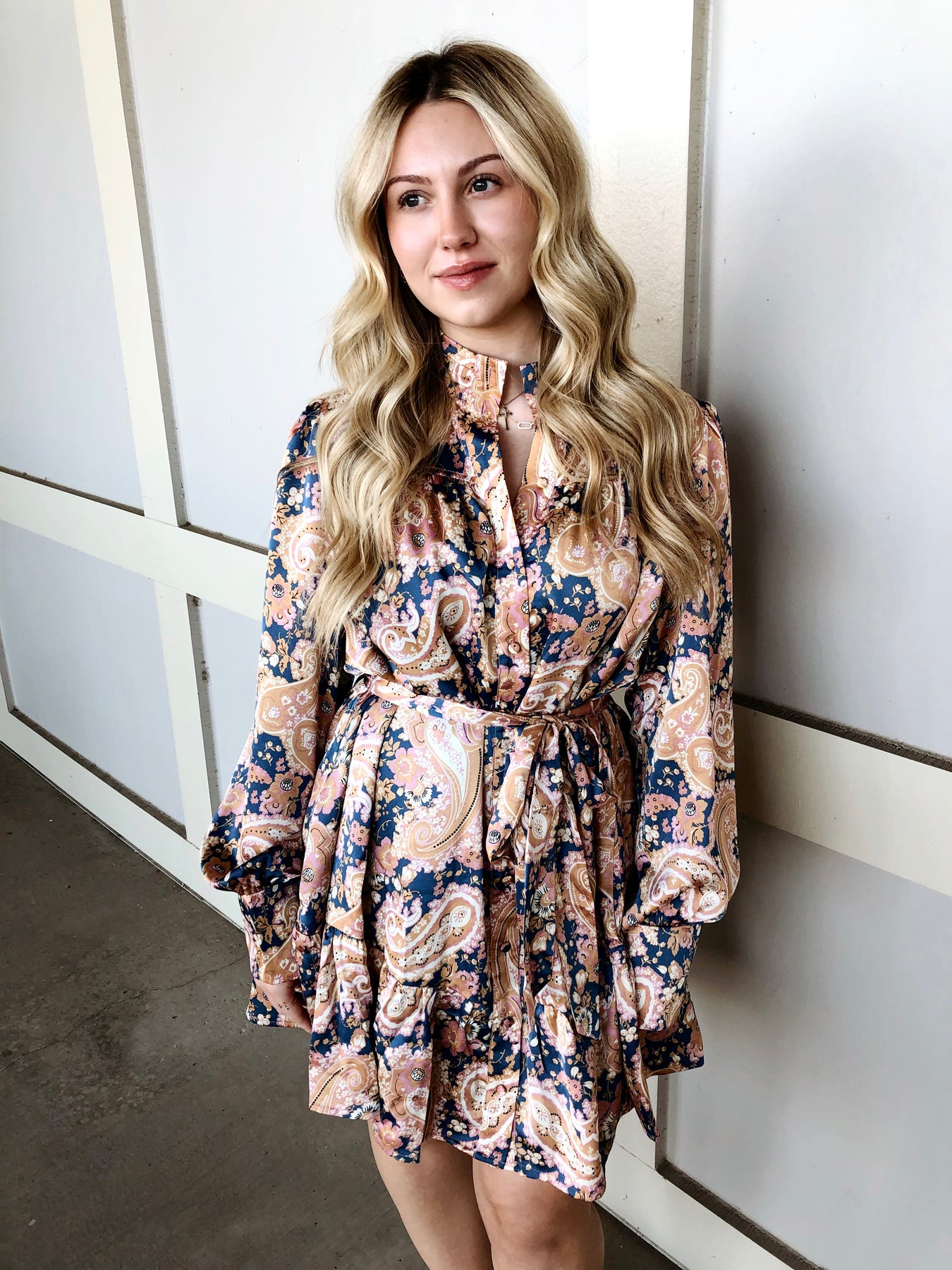Make a statement in this whimsical paisley print mini dress, featuring a striking pleated high collar that frames your face beautifully. Tiered layers create movement and dimension, giving you effortless charm whether you're heading to brunch or a night out. The playful paisley pattern brings personality to any occasion, while the structured collar adds just the right touch of sophistication. Perfect for anyone who loves bold prints and feminine silhouettes.
