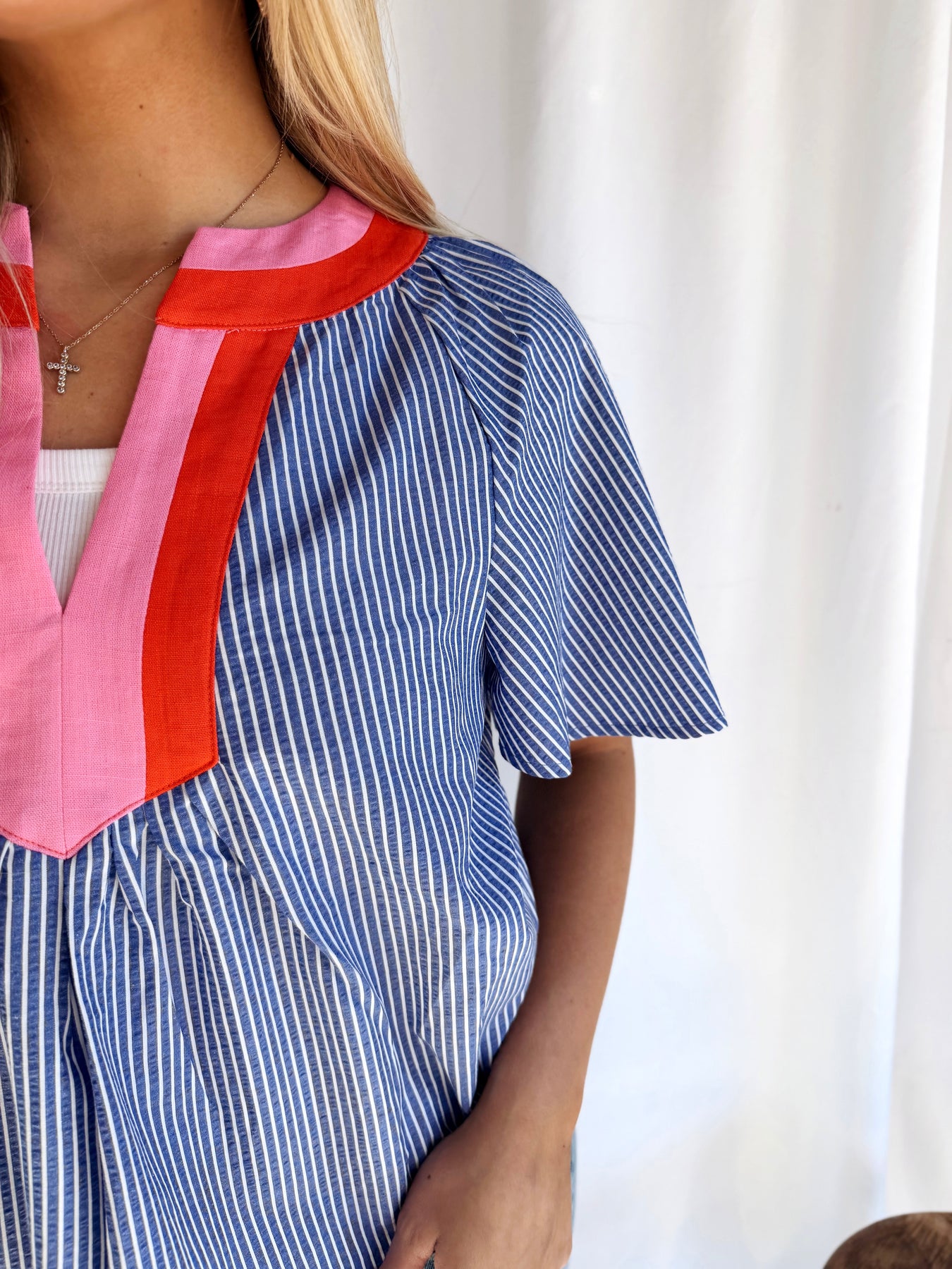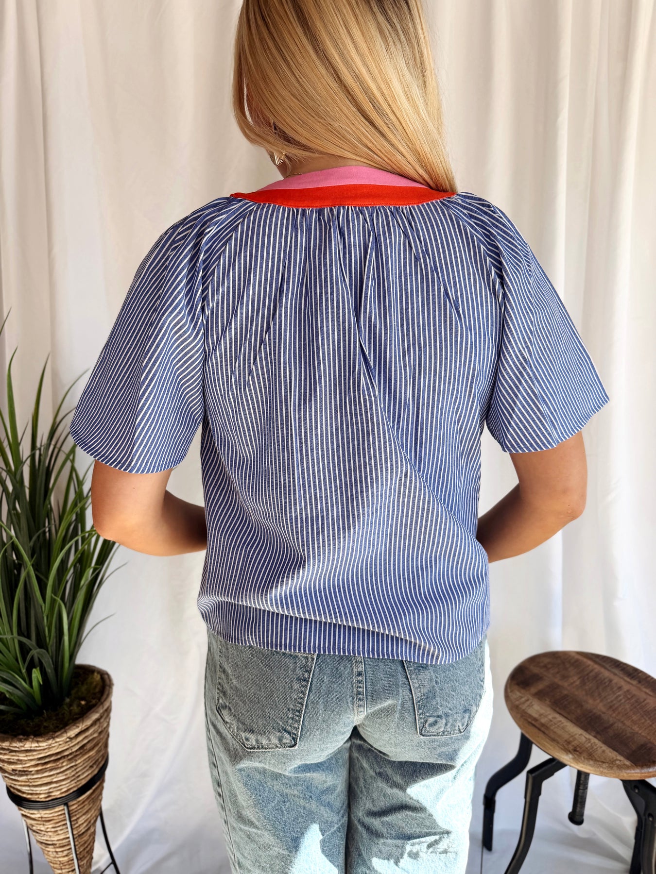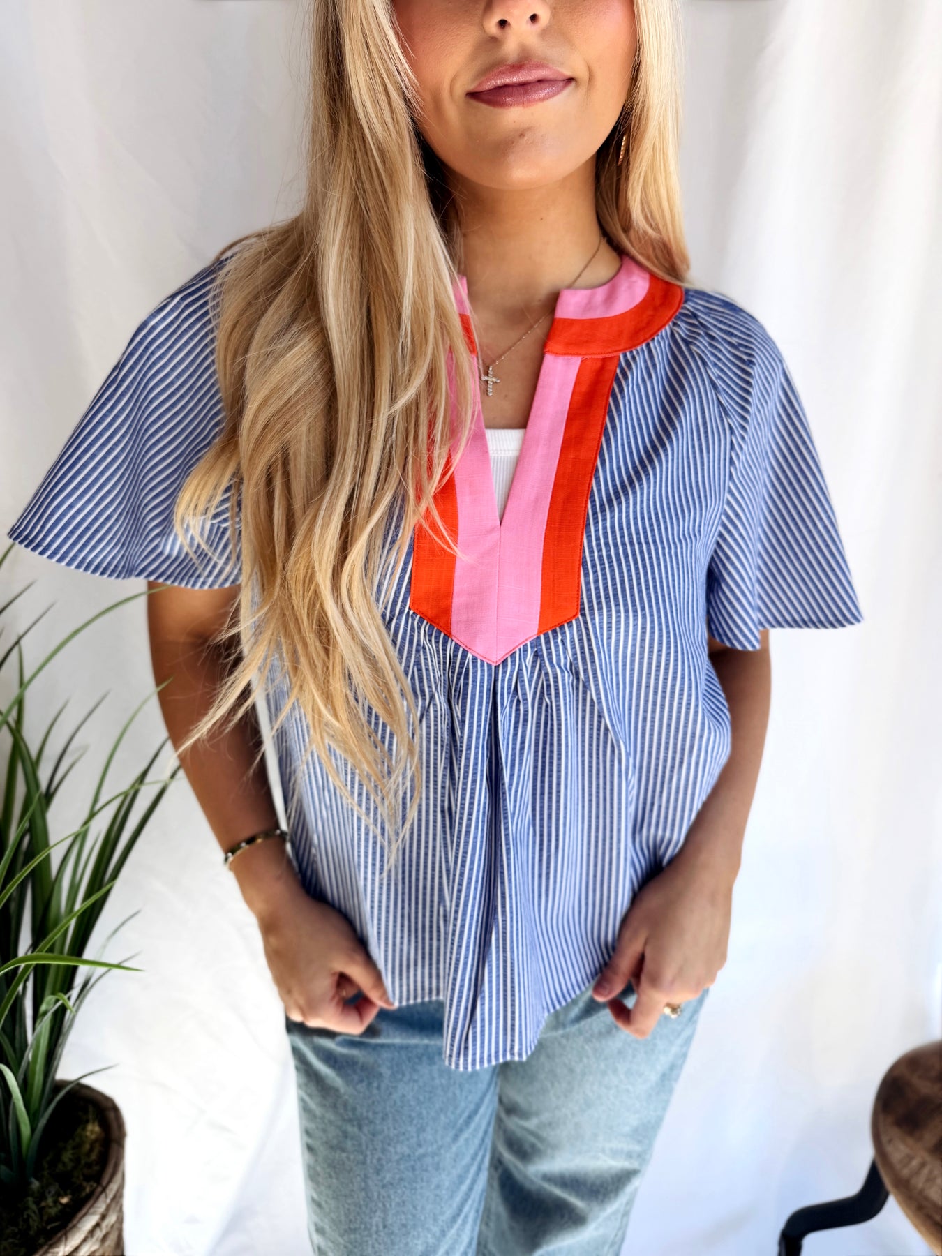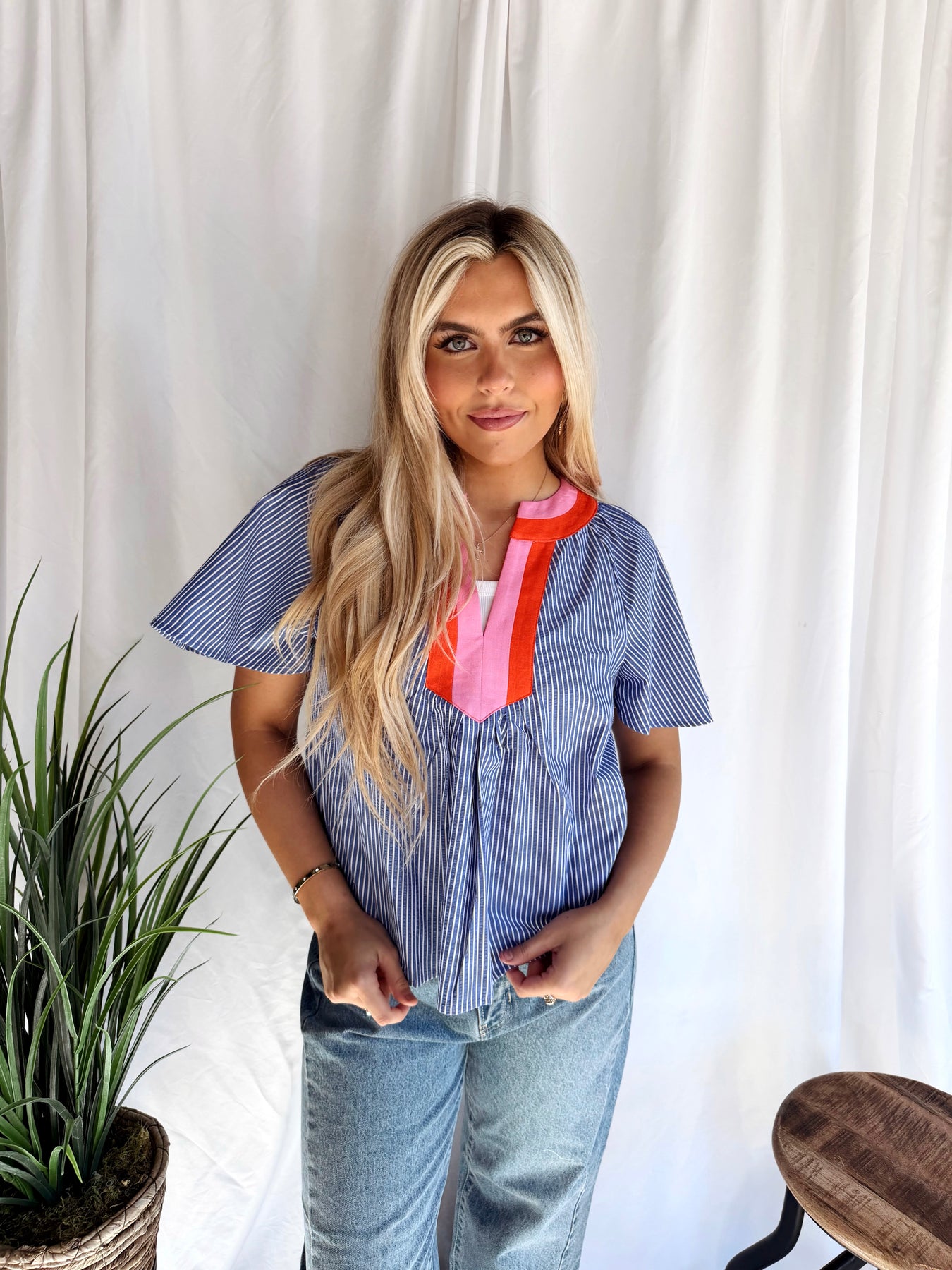 Stripes never go out of style—especially when they're this cheerful! The Bright Side Top features a classic short-sleeve design with vibrant striped detailing that instantly lifts any outfit. Perfect for layering or wearing solo, this versatile piece transitions seamlessly from casual weekends to relaxed workdays. Comfortable, flattering, and endlessly mix-and-matchable with your favorite bottoms.