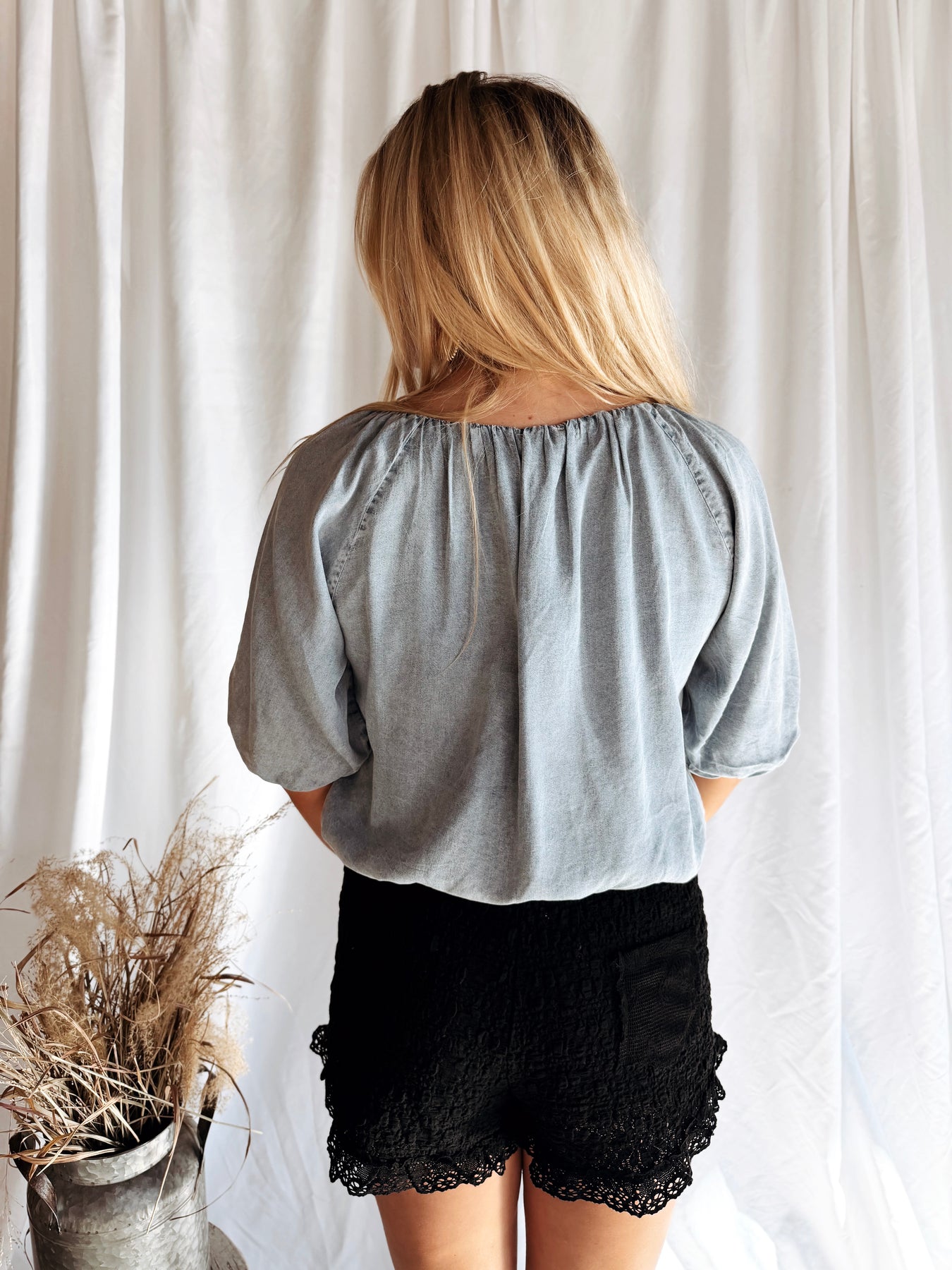 Drift through your day in this breezy short-sleeve top that moves with you. Soft, flowy fabric keeps things comfortable and effortless, whether you're running errands or meeting friends for coffee. The relaxed fit is perfect for layering or wearing solo—your new go-to piece for those perfectly imperfect days.