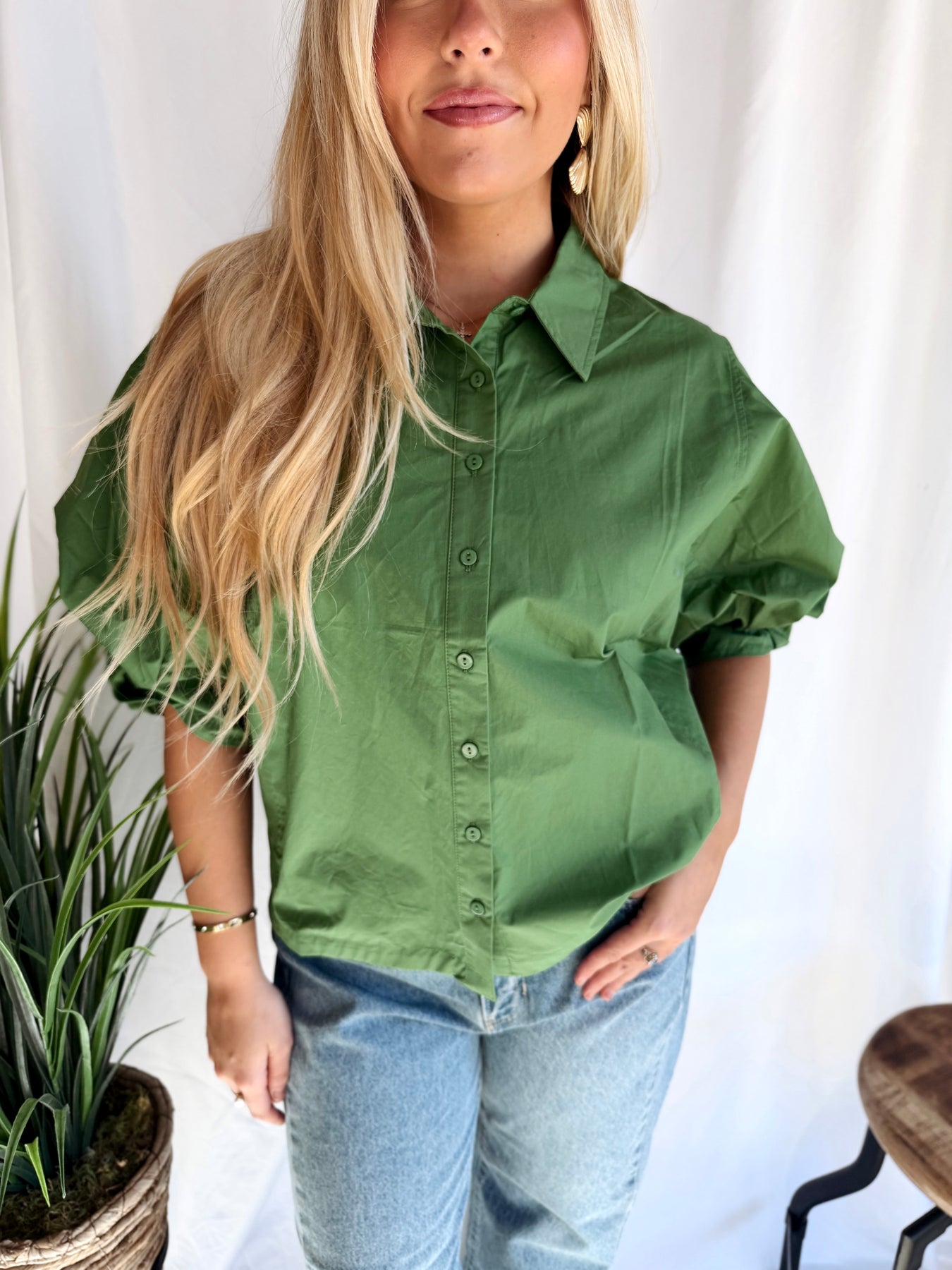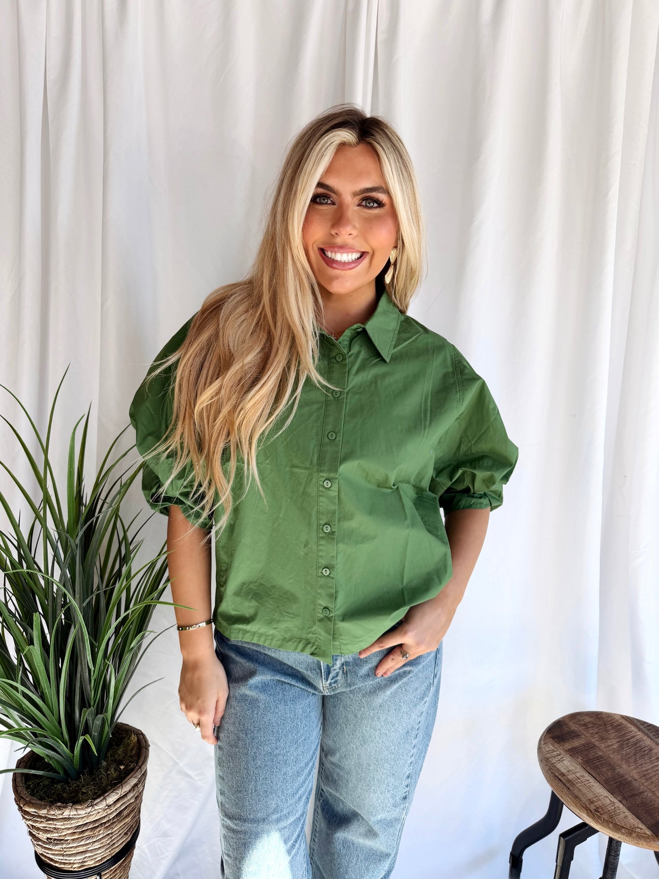 Step into effortless style with the Into the Groove Shirt, a vibrant green poplin button-up that brings movement and personality to your everyday wardrobe. The charming bishop sleeves add a touch of vintage-inspired flair, while the crisp poplin fabric keeps you looking polished from morning to night. Whether you're dressing up for brunch or keeping it casual, this versatile piece is your new go-to for making a statement without trying too hard.