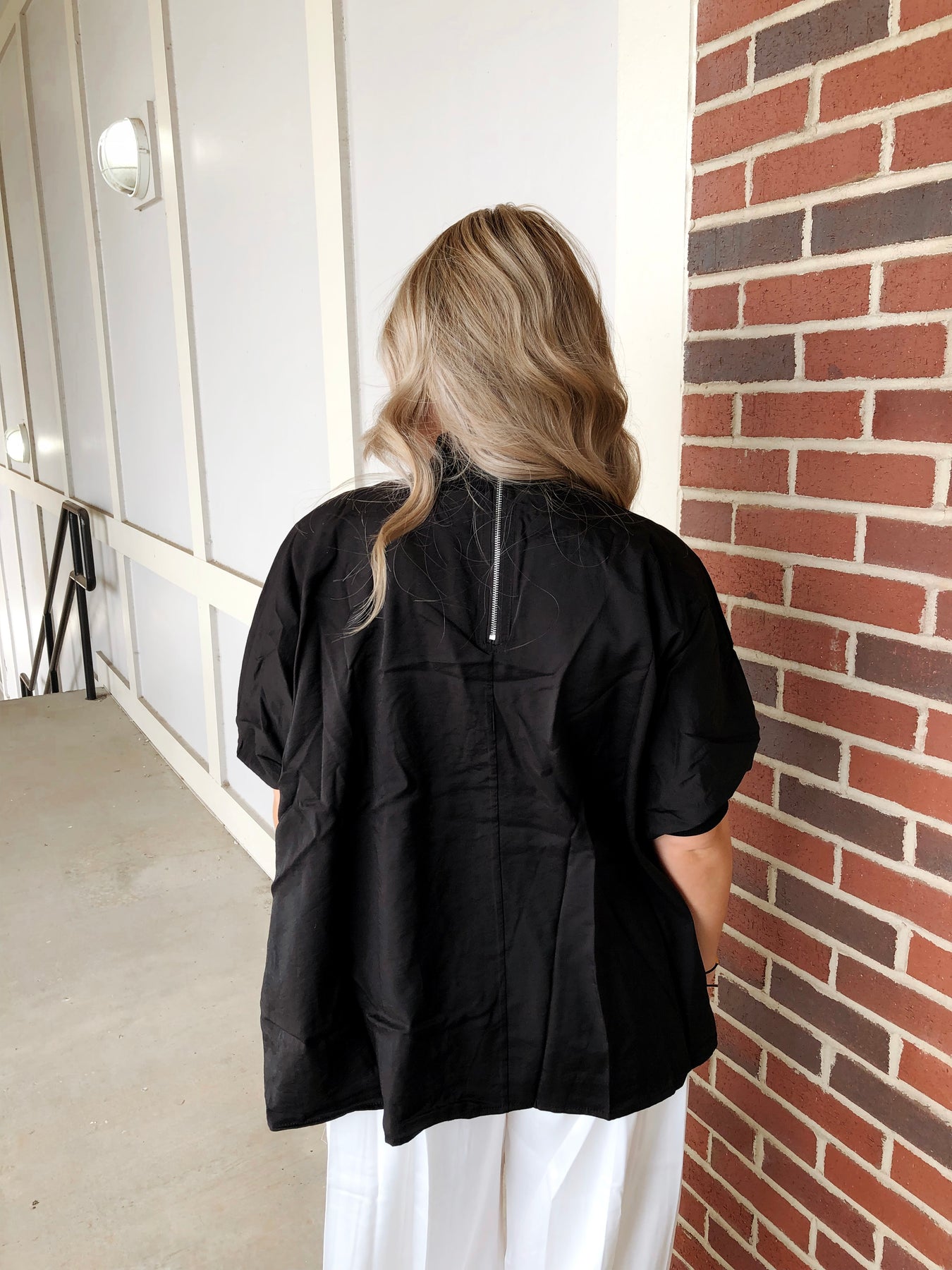 Embrace cozy vibes with a twist in this oversized mock neck top, featuring contrast rib detailing for an extra pop. The zipper back adds a fun, unexpected edge while making it easy to wear. Available in chic olive and classic black, it’s the perfect playful piece to mix comfort with style.