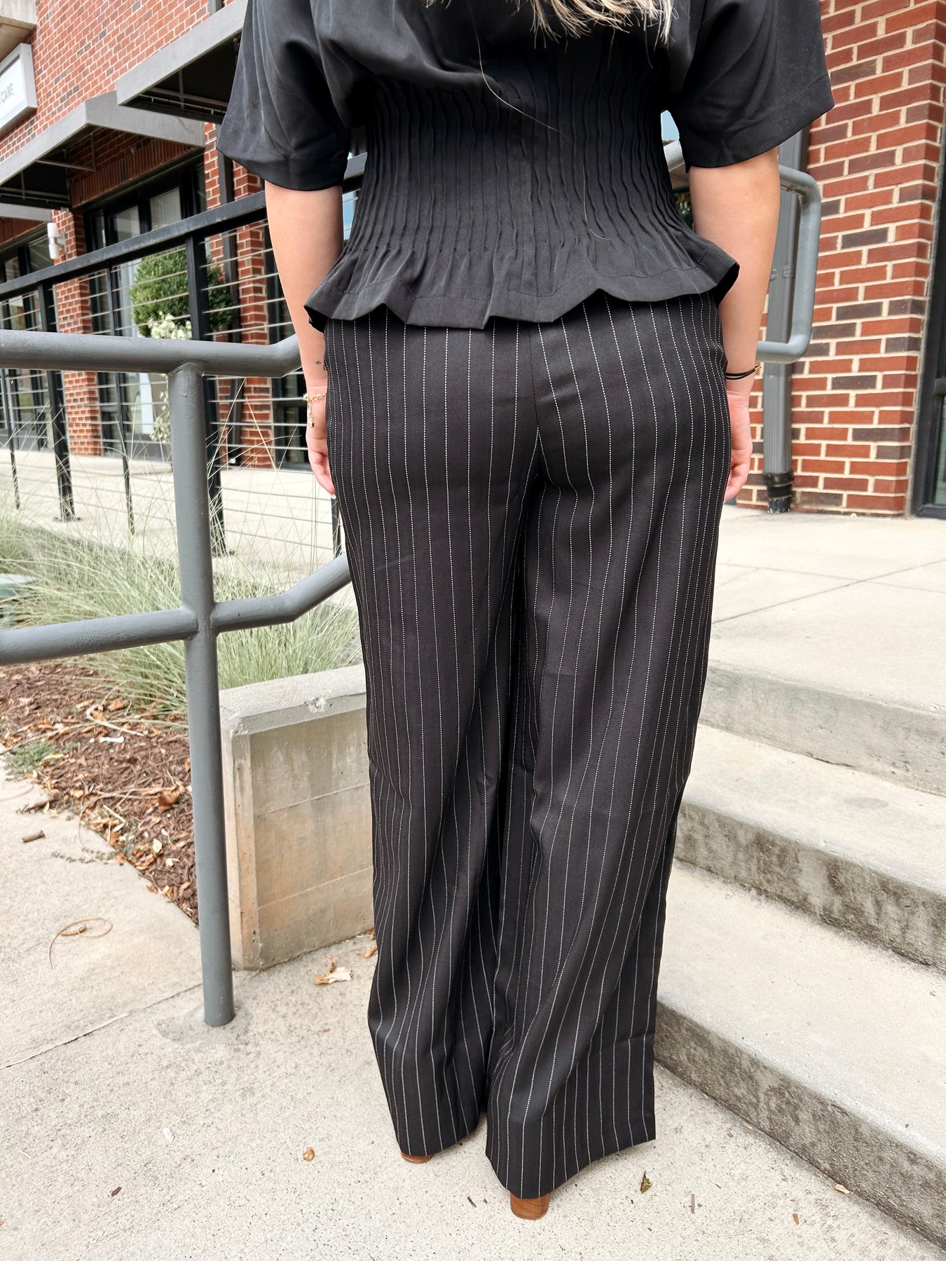 Step into the city lights with our Cityscape Pants! These black pinstriped, high-waisted wonders bring a cheeky twist to classic office chic. They hug your waist just right, elongating your legs and adding a dash of daring to your everyday look. Perfect for strutting through urban jungles or starring in your next adventure—dress them up, dress them down, but never dress boring!
