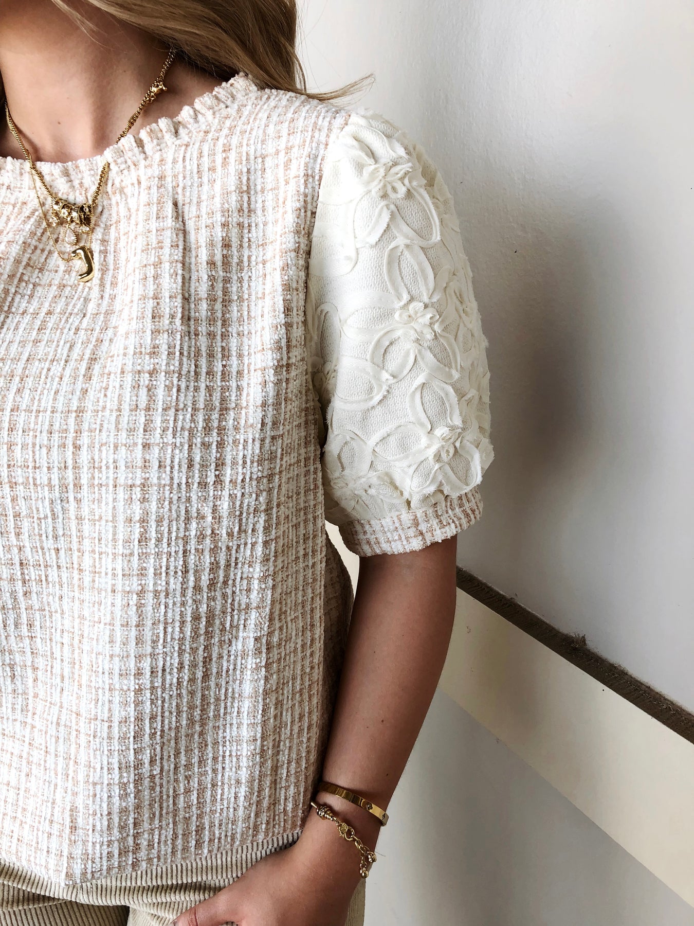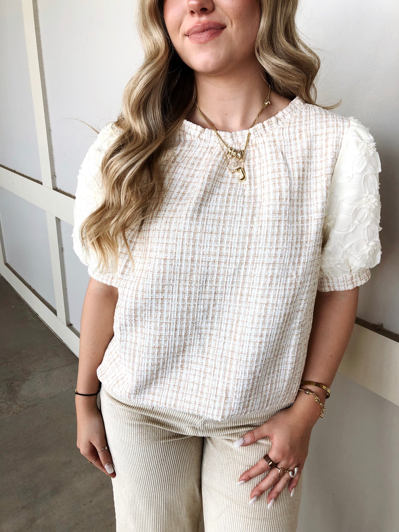 Brighten your wardrobe with the Say Something Top, featuring a charming cream plaid texture and delicate floral lace accents. The playful ruffle neck adds a flirty touch, making it perfect for turning heads wherever you go. Comfortable yet stylish, this top effortlessly blends classic patterns with romantic details for an irresistible look.
