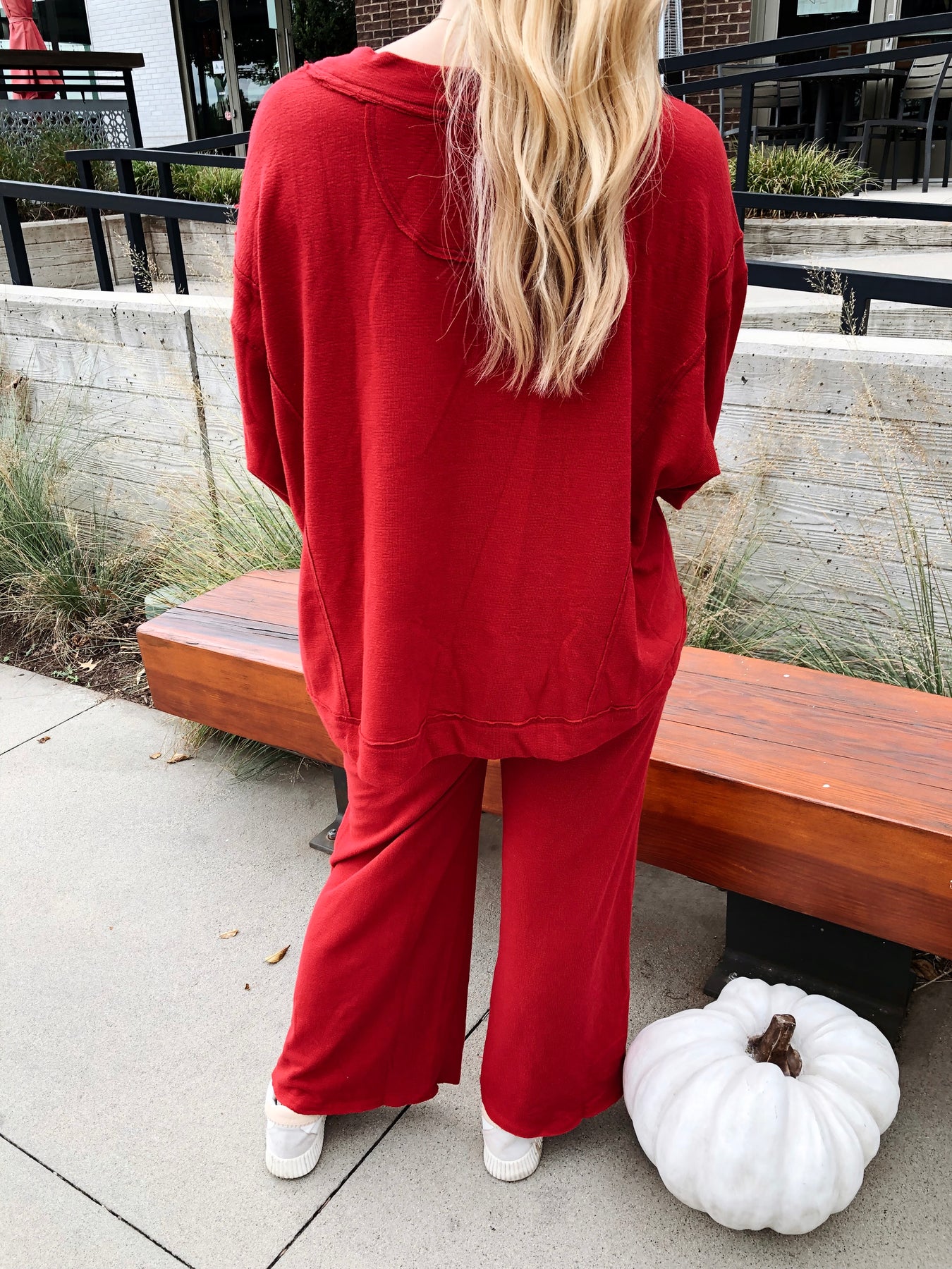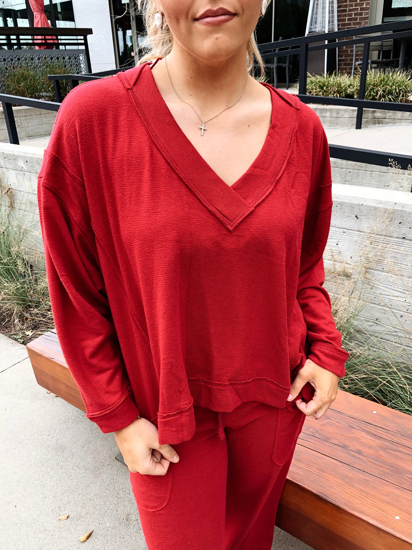 Cozy up in effortless style with the Staycation pullover from Free People. Designed with a relaxed silhouette and soft, lived-in feel, this versatile layer is perfect for lounging at home or styling on the go. Finished with a deep V-neck and textural exposed seams, it’s the ultimate blend of comfort and cool.