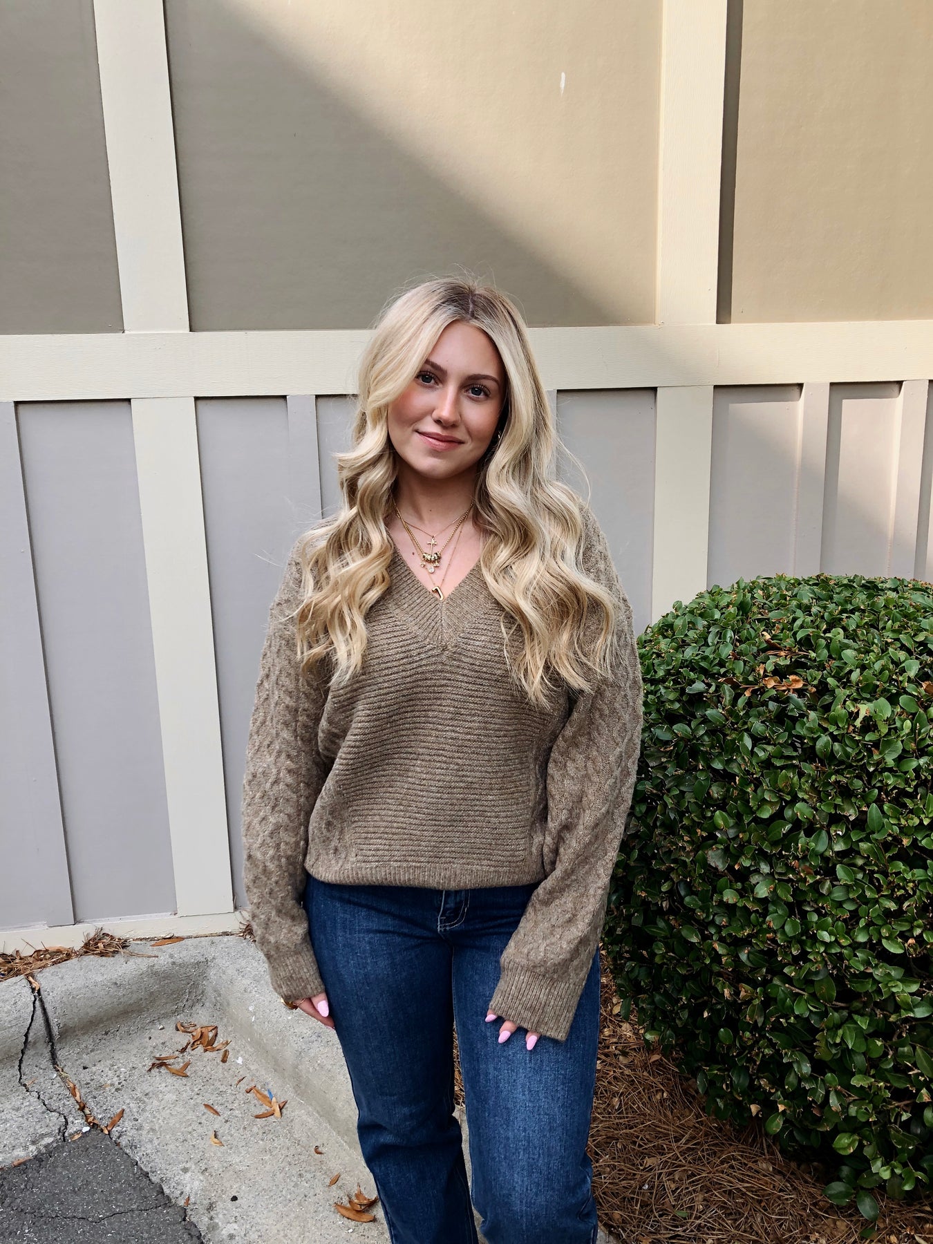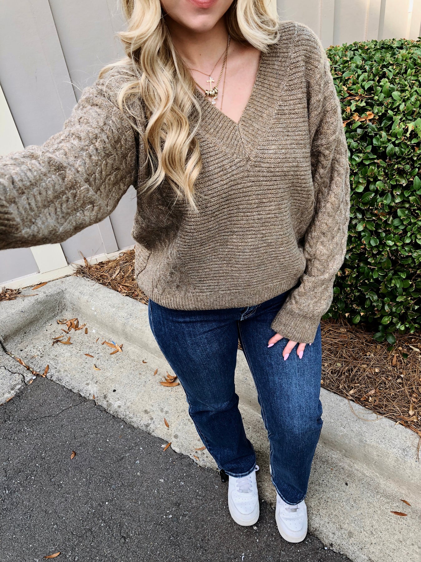 Cozy up in the Brooklyn Sweater, a delightful brown cable-knit wonder with a soft touch and a flirty V-neck. Its playful hi-low hem adds flair to every step, making chilly days feel like a fun fashion adventure. Perfect for layering or wearing solo, it’s your new go-to for warmth with a twist!
