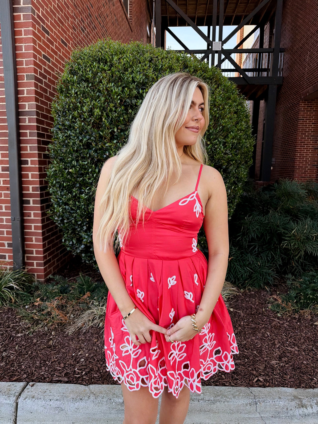 Elevate your spring wardrobe with the Emelia Dress in Paradise Pink. This charming mini dress features adjustable straps that let you customize the fit to perfection, paired with delicate embroidered details that add a touch of sophistication. Whether you're celebrating Easter or embracing the season, this piece transitions effortlessly from brunch to garden parties. The soft pink hue and thoughtful design make it an instant favorite for any spring occasion.