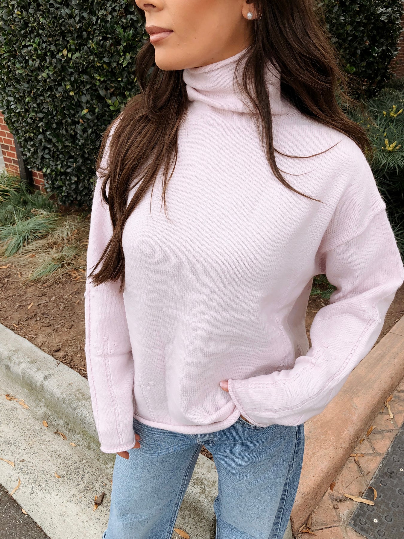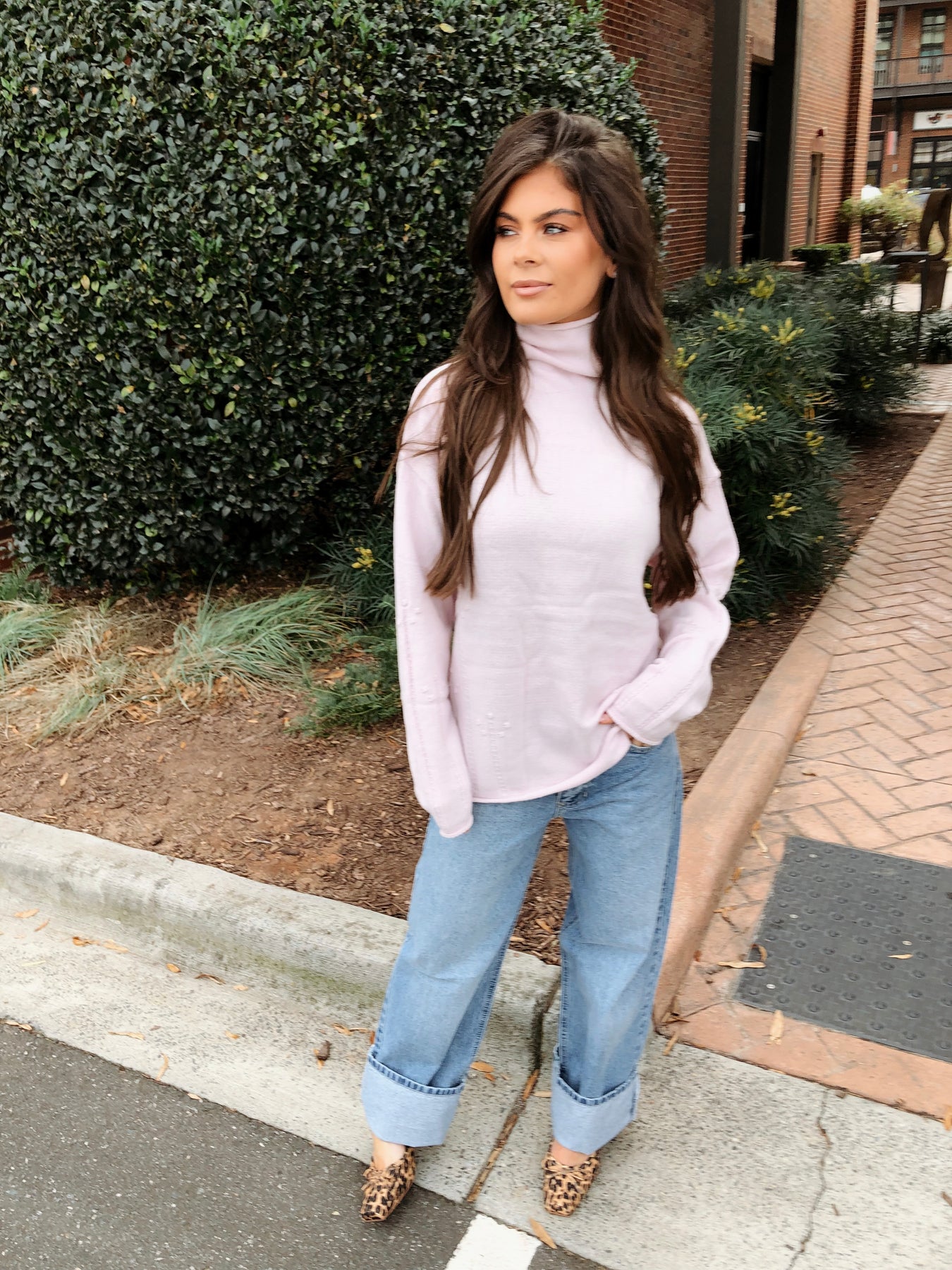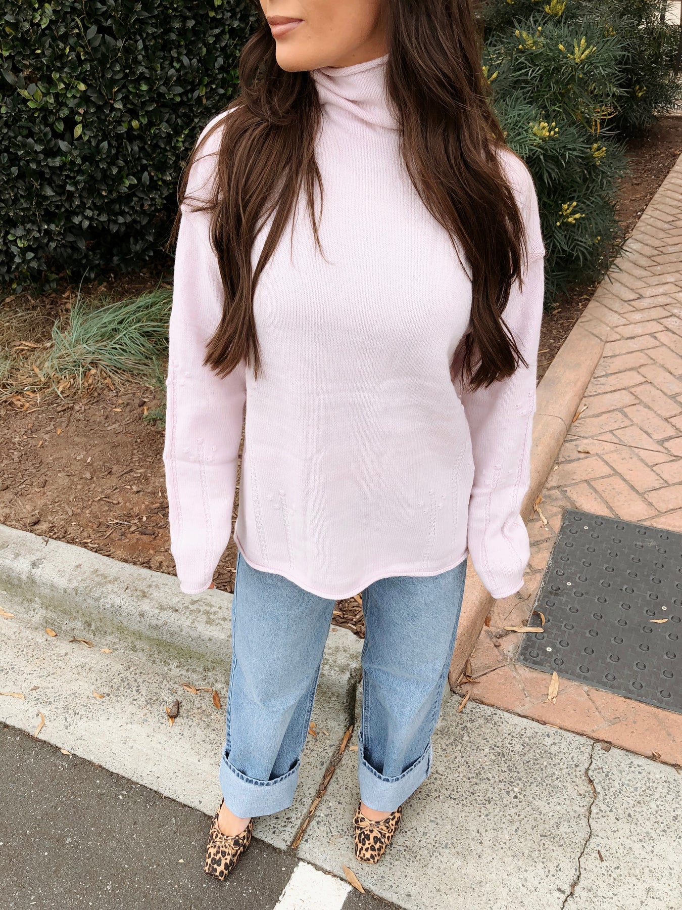 Wrap yourself in cozy charm with this delightful wool sweater featuring a chic mock neck and adorable pink embroidered details. Perfect for layering or wearing solo, this piece brings a touch of whimsy to your everyday wardrobe. The soft wool keeps you warm while the playful embroidery adds personality and flair. Whether you're catching up with friends or enjoying a quiet day in, this sweater is your go-to for comfort that doesn't compromise on style.