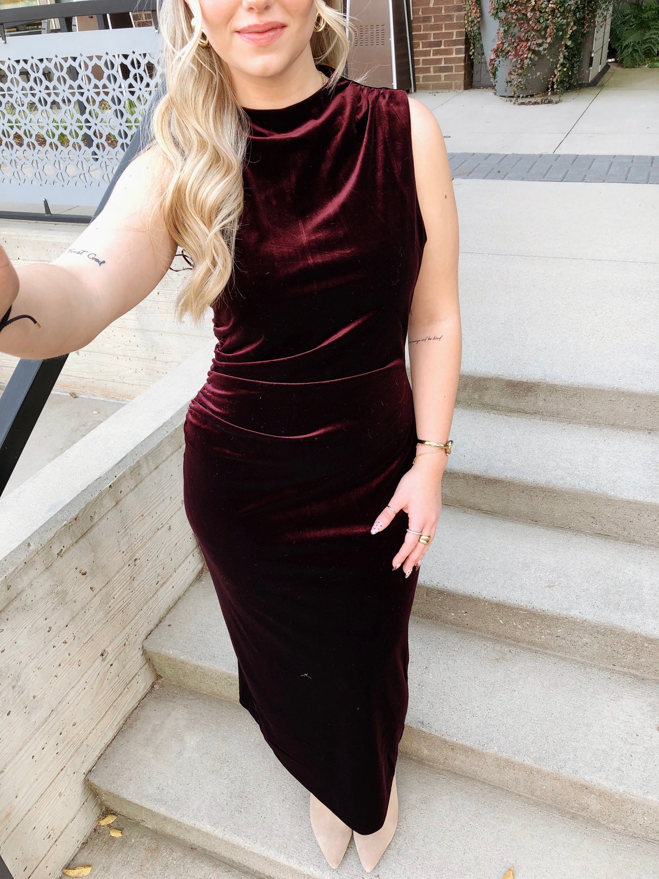 Slip into effortless elegance with the MO Dress, a sleek velvet midi that's anything but basic. The funnel neck adds a touch of sophistication while the side ruching and draping create flattering curves and movement. A daring slit keeps things playful and modern, while the sleeveless cut lets you show off your shoulders. Perfect for date night, cocktail parties, or whenever you want to feel absolutely fabulous.