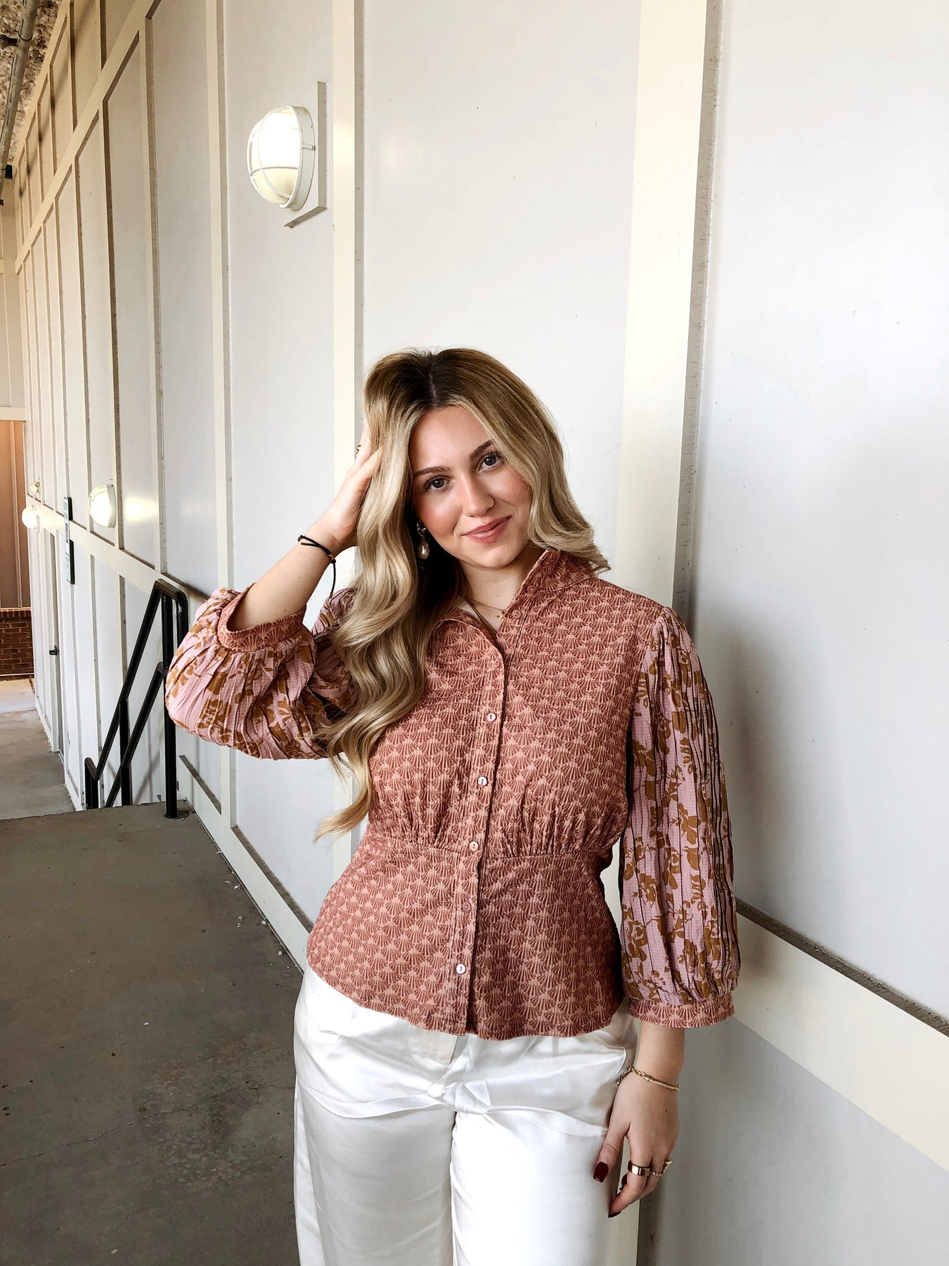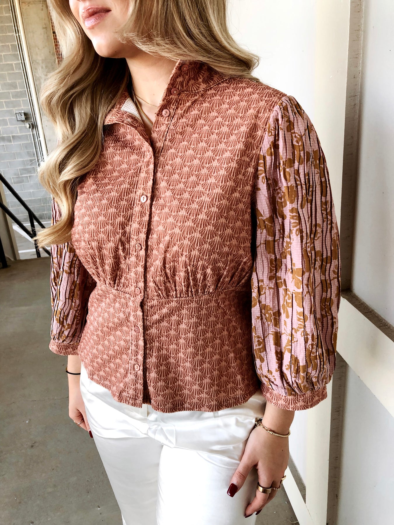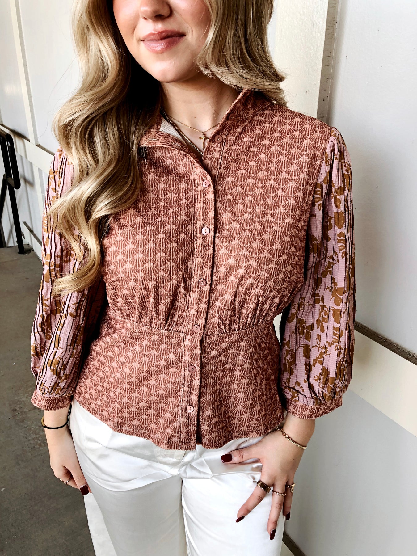 Brighten your wardrobe with the Show Me Love Top, featuring a charming multi-print design and a flattering peplum silhouette. The button-down front adds a classic touch, while the playful mix of patterns keeps your look fresh and fun. Perfect for effortless style that turns heads wherever you go.