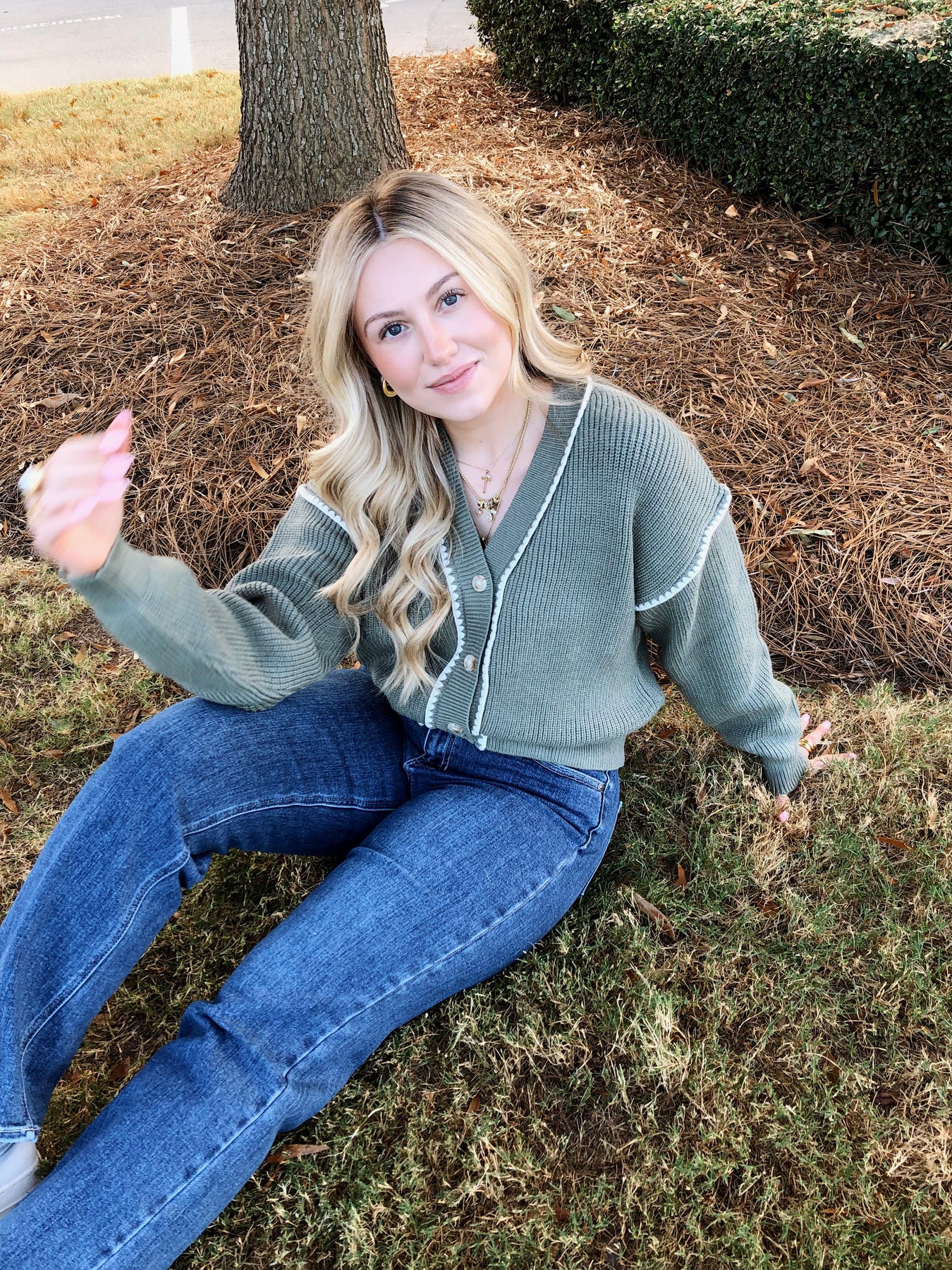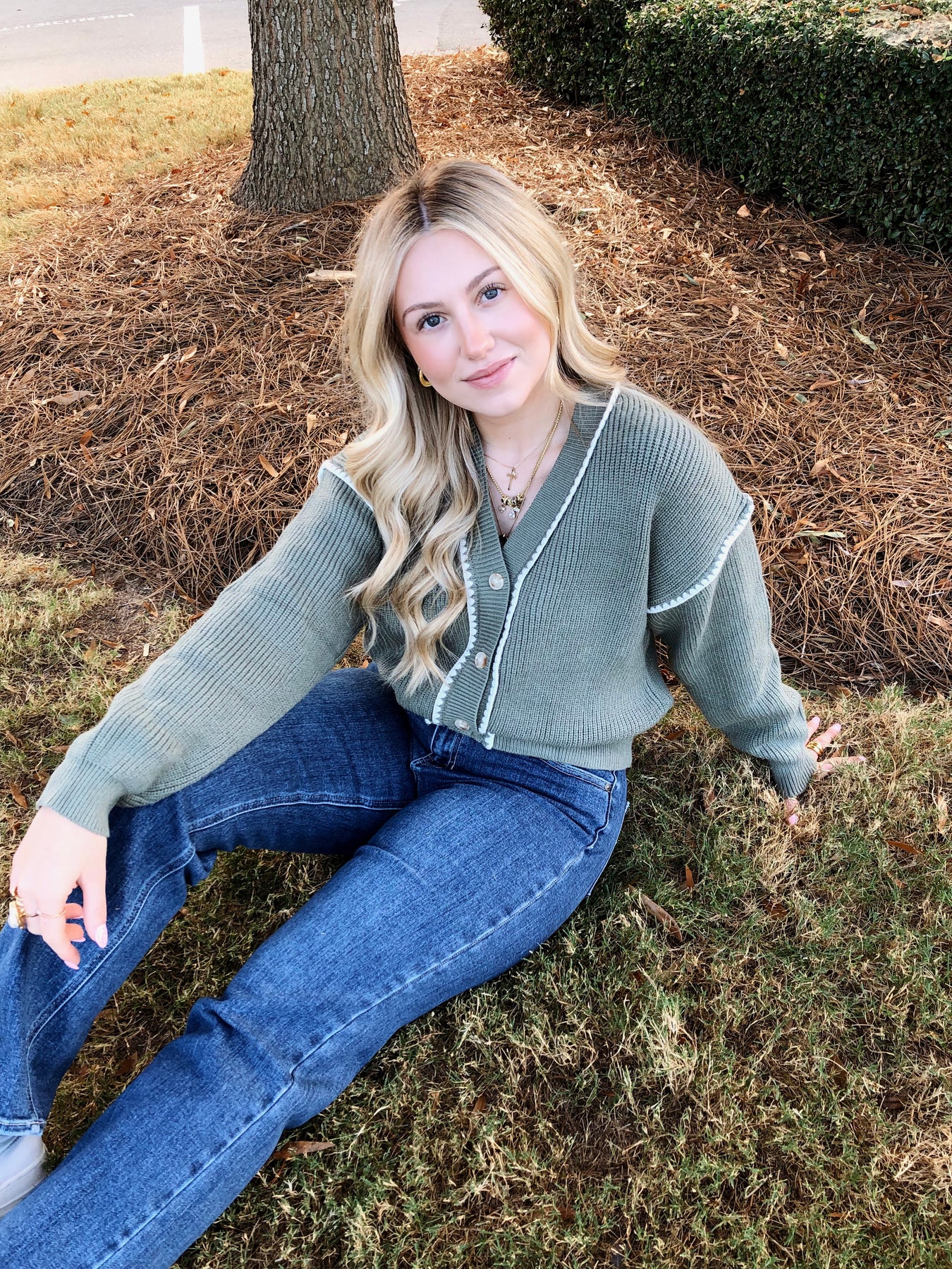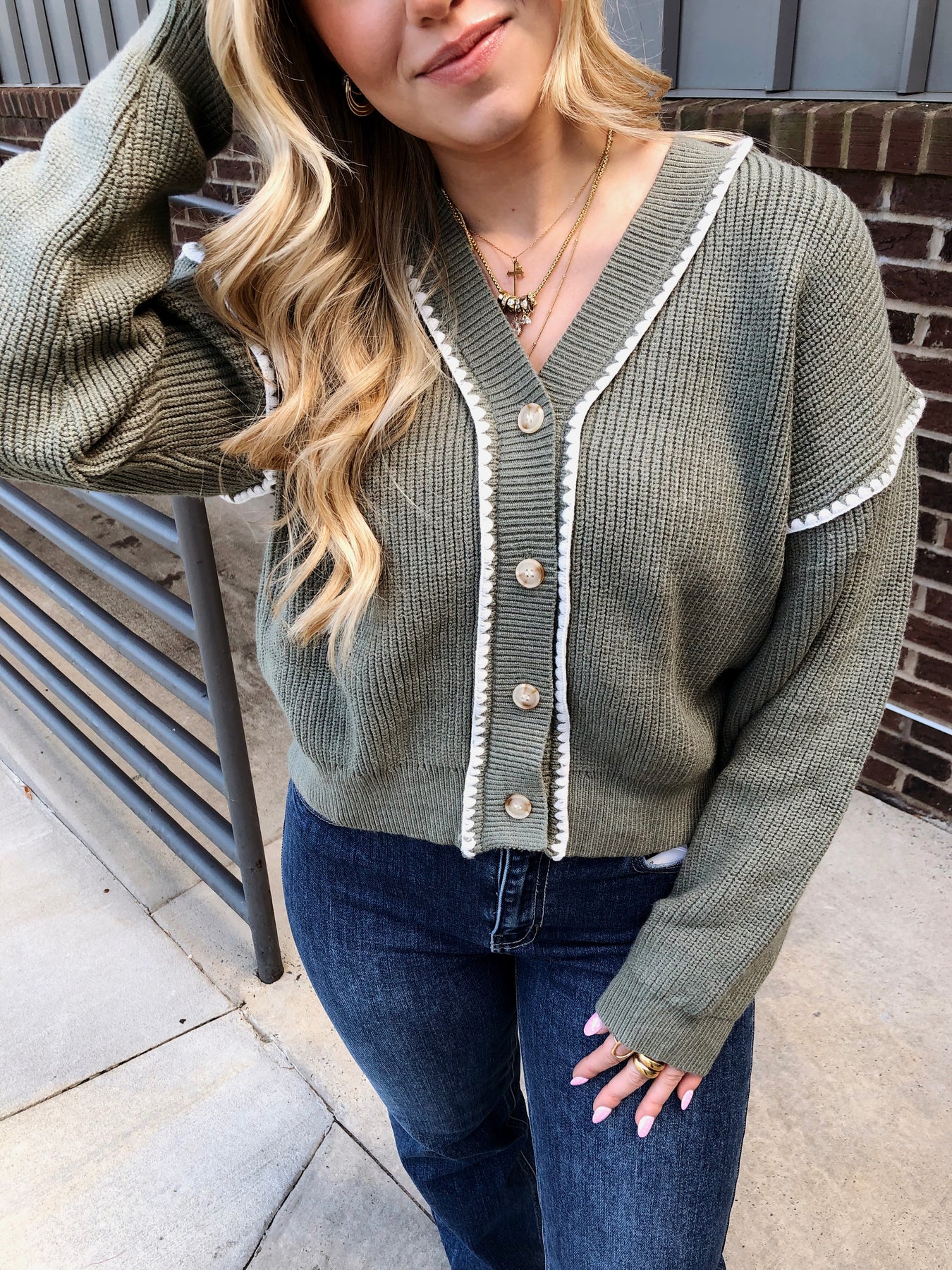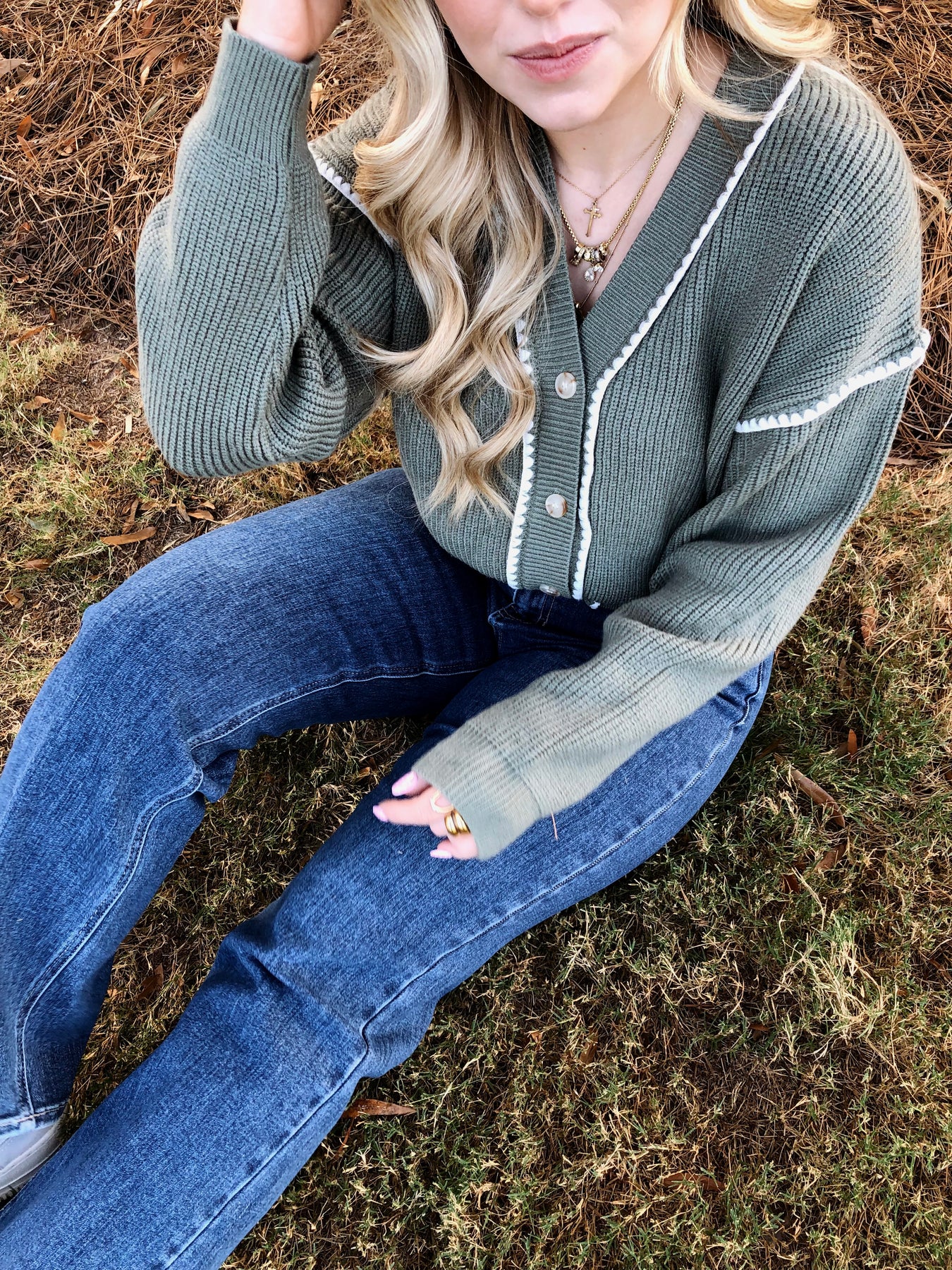 Get cozy and stand out with the Woodlands Cardigan! This oversized green button-down sweater features charming contrast stitching that adds a fun pop to your look. Perfect for layering on those chillier days, it wraps you in warmth while keeping your style effortlessly playful and unique.