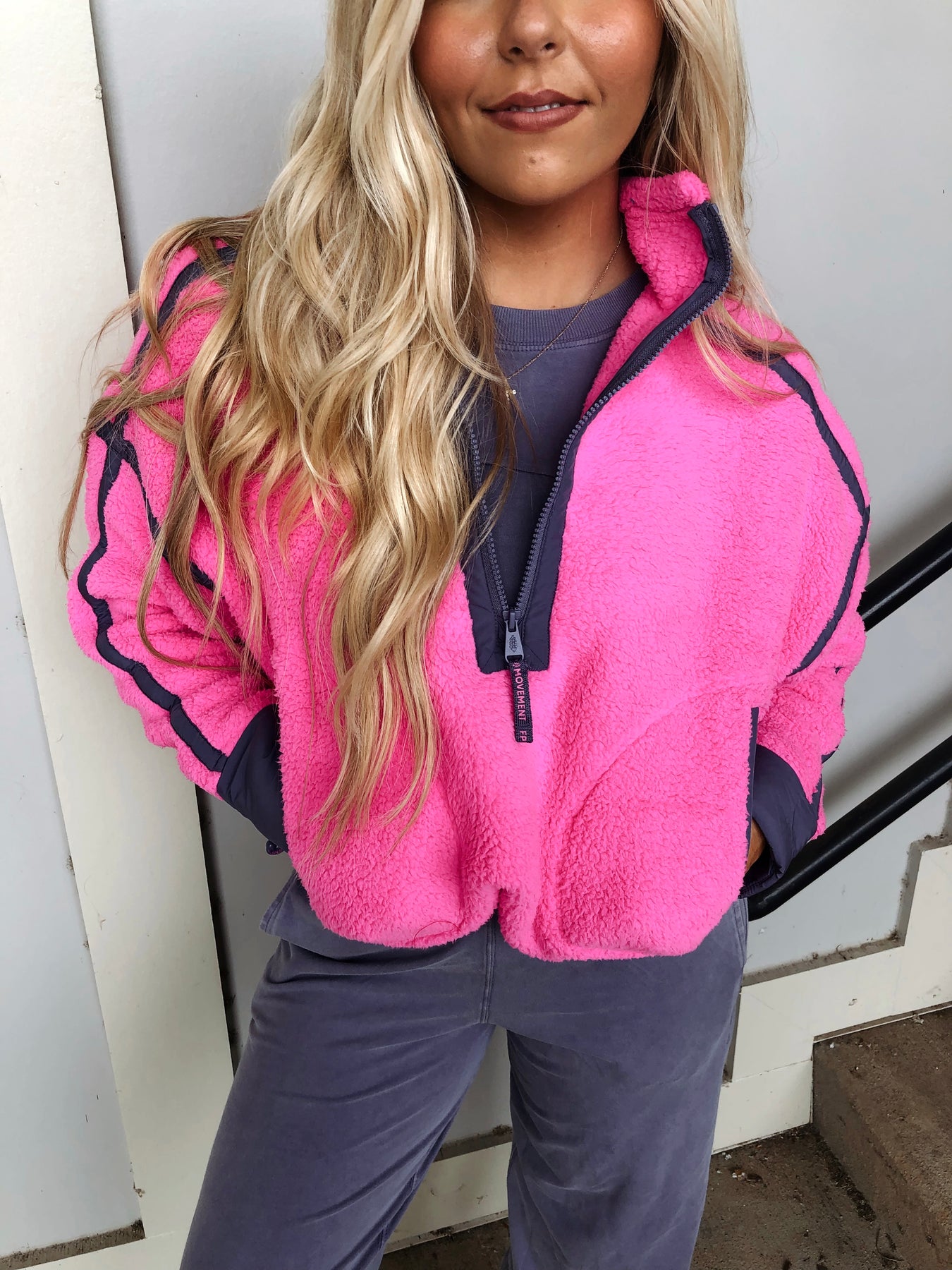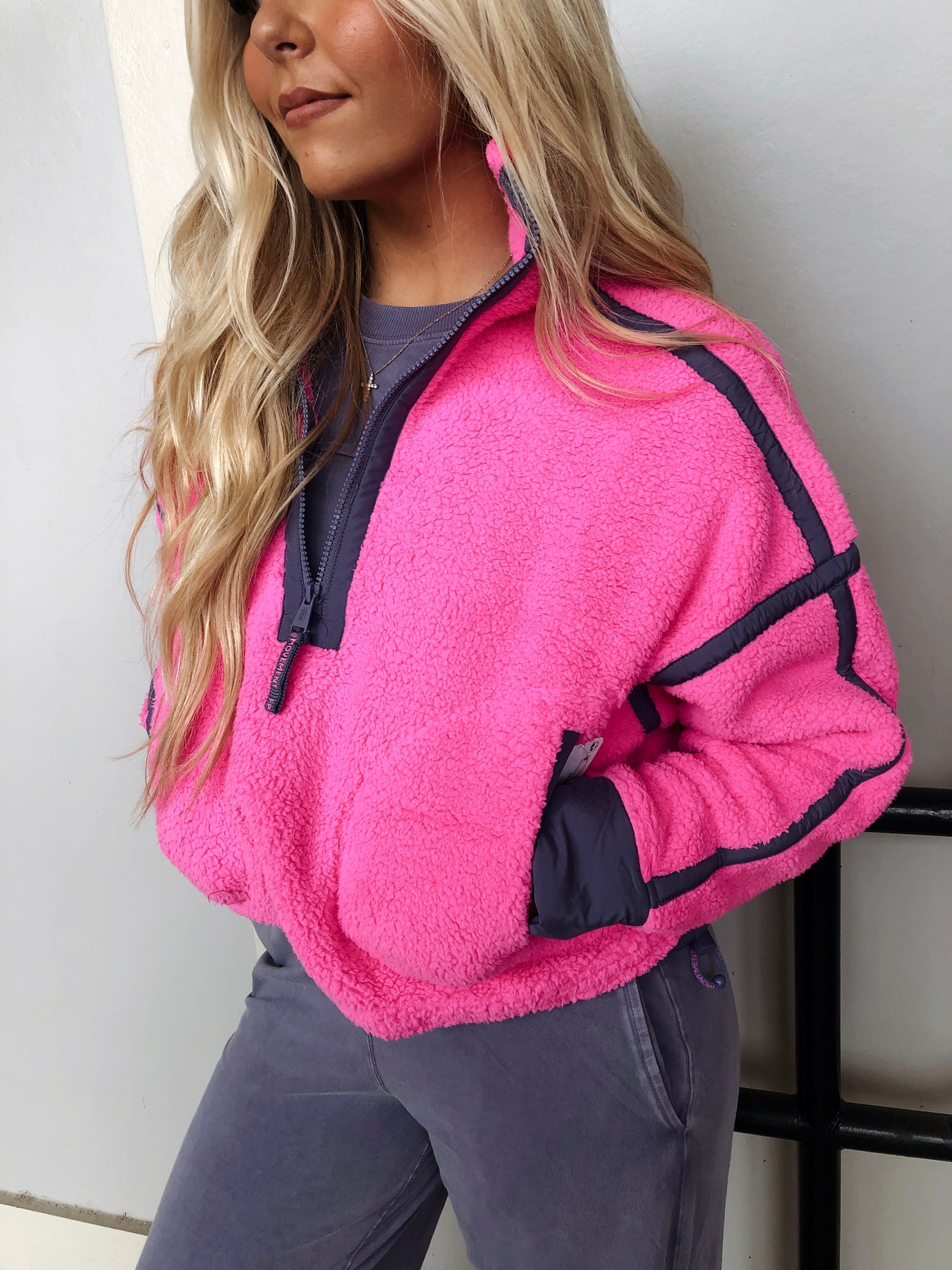 Stay cozy and vibrant in the FPM Mountain High 1/2 Zip Jacket, featuring a fun fleece fabric in a bold fuschia flirt combo. Perfect for Free People Movement lovers, this jacket adds a splash of color to your activewear. Pair it effortlessly with your favorite Hot Shot crossover set for an energetic and stylish look that keeps you moving with comfort and flair.