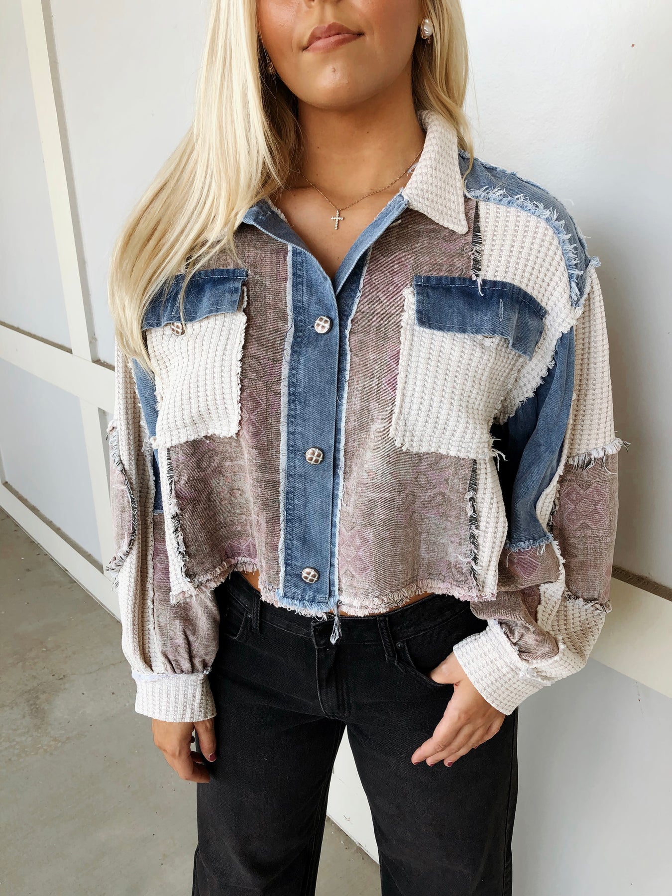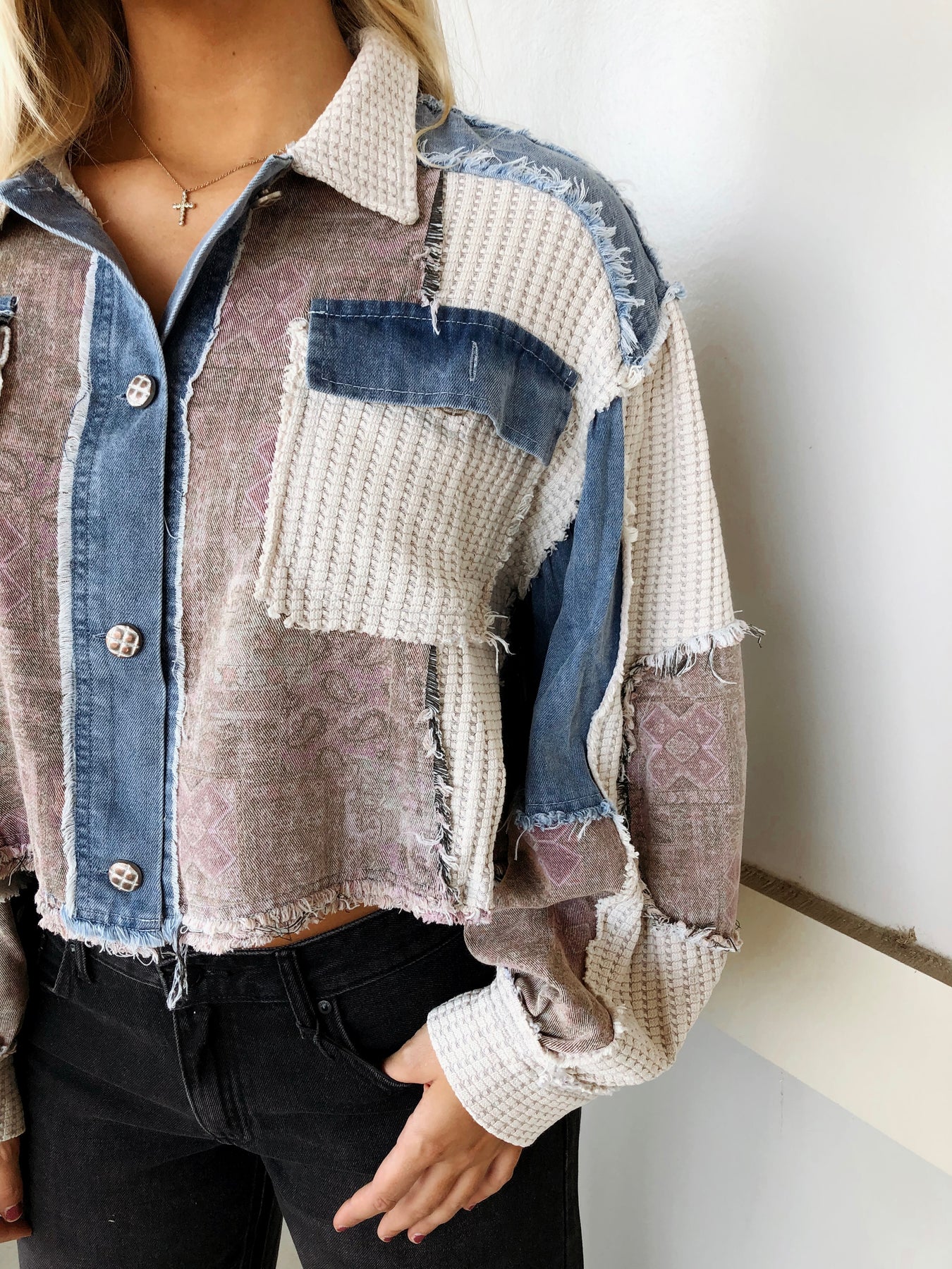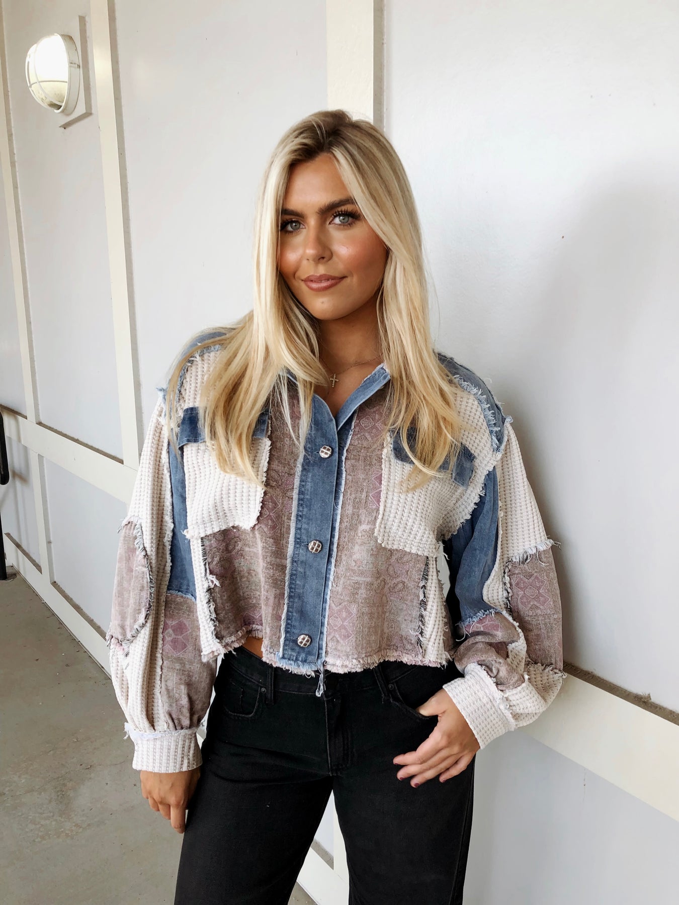Add a dash of whimsy to your wardrobe with the Small Town Jacket, featuring cozy oatmeal fabric and stylish denim patch accents. This button-down jacket blends casual charm with a playful twist, perfect for those who love comfort with a bit of edge. Effortlessly cool and easy to wear, it’s your new go-to for laid-back adventures and spontaneous fun.
