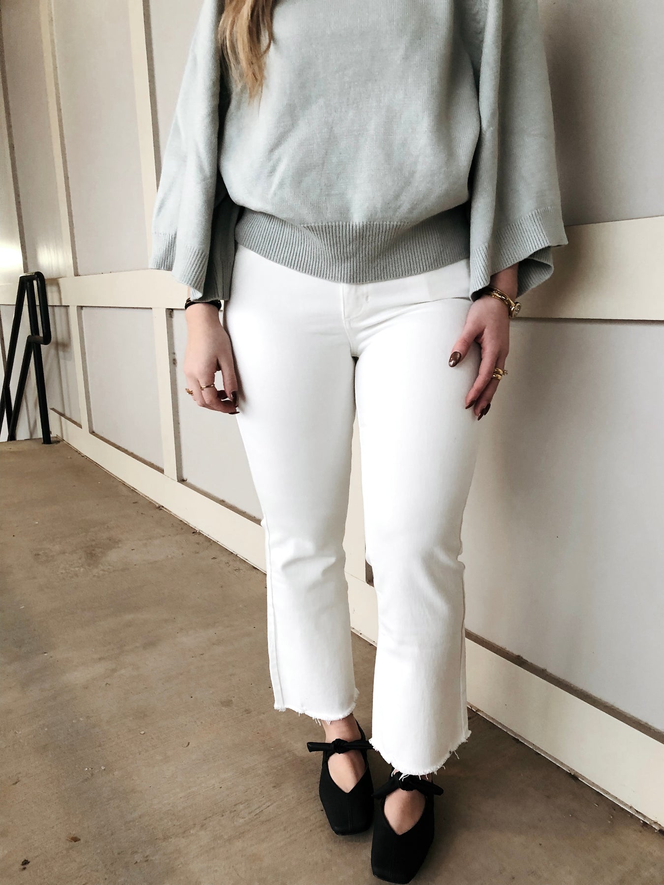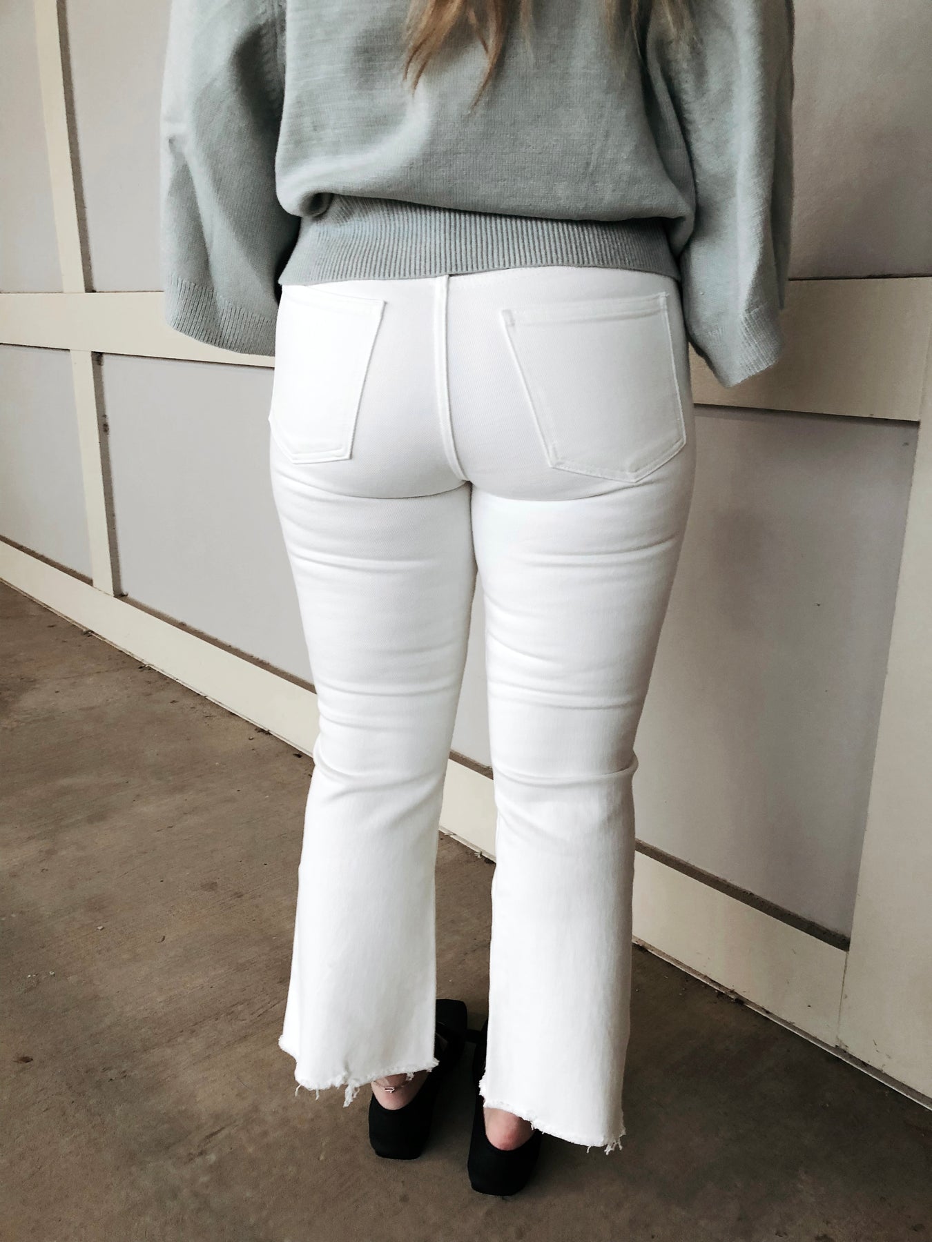 The RYLAN JEAN is your new denim obsession! This crisp white high-rise crop flare features a flattering silhouette that hits just right at the ankle, while the distressed hem adds that effortlessly cool, lived-in vibe. Perfect for pairing with everything from sneakers to heels, this versatile piece transitions seamlessly from casual weekend vibes to dressed-up nights out. The high-rise waist offers comfortable support and a timeless look that never goes out of style. Grab yours and get ready to turn heads!