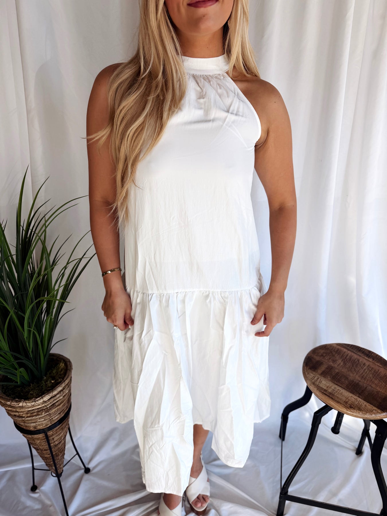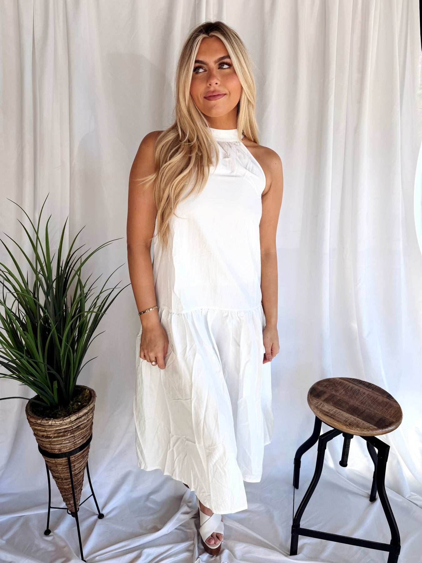 Slip into effortless elegance with this halter neck sleeveless midi dress. The flattering halter design frames your shoulders beautifully while the flowing midi length keeps things sophisticated and timeless. Perfect for everything from brunch dates to evening events, this versatile piece pairs seamlessly with your favorite accessories. Whether you're dressing it up or keeping it casual, this dress delivers style that feels as authentic as it gets.