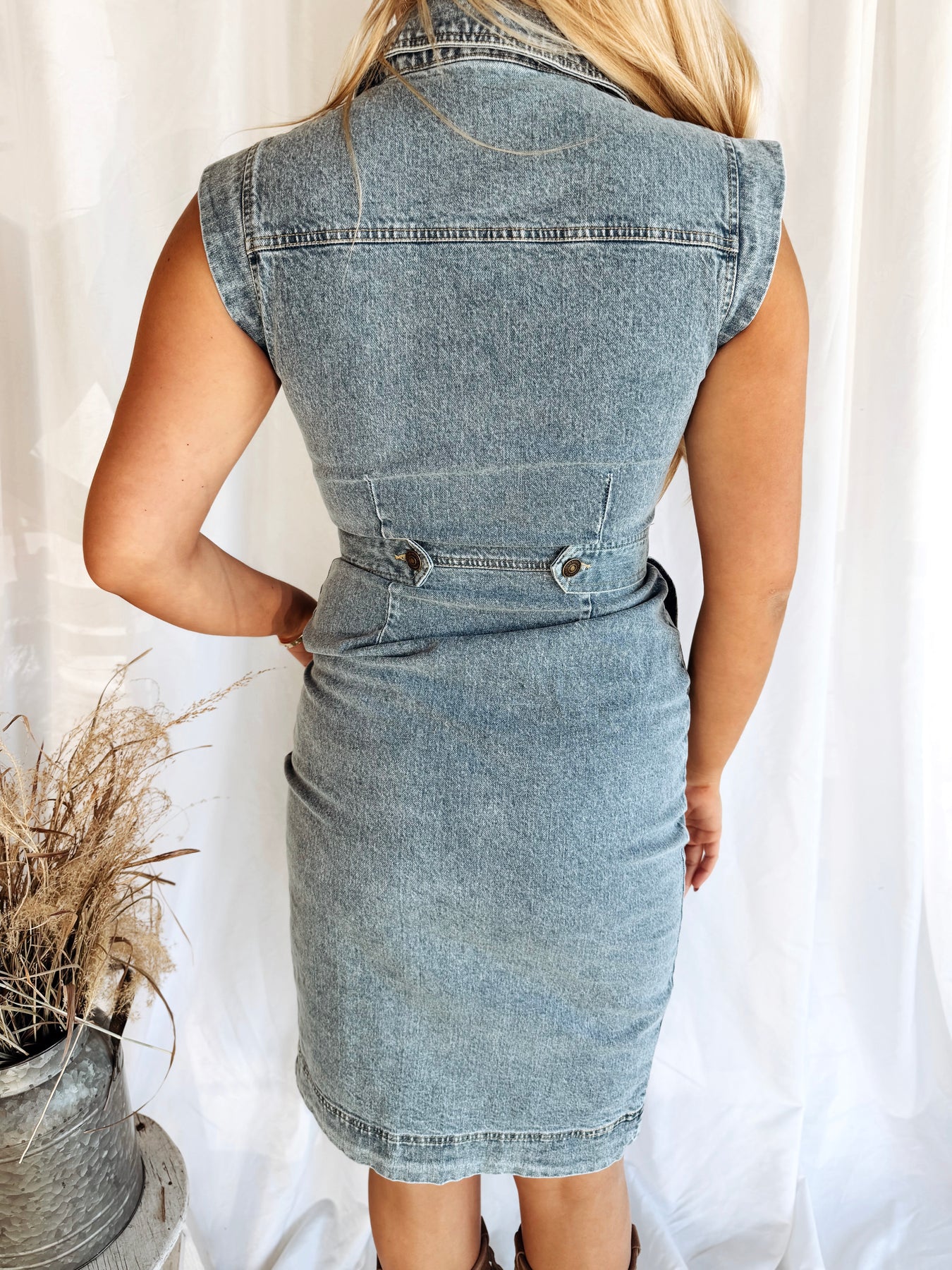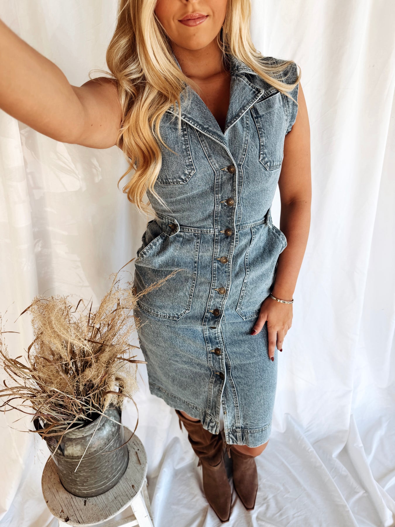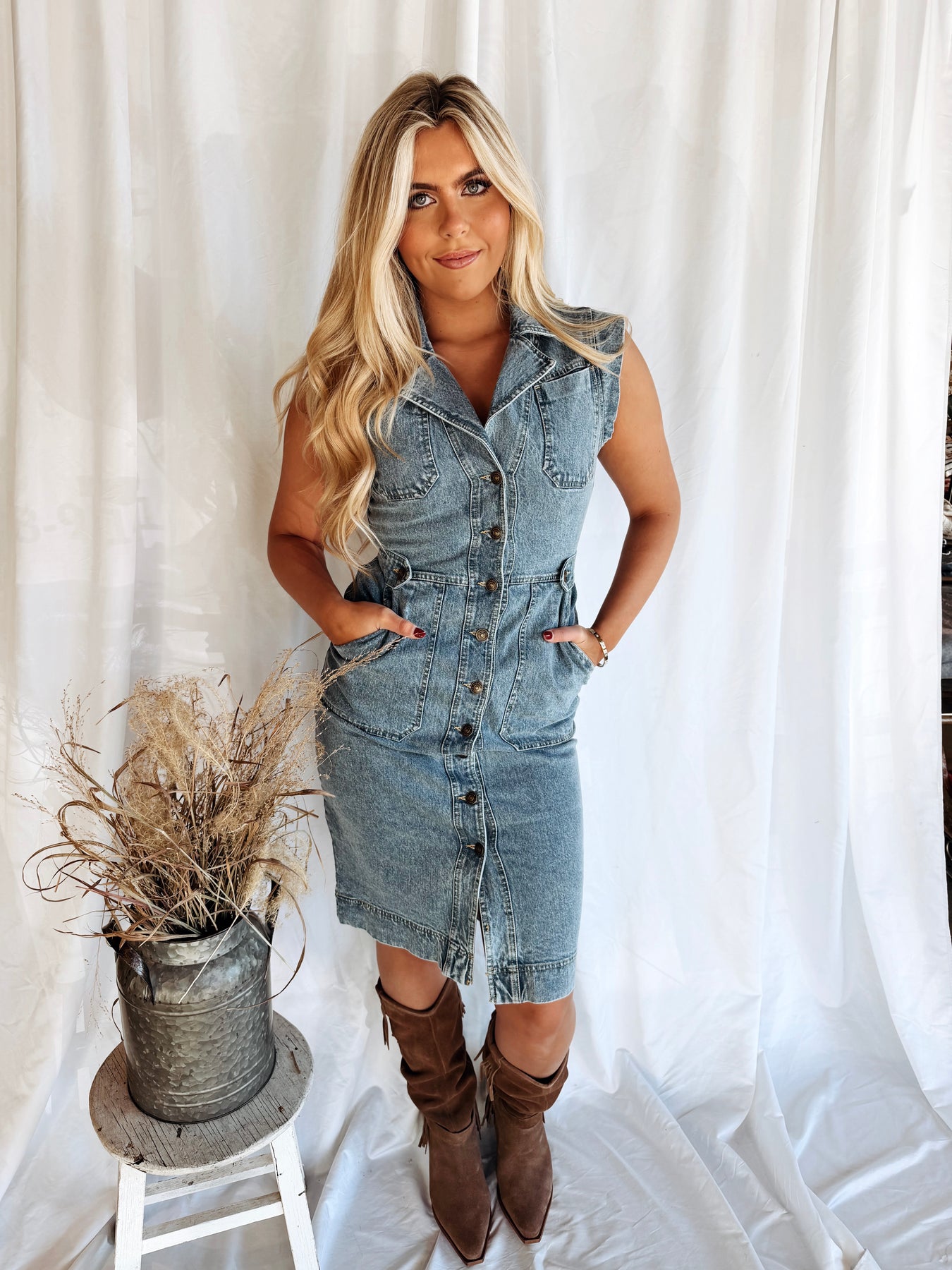 Introducing the Julieta Dress—your new go-to for effortless style! This midi denim dress features a classic button-down silhouette that's perfect for dressing up or down. Whether you're heading to brunch with friends or running weekend errands, this versatile piece transitions seamlessly from day to night. The timeless denim construction pairs beautifully with sneakers, boots, or sandals, making it a wardrobe essential that works as hard as you do. Comfortable, chic, and endlessly wearable—the Julieta is about to become your favorite.