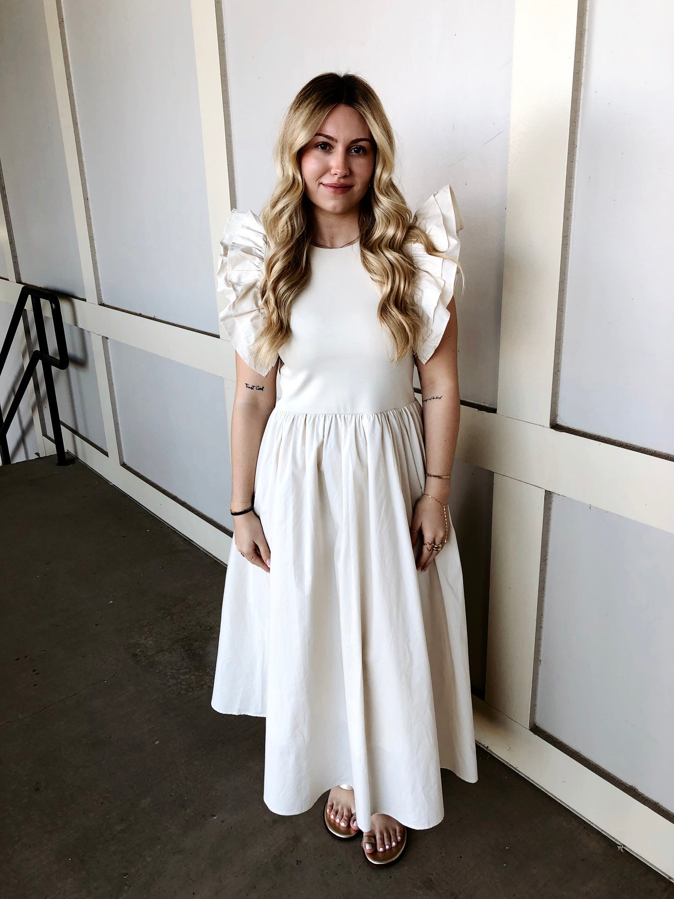The Madison Dress is your go-to piece for effortless elegance with a fun twist. This cream-colored midi dress features charming flutter sleeves that add movement and personality to every twirl. The mixed media construction blends different textures for visual interest, creating a look that's both sophisticated and playful. Perfect for brunch dates, garden parties, or whenever you want to feel put-together without trying too hard. Slip it on and let the flutter sleeves do the talking.