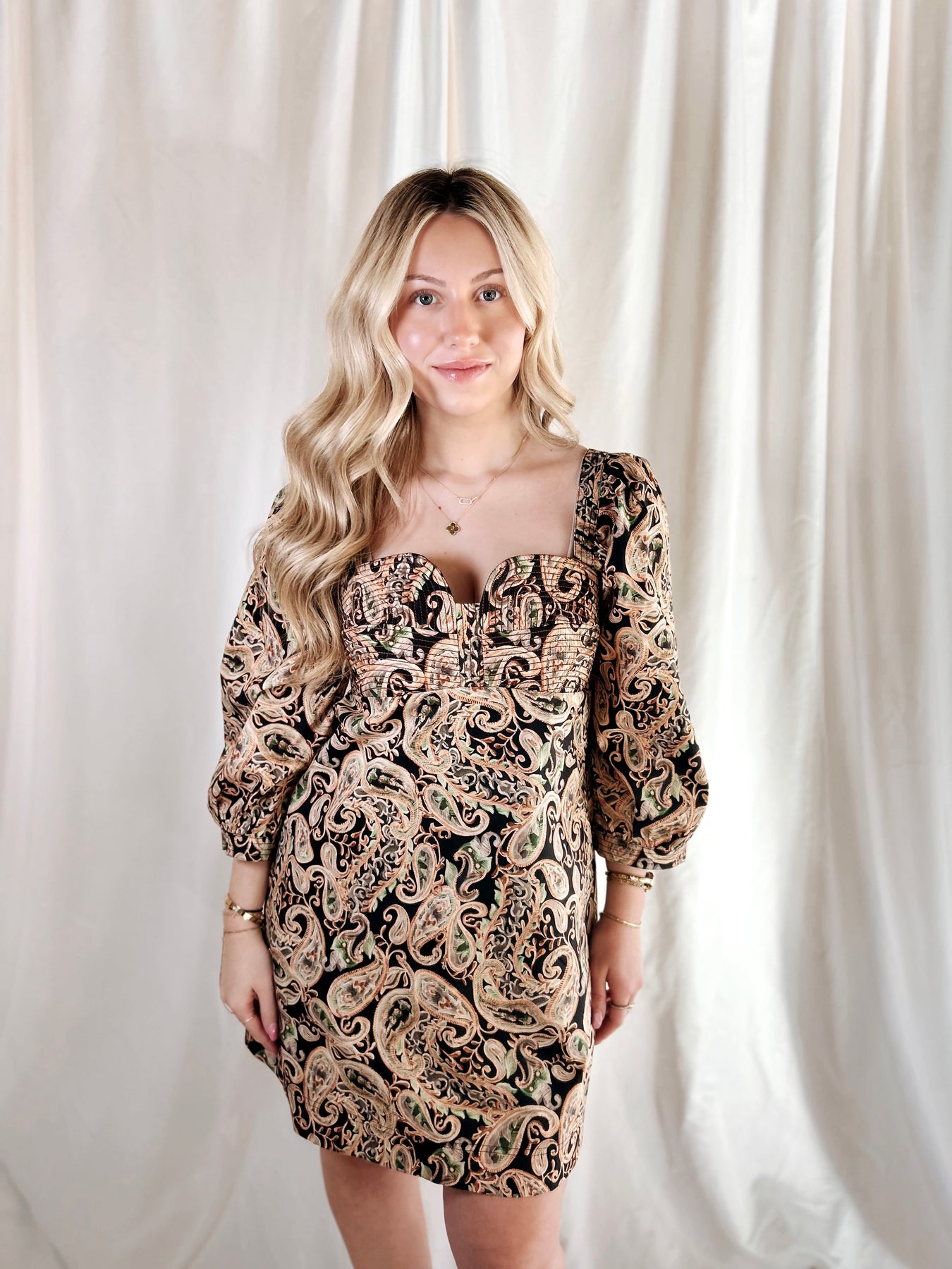 The Rosa Dress brings effortless charm with its printed stitch detail and flattering 3/4 sleeves. This mini silhouette strikes the perfect balance between fun and feminine, ideal for casual outings or weekend adventures. The eye-catching stitch work adds personality to every wear, while the cropped length keeps things breezy and modern. Slip it on with sneakers for a laid-back vibe or dress it up with heels for an instant style upgrade.