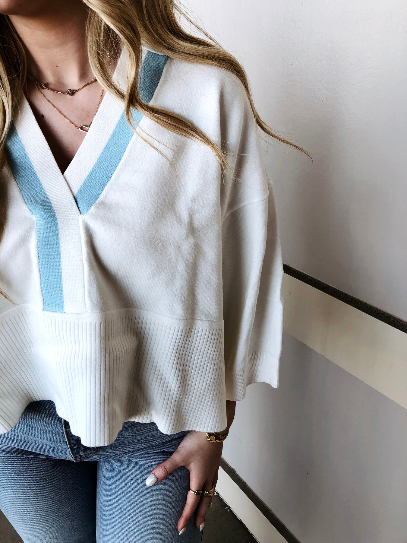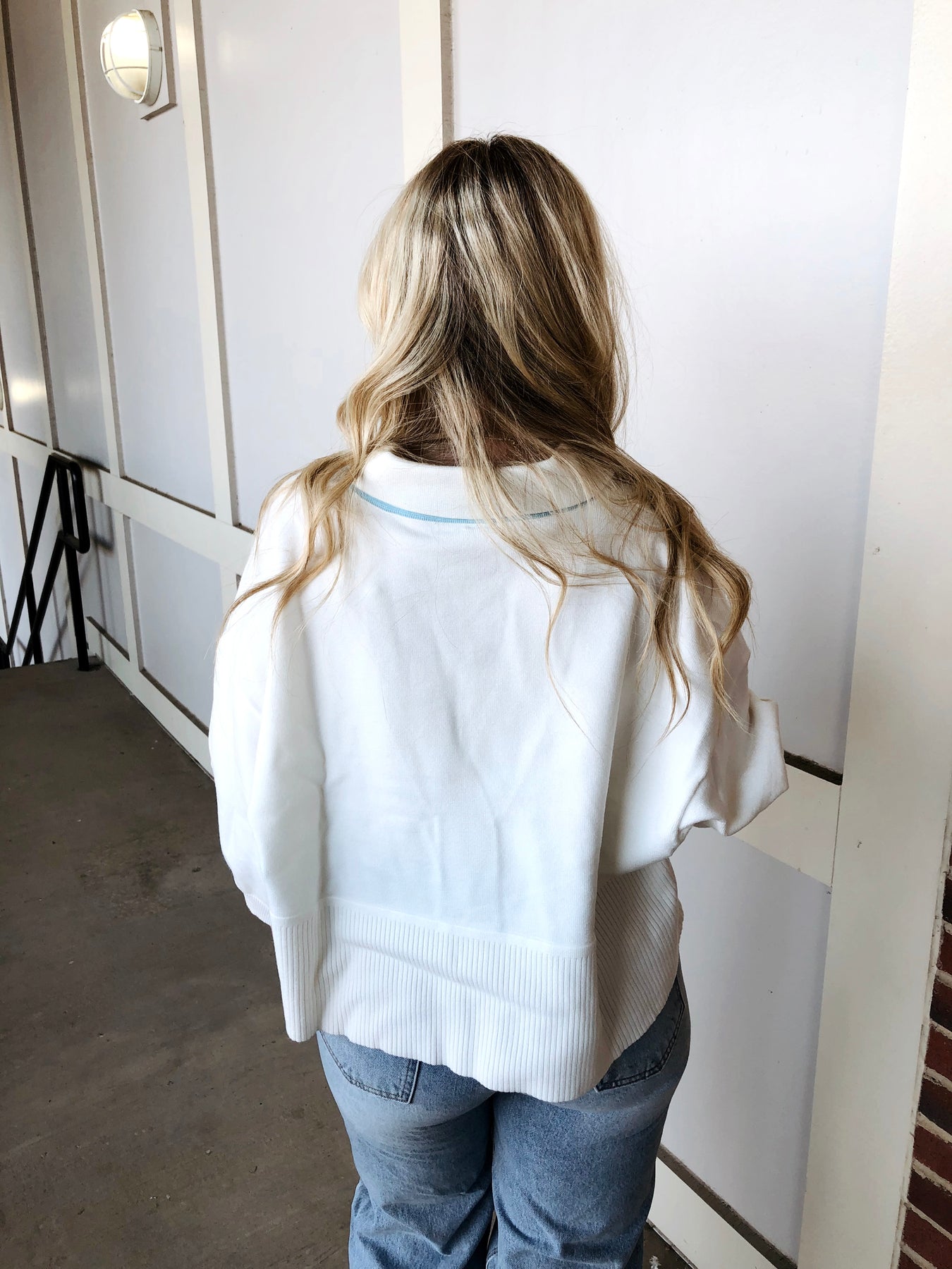The ELLIS Top brings effortless style with its crisp white fabric and eye-catching blue contrast trim that adds just the right pop of color. Cut in a relaxed, loose fit, this versatile piece moves with you throughout your day—perfect for casual outings, weekend hangouts, or layering over your favorite basics. The breezy silhouette keeps things comfortable while the contrasting trim gives it a polished, put-together vibe. Whether you're dressing it down with jeans or pairing it with linen pants, the ELLIS Top is your new go-to for laid-back sophistication.