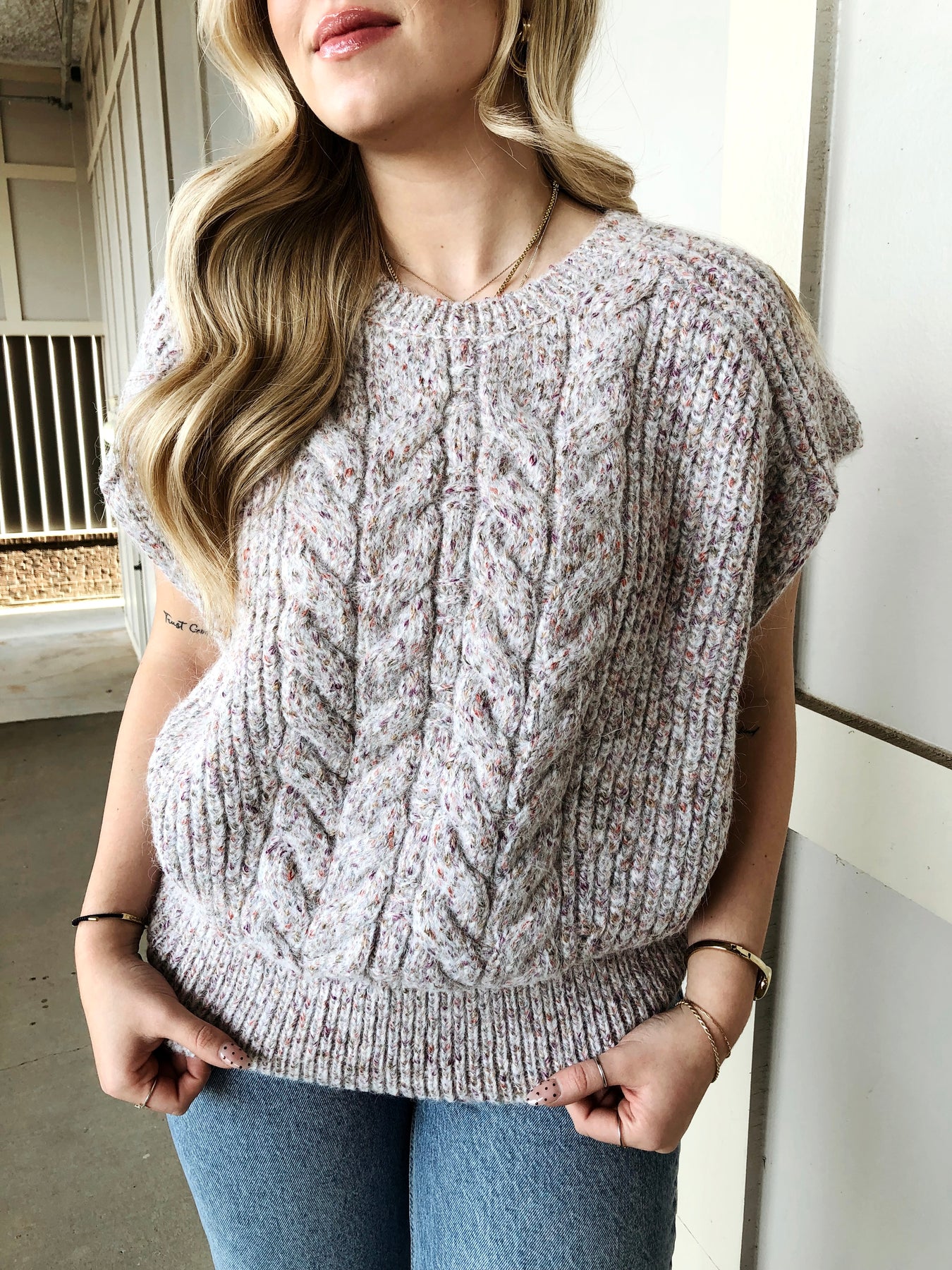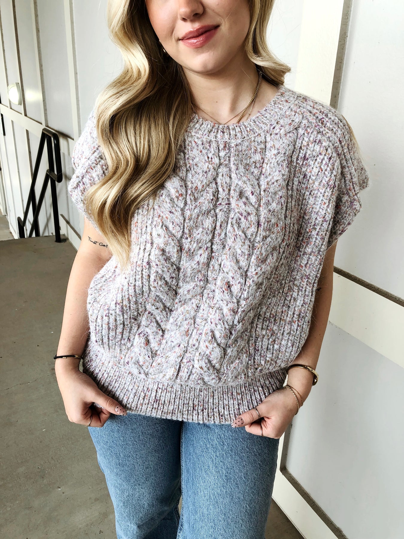 Get cozy in the KIEVA SWEATER by STEVE MADDEN. This playful cable knit short sleeve sweater is perfect for adding a touch of fun to your wardrobe. Stay warm and stylish with this quirky and unique piece.