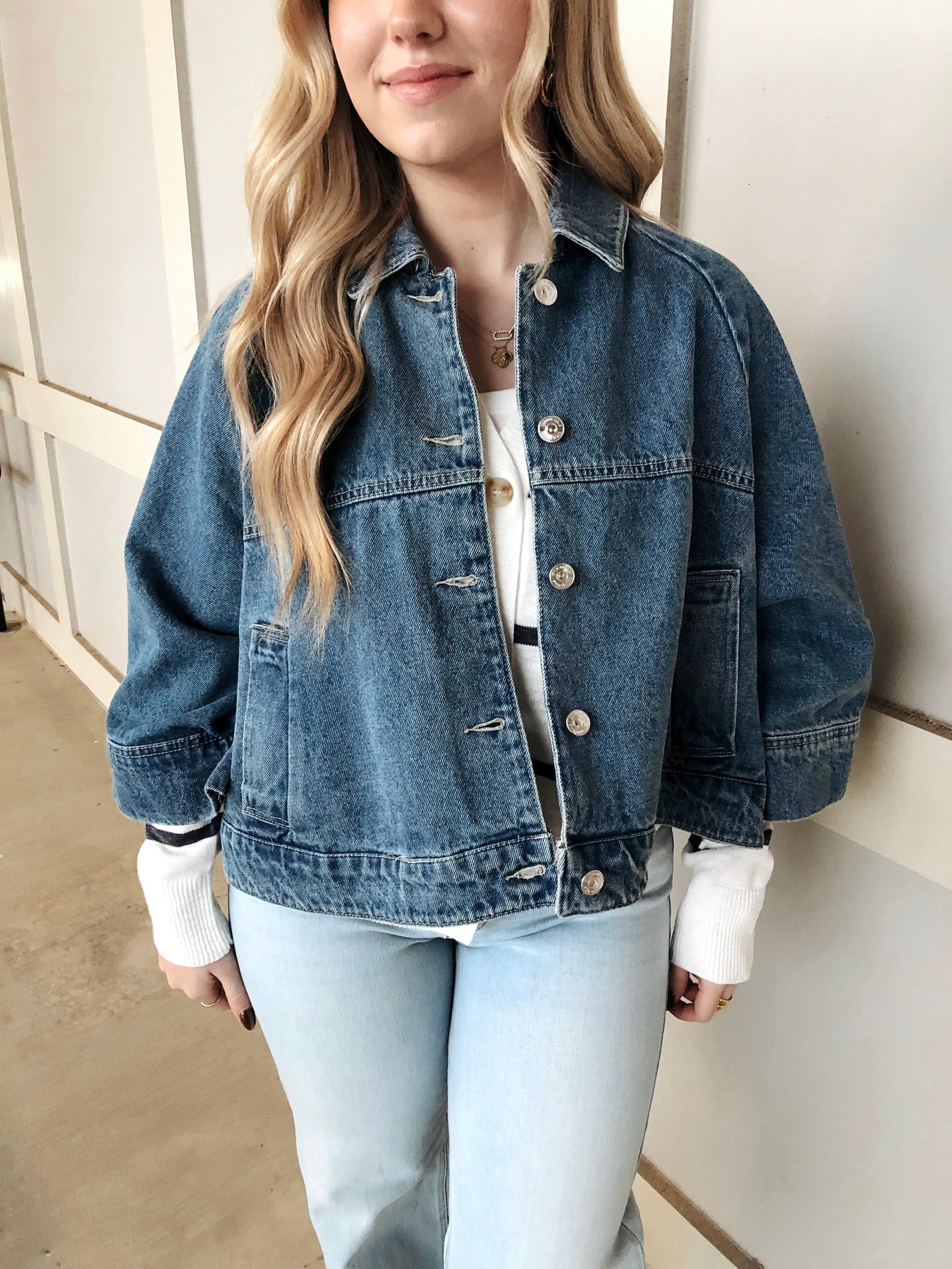 Introducing the Rhode Jacket—your ticket to reinventing the denim game. This Steve Madden stunner ditches the dated silhouettes of yesteryear with a cropped cut that hits just right and chic wide sleeves that make a statement. Modern, bold, and unapologetically cool, it's the denim jacket that proves you're anything but conventional. Layer it over everything and watch heads turn.
