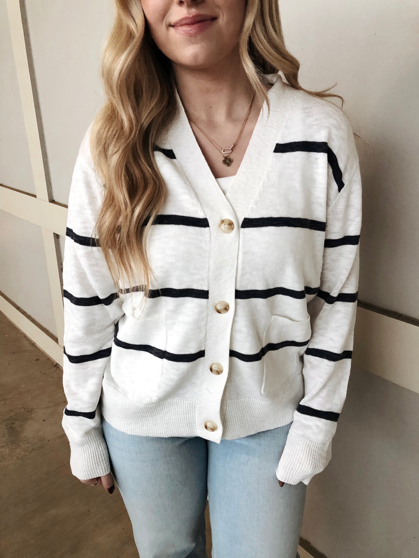 Whisper sweet nothings to your wardrobe with this breezy striped cardigan that's ready for anything. The oversized silhouette drapes effortlessly over your favorite tees and dresses, while the lightweight fabric keeps you comfortable whether you're layering for spring breezes or air-conditioned adventures. That flattering V-neck? Pure magic. Throw it on, feel fabulous, and let the season of renewal begin.