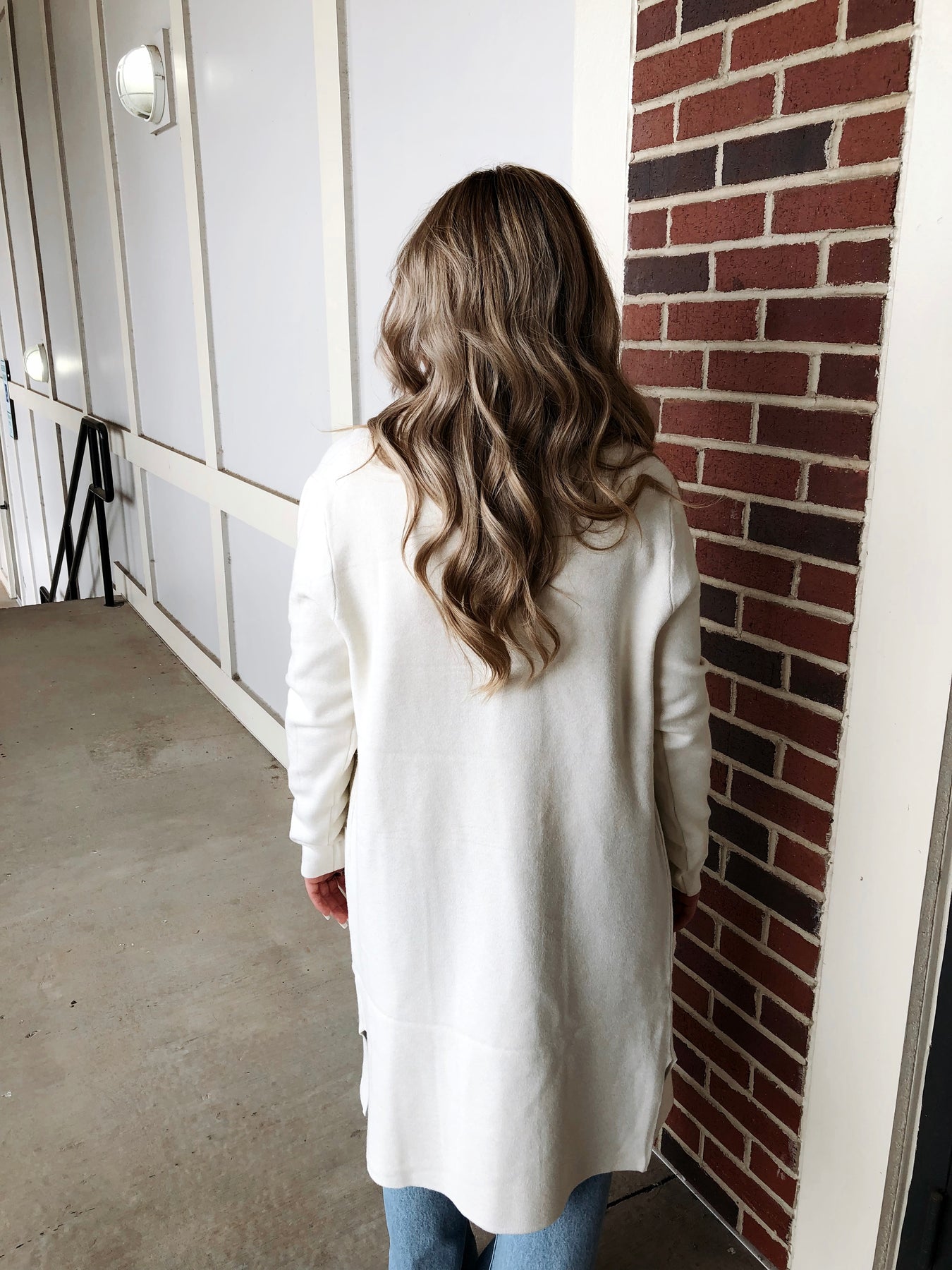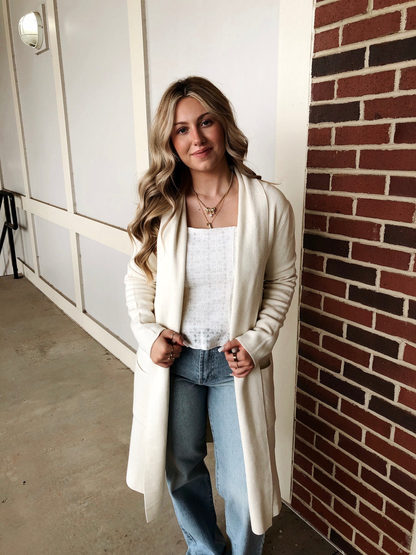 Cozy up in style with the Crisp Fall Nights Cardigan! This creamy long cardigan features convenient pockets to keep your hands warm or stash your essentials. Perfect for layering on chilly evenings, its soft fabric and relaxed fit make every fall moment feel snug and playful. Embrace the season with a touch of comfort and charm!