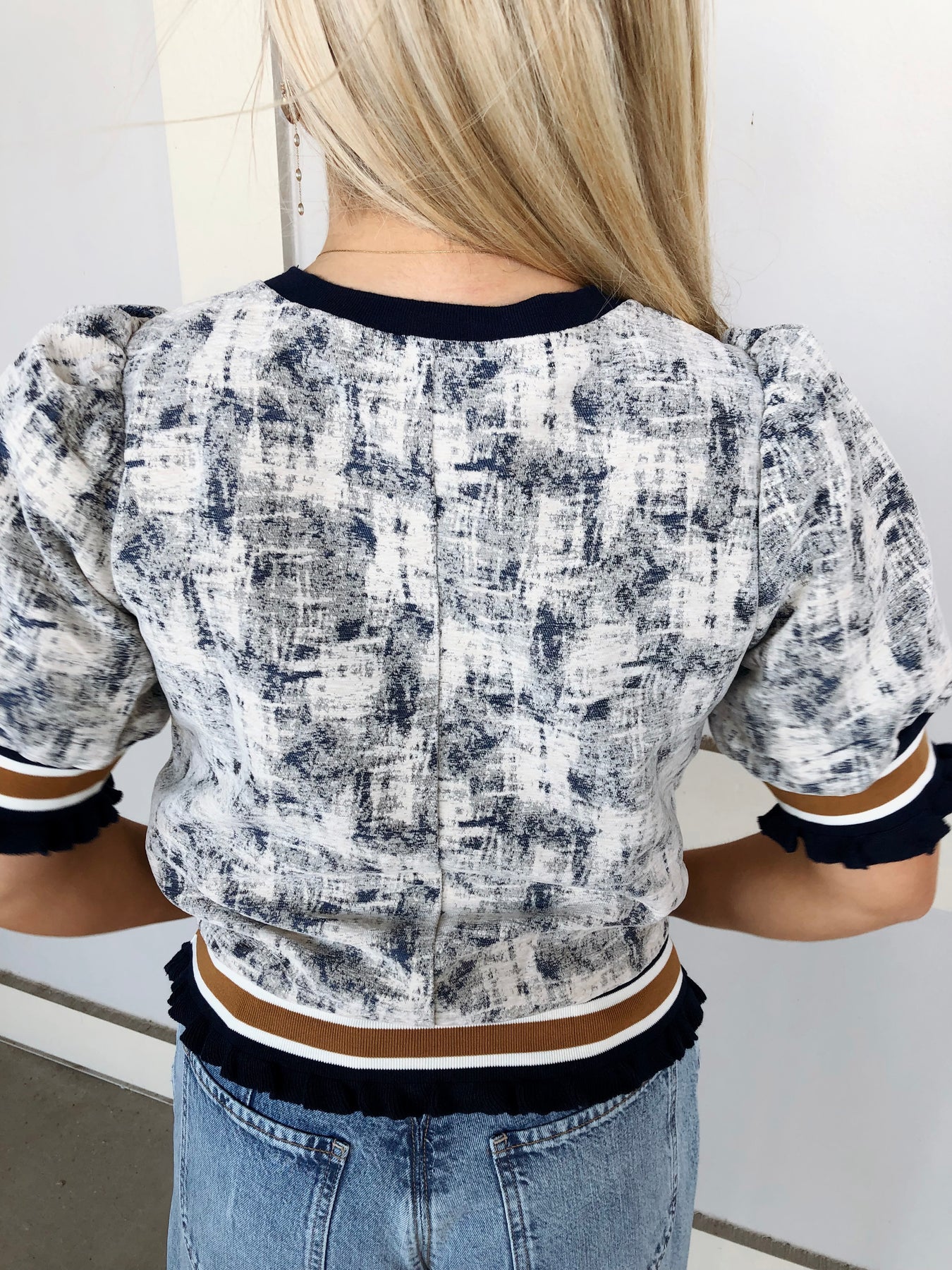 Effortlessly chic and undeniably fun, the ALL HOURS TOP features romantic puff sleeves that add instant personality to your everyday rotation. Crisp striped cuffs provide a playful contrast that keeps things interesting, whether you're dressing it up for brunch or down for casual errands. The perfect piece for anyone who refuses to choose between comfort and style—wear it morning, noon, or night.
