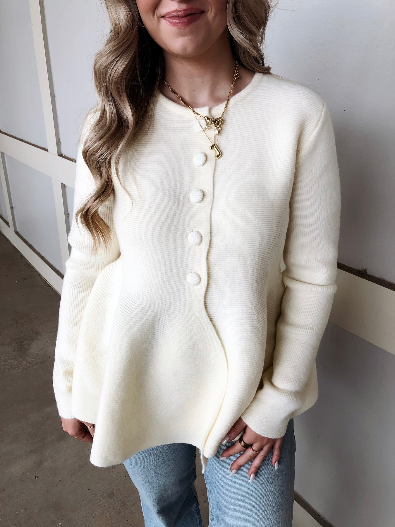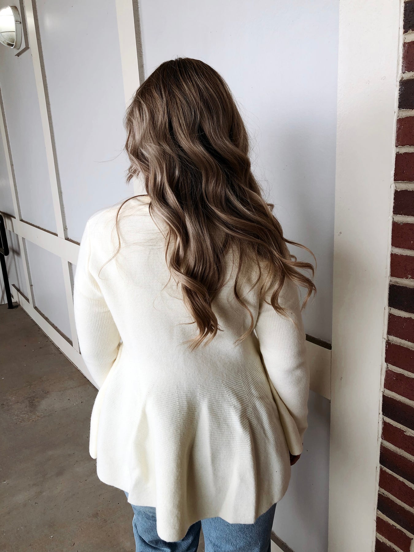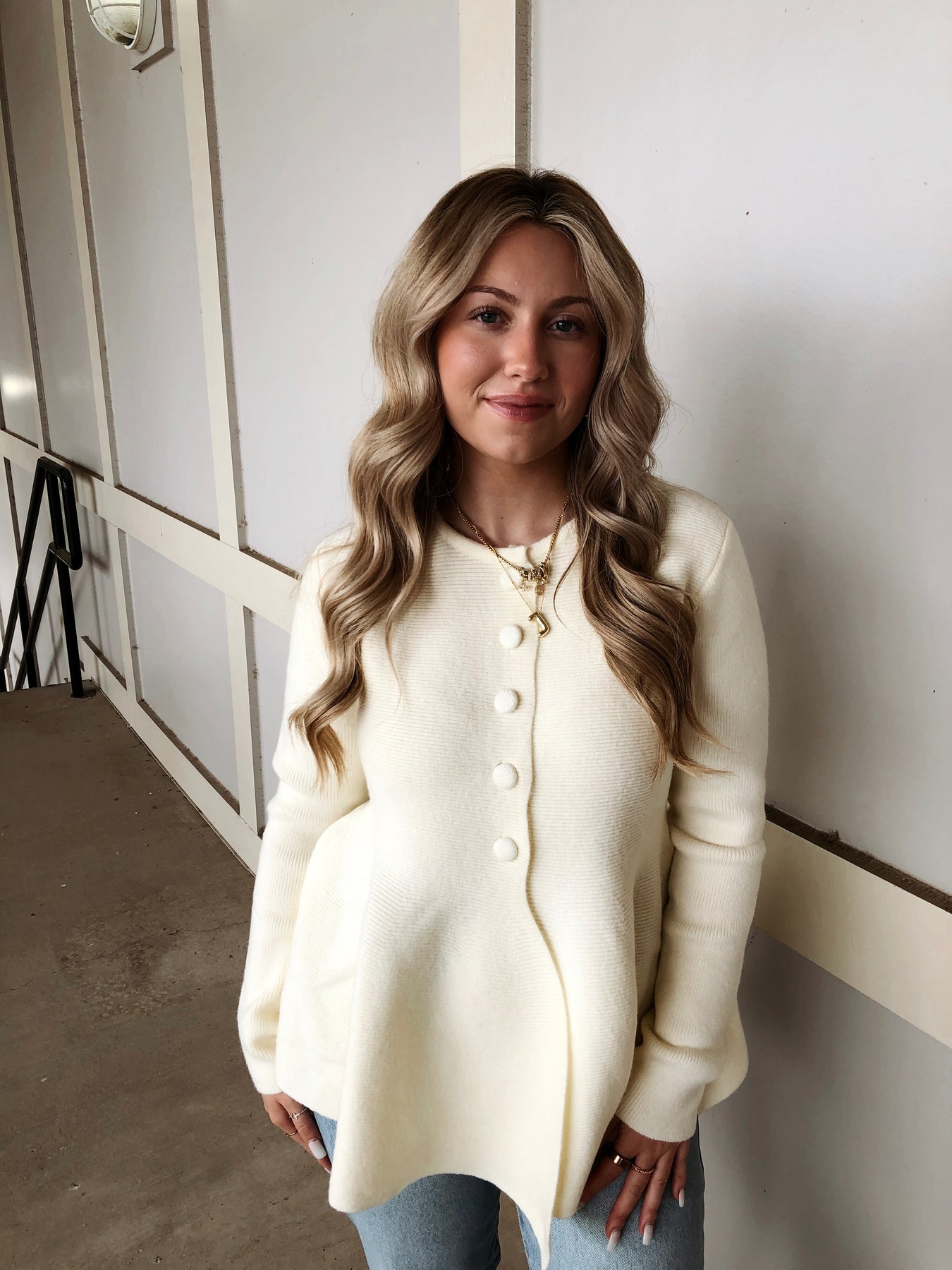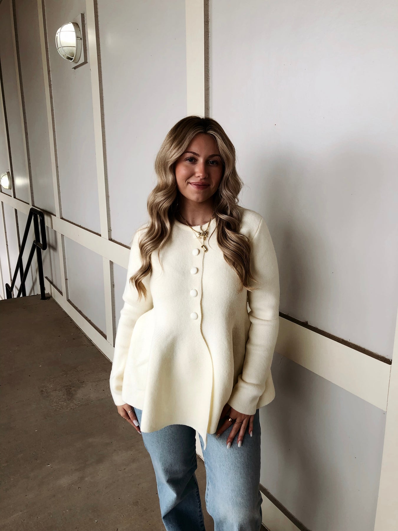 Wrap yourself in cozy charm with the Change Is Good Cardigan. This cream peplum sweater flares out just right to flatter your silhouette, while cute buttons add a dash of whimsy. Perfect for layering on chilly days or dressing up your favorite jeans, it’s a playful twist on a classic wardrobe staple. Embrace change with style and a smile!