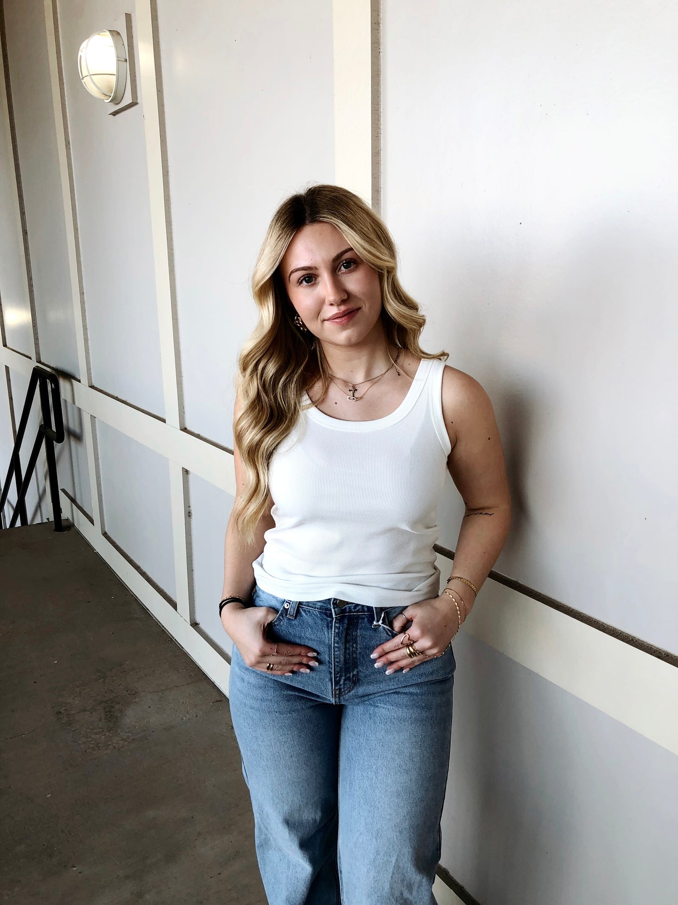 Stay cool and comfortable in the Easy Moves Tank, your new go-to for effortless style. This crisp white sleeveless tank features a classic round neckline and ribbed fabric that moves with you—whether you're running errands, hitting the gym, or just keeping it casual. The streamlined silhouette pairs perfectly with everything in your closet, making it the ultimate wardrobe essential that works as hard as you do.