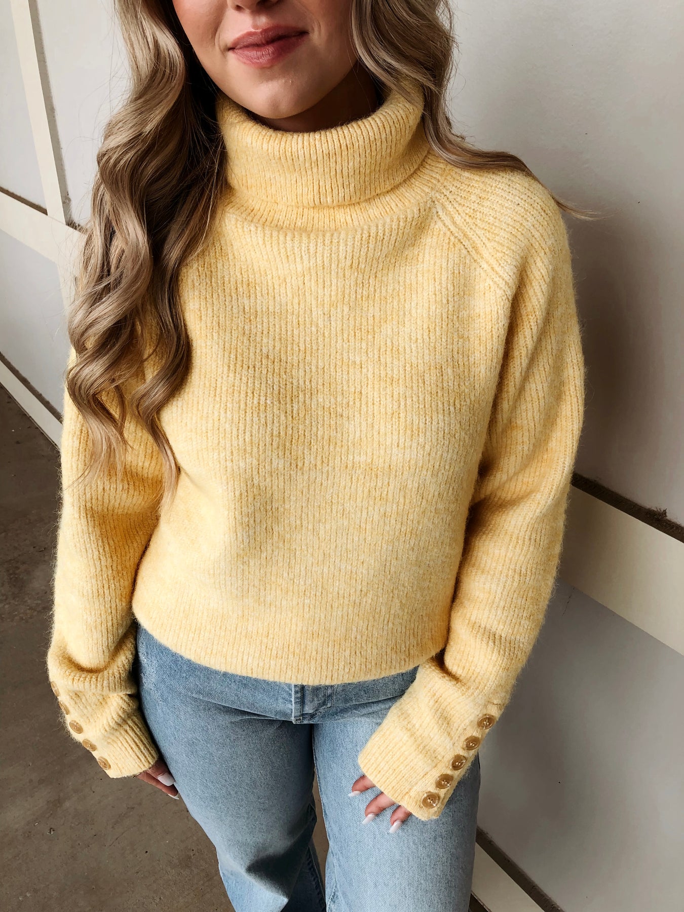 Brighten your wardrobe with the Sunny Beauty Sweater, featuring a cheerful yellow mock neck and charming button details. This playful knit adds a sunny pop of color while keeping you cozy and stylish all season long. Perfect for layering or wearing on its own, it’s your new go-to for fun, effortless style.