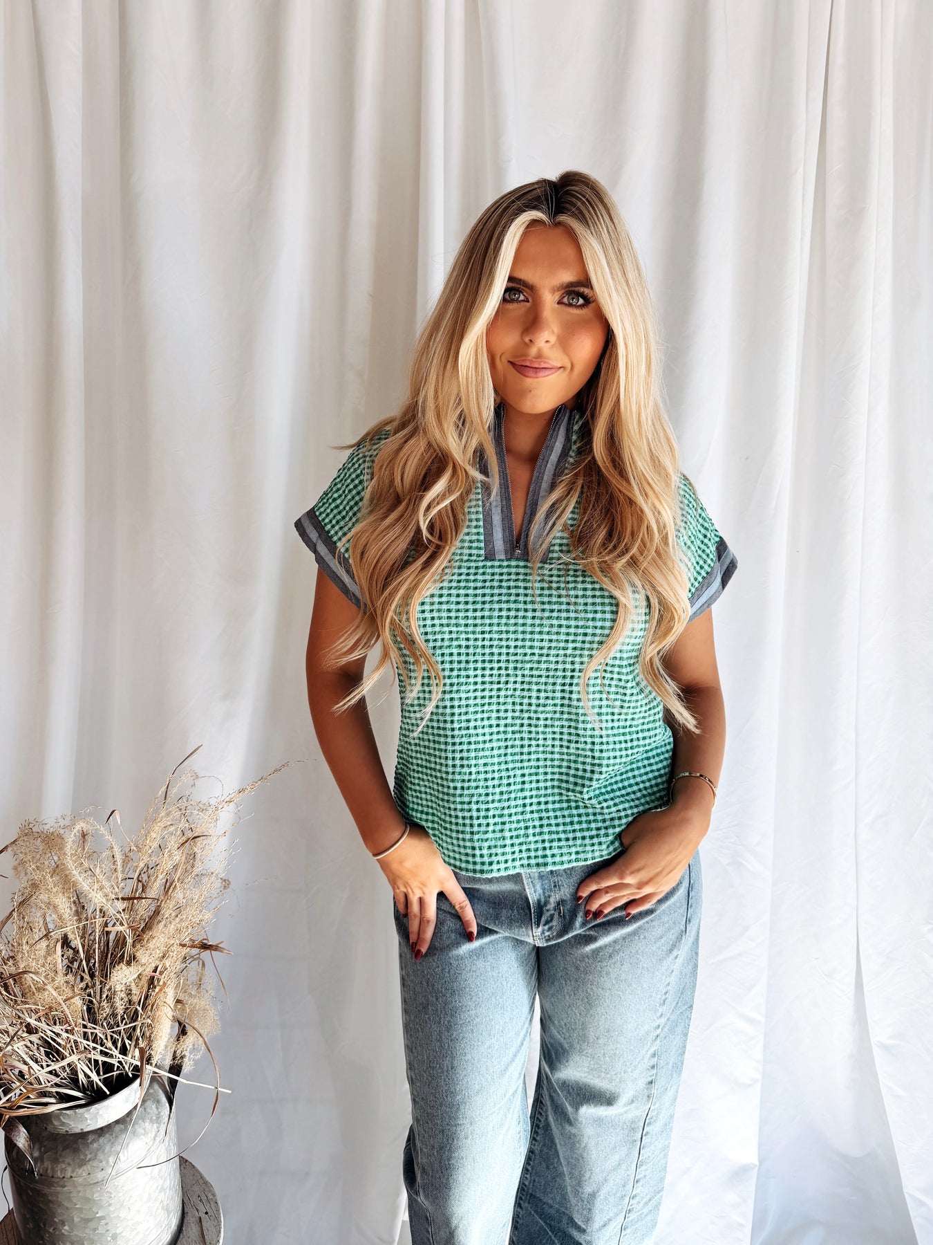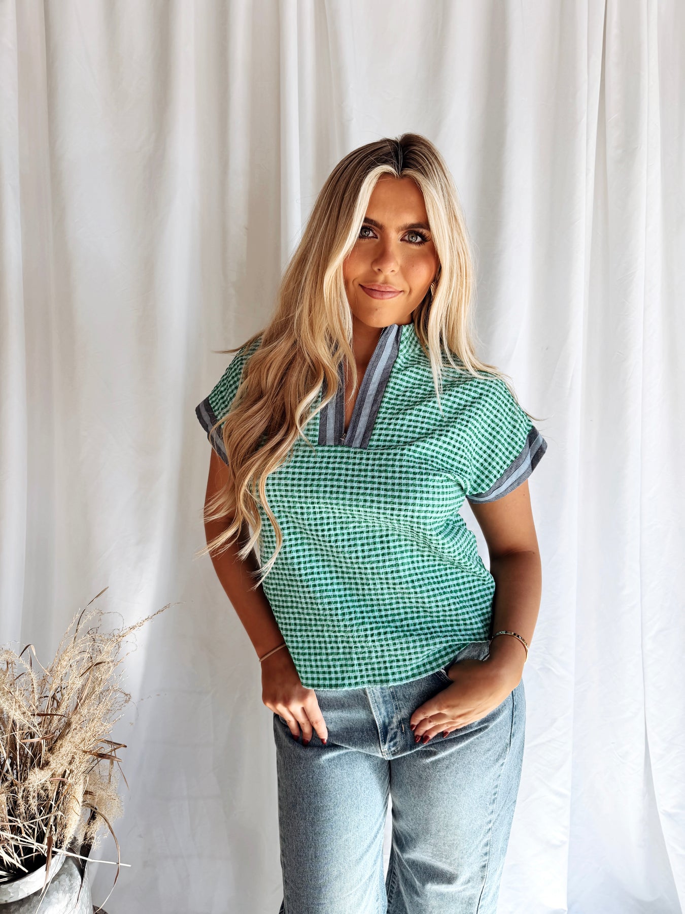 The Beat Goes On Top brings effortless style to your everyday rotation. This short-sleeve gingham patterned top features a classic checked design that pairs seamlessly with jeans, skirts, or shorts. The relaxed fit keeps things comfortable while the timeless pattern ensures you'll reach for it season after season. Perfect for casual outings, weekend adventures, or laid-back days at home.