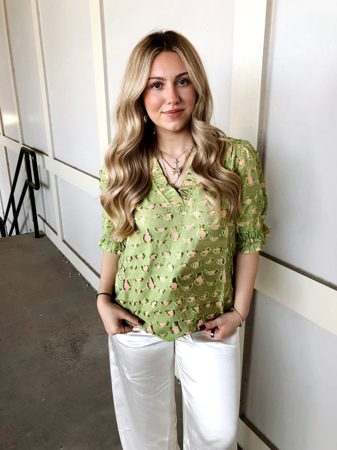 Add a pop of fresh style with The Quinn Top! This green, short-sleeve V-neck is your go-to for effortless cool. Perfect for sunny days or layering fun, it brings a playful vibe to any outfit while keeping you comfy and chic. Ready to turn heads? The Quinn Top’s got you covered!