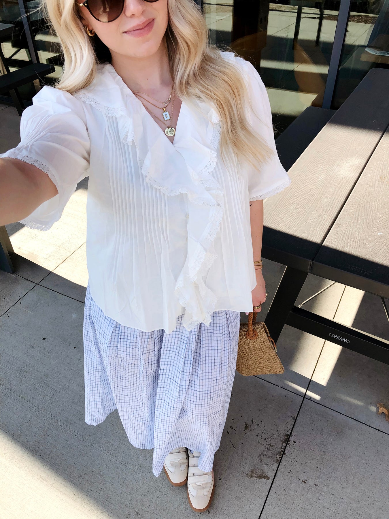 Elevate your wardrobe with this charming white top, featuring delicate pintuck detailing and feminine lace trim. The ruffled front adds a playful touch of sophistication, making it perfect for both casual outings and dressed-up occasions. Crafted with attention to detail, this versatile piece pairs effortlessly with jeans, skirts, or trousers for a polished, put-together look that turns heads wherever you go.