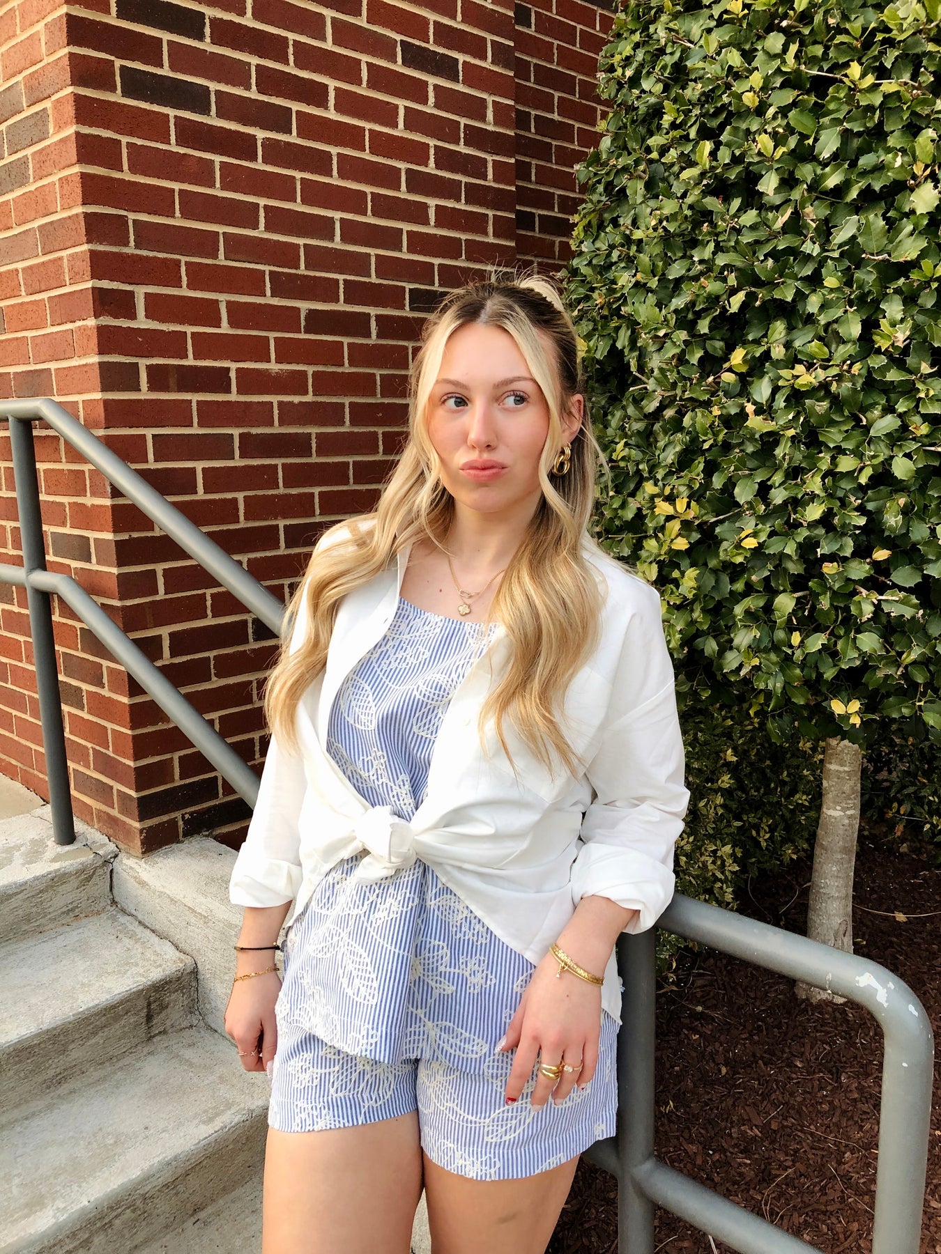 Escape to vacation mode in this charming embroidered striped spaghetti top! Delicate embroidery details add a touch of artistry to classic stripes, while adjustable side ties let you customize the fit for the perfect silhouette. Whether you're lounging poolside or exploring a new destination, this breezy top brings effortless style and comfort to your getaway wardrobe. Pack it, wear it, love it!