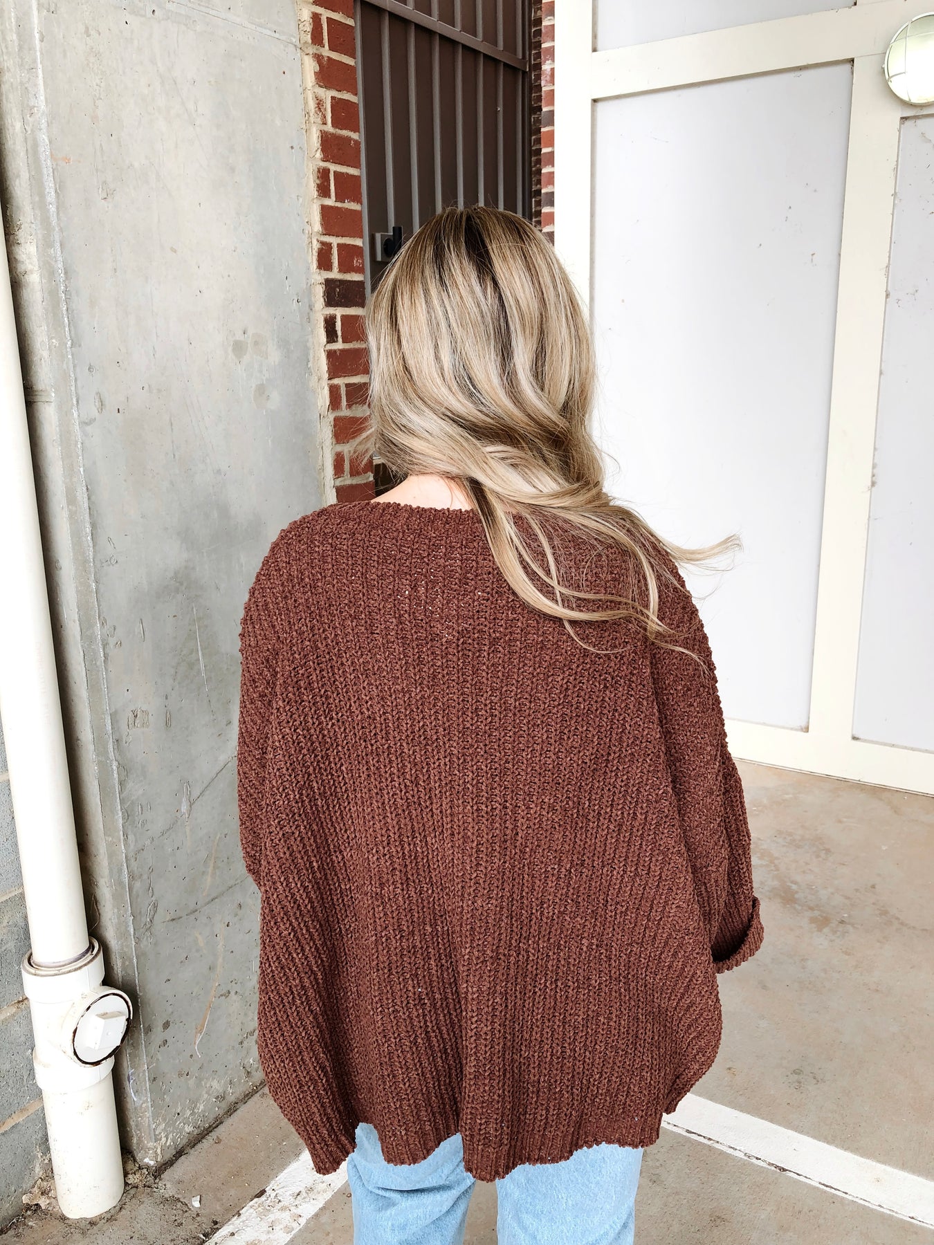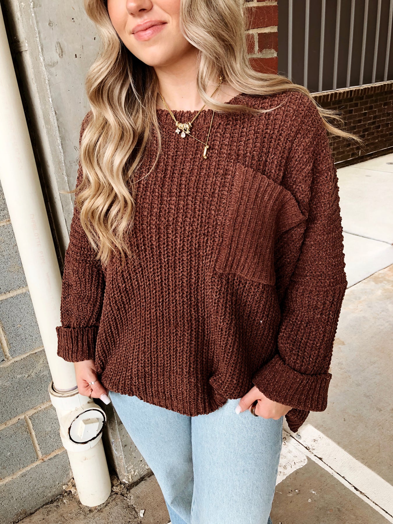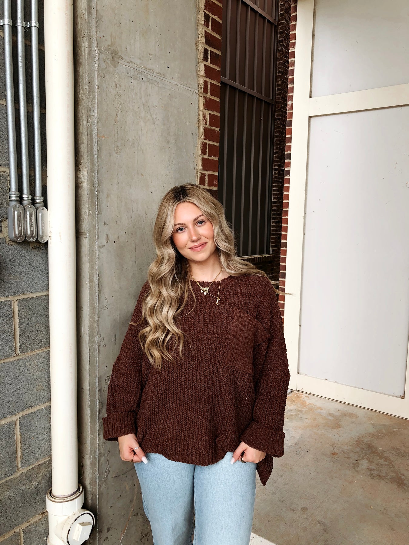 Cozy up in the YOU KNOW THE DRILL SWEATER, an oversized brown chenille dream that wraps you in softness. Perfect for lazy days or spontaneous adventures, its plush texture keeps you snug while adding effortless style to any outfit. Embrace the cozy vibes and let this sweater be your go-to comfort companion.