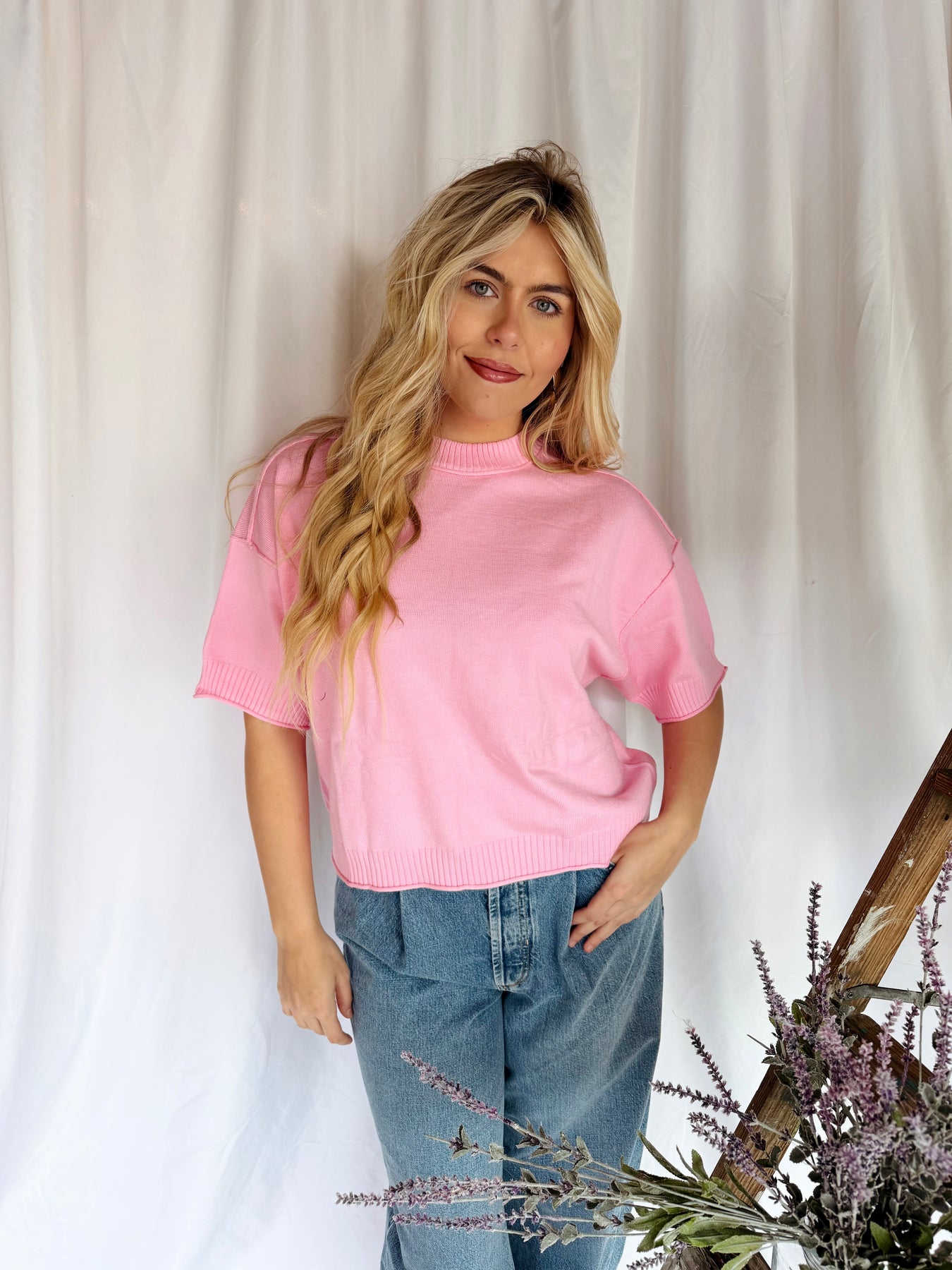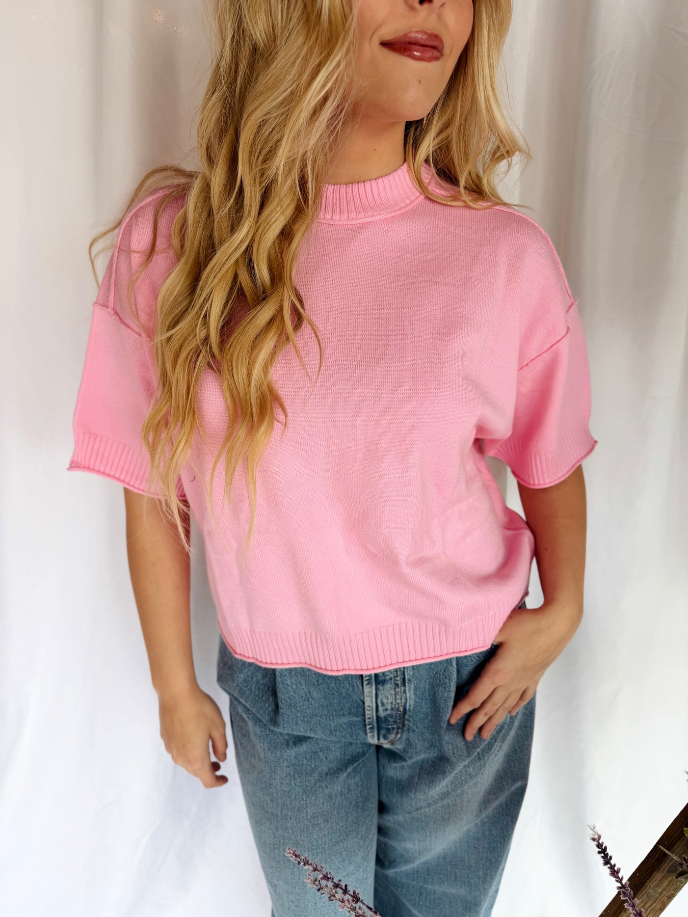 Spread joy in this cheerful pink sweater that's perfect for layering or wearing solo. The lightweight fabric keeps you comfortable all day long, while the elbow-length sleeves offer a flattering, effortless look. Whether you're heading to brunch or a casual hangout, this versatile piece brings a smile-worthy pop of color to any outfit. Cozy, cute, and ready to brighten your wardrobe.