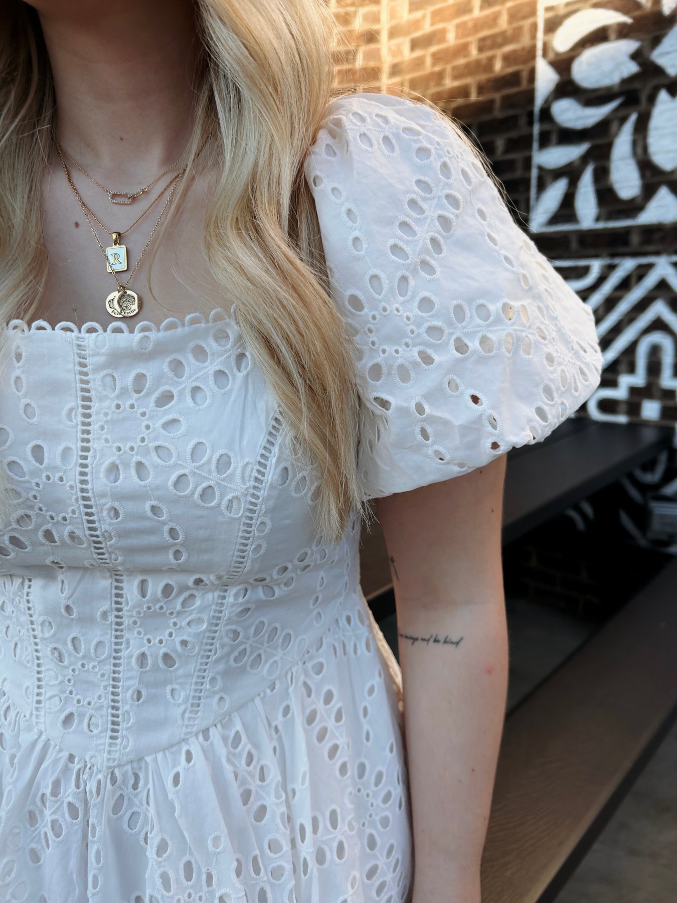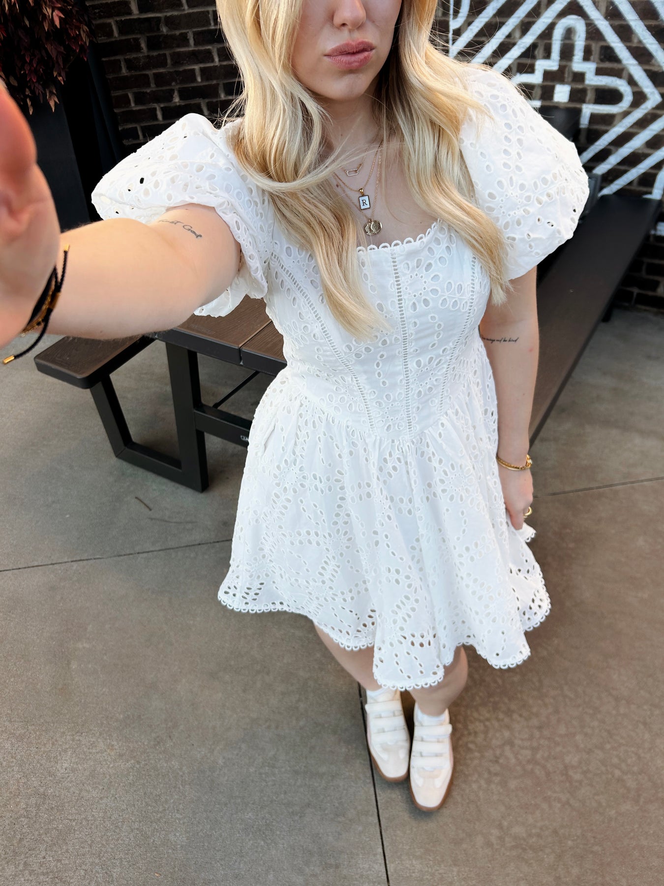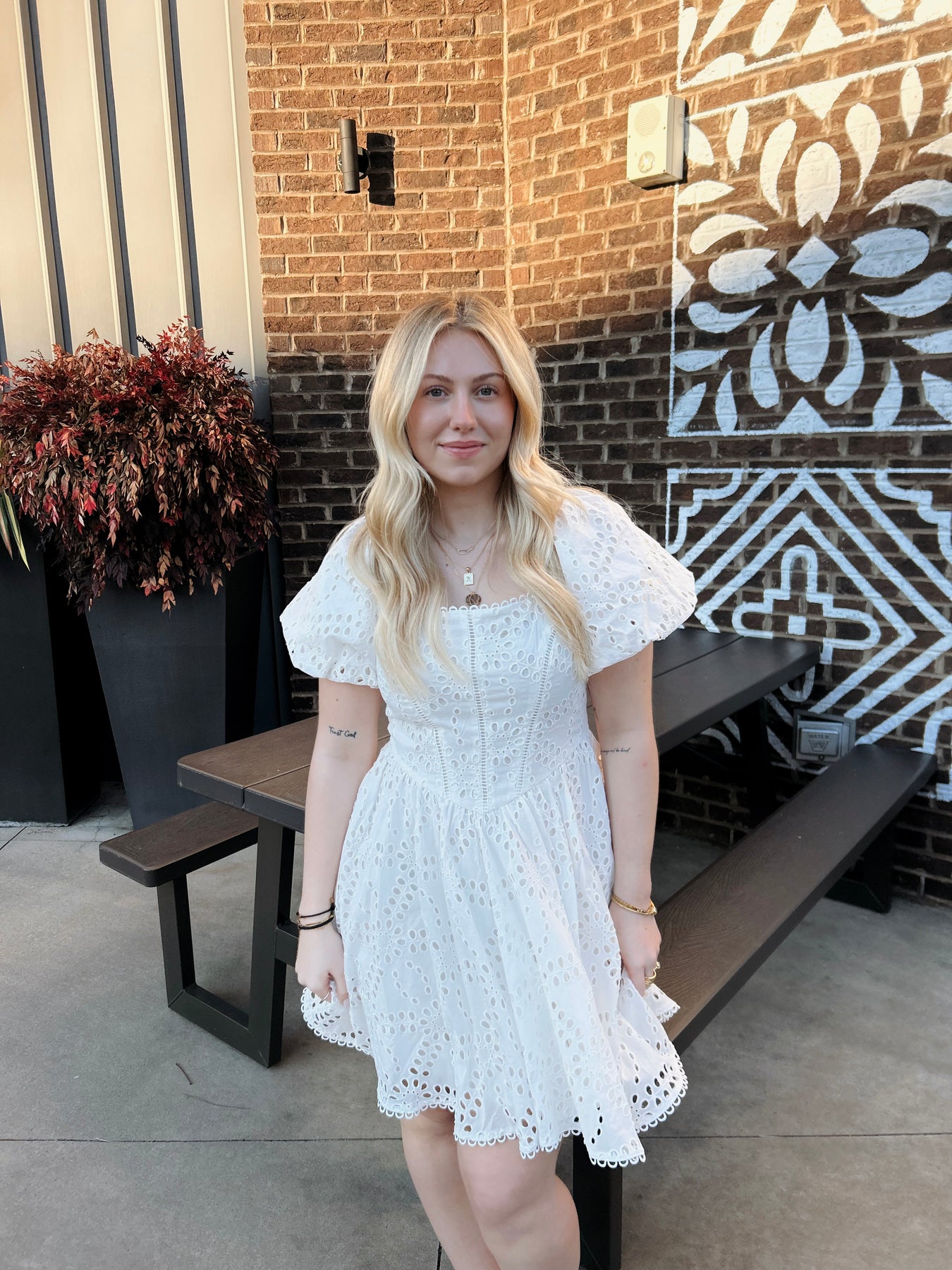 Elevate your spring wardrobe with the Briana Dress, a charming mini in antique white that's pure elegance. Featuring delicate eyelet detailing, this Steve Madden piece strikes the perfect balance between sophisticated and sweet. Whether you're celebrating Easter, attending graduation festivities, or simply embracing the season, this dress delivers effortless style. The timeless white hue pairs beautifully with any accessory, making it your go-to choice for special occasions and memorable moments.