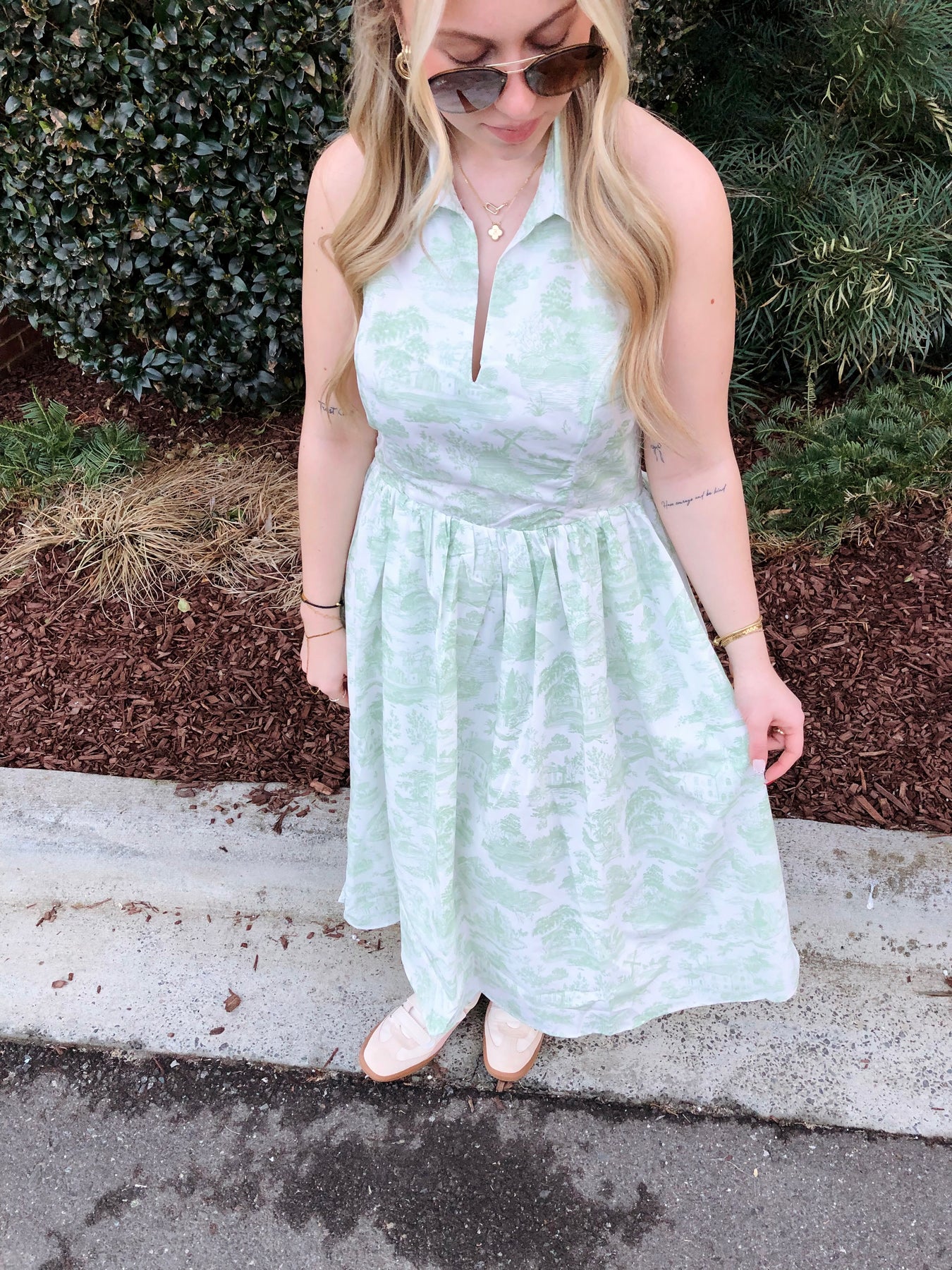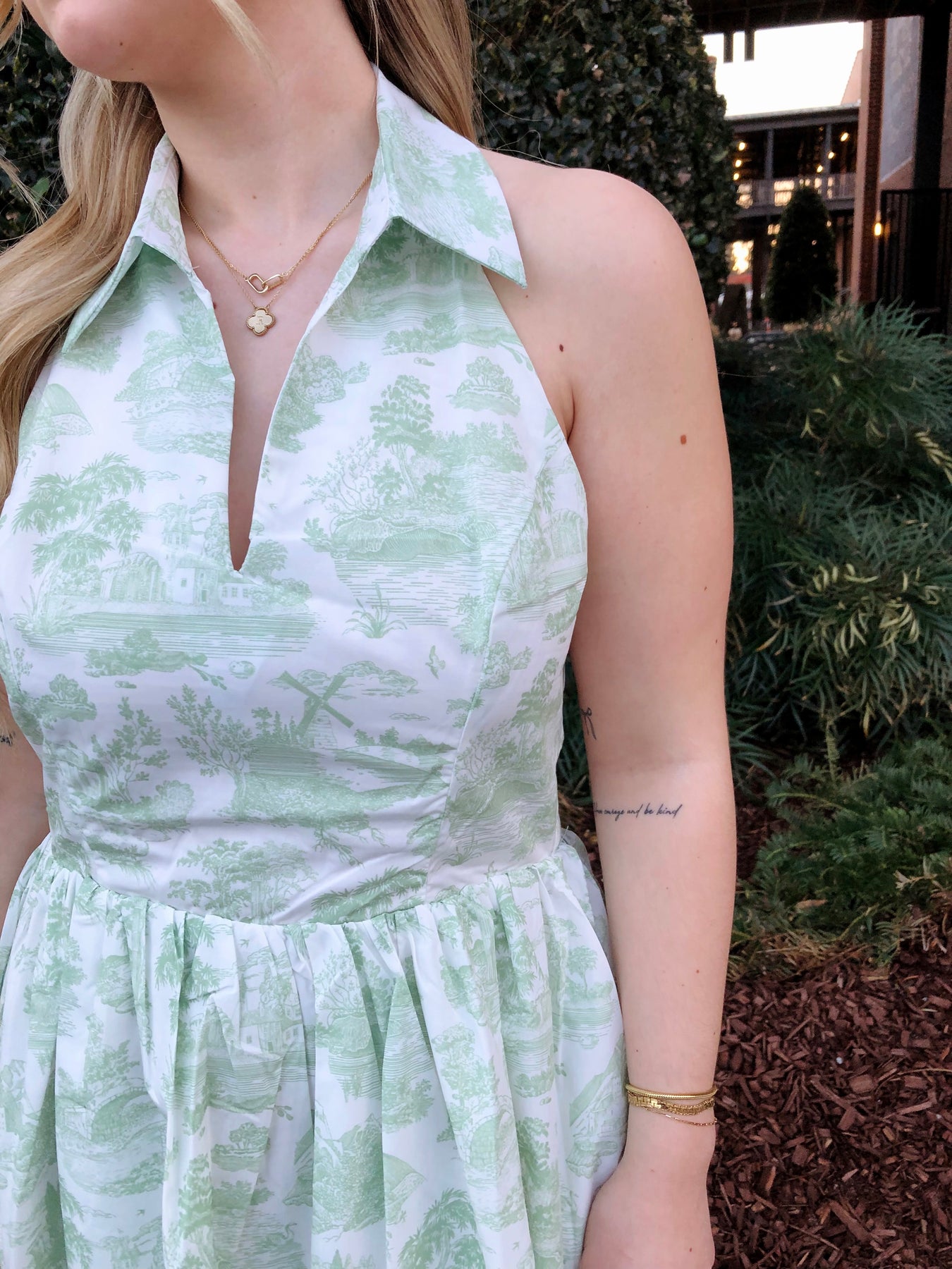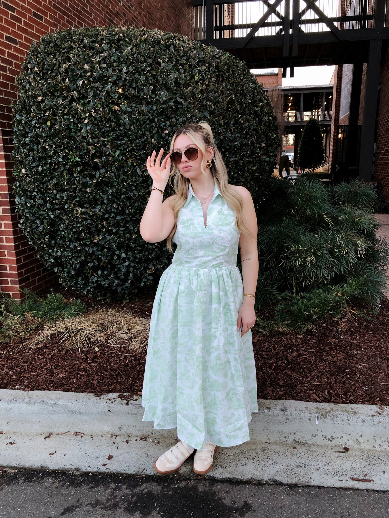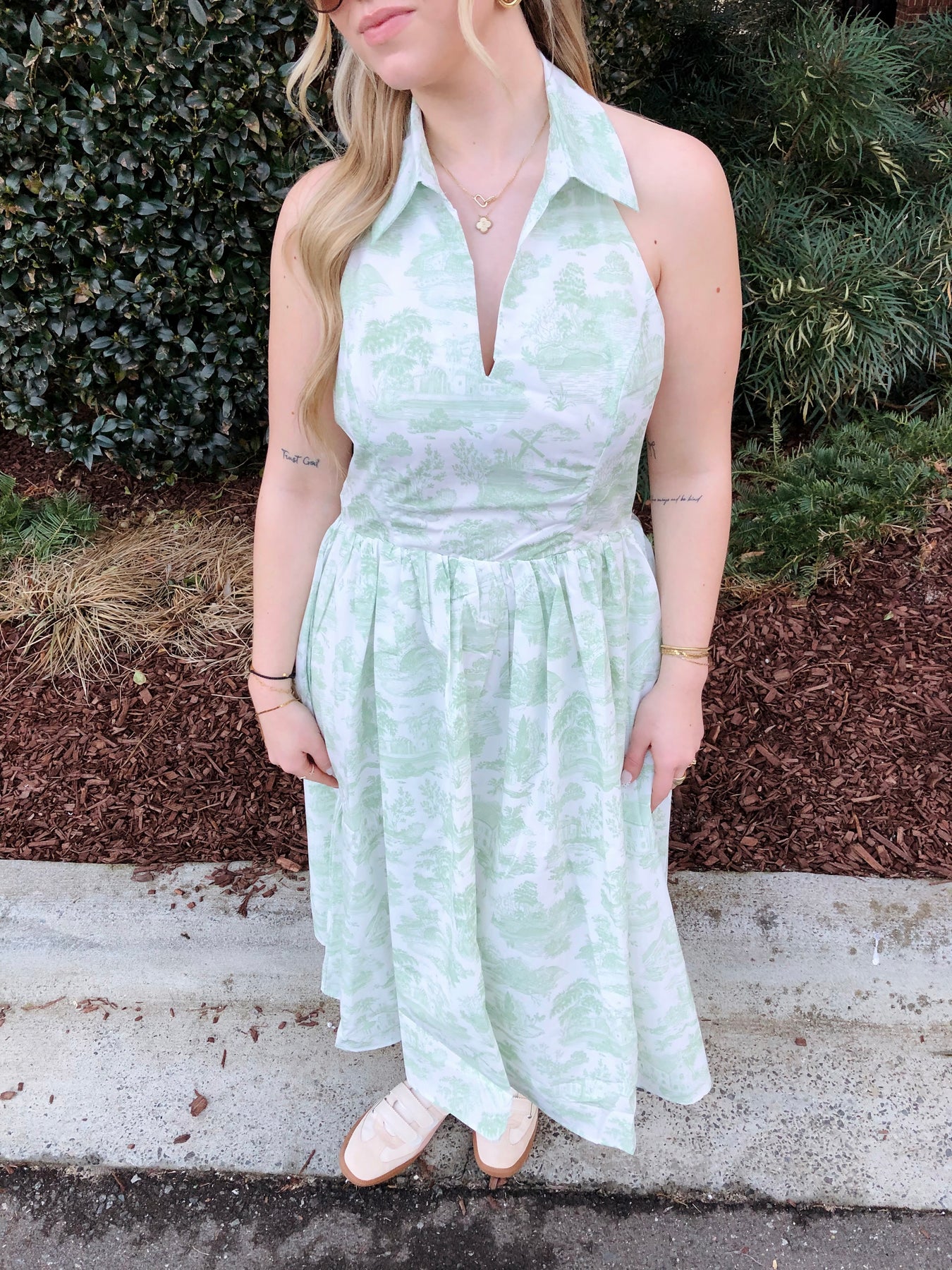 The Carolina Dress brings fresh, preppy vibes with its eye-catching green and white patterned design. The flattering halter neck keeps things secure while the crisp collar adds a touch of polished charm. Perfect for brunch dates, garden parties, or whenever you want to turn heads with effortless style. This dress strikes that sweet spot between fun and put-together—dress it up with heels or keep it casual with sneakers.