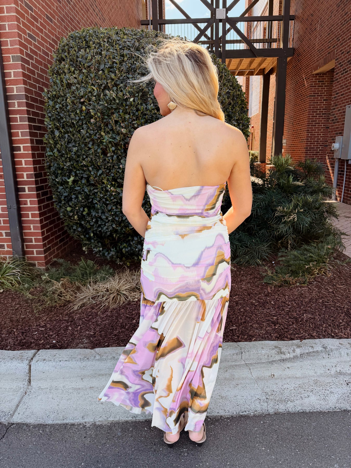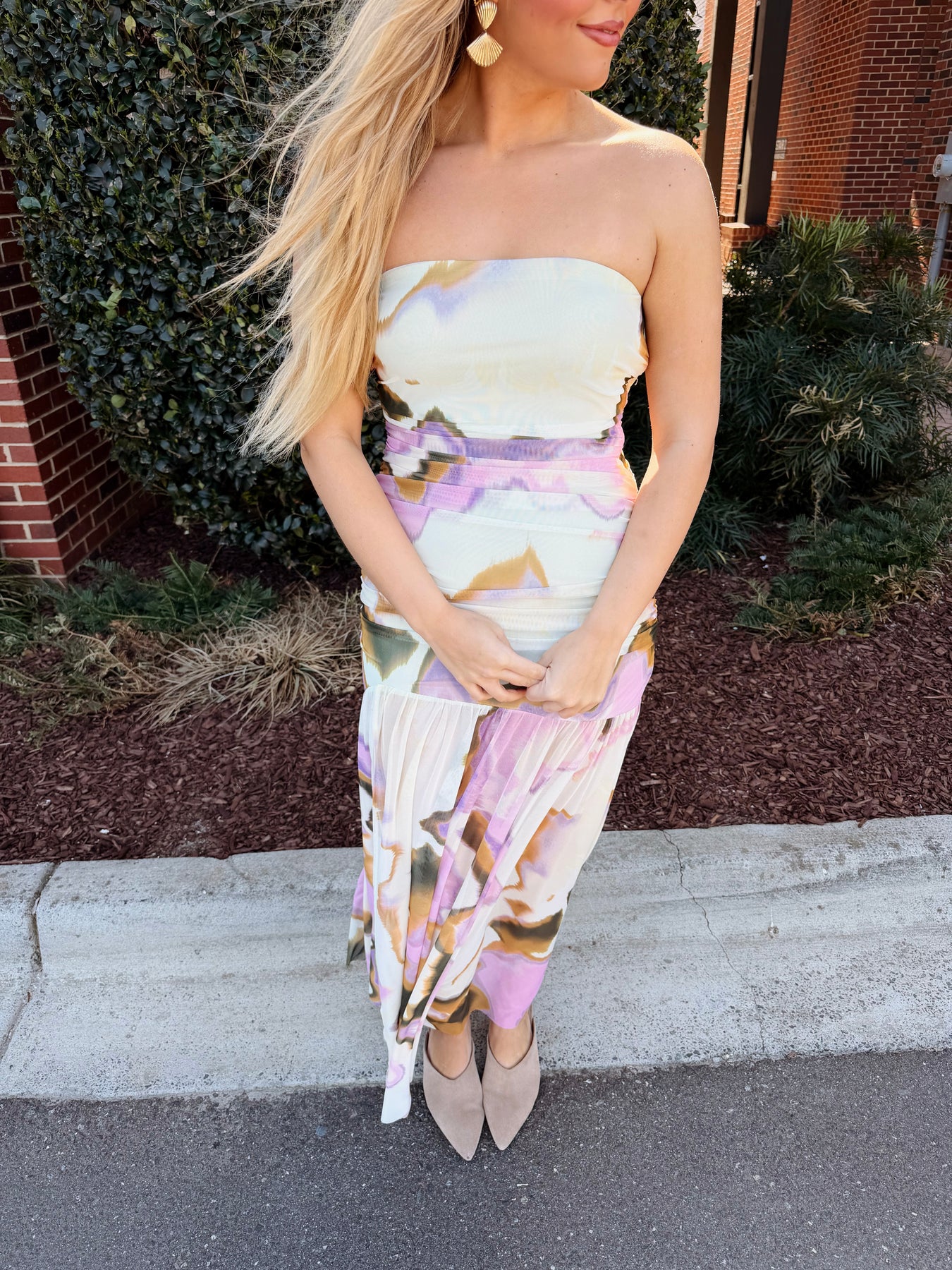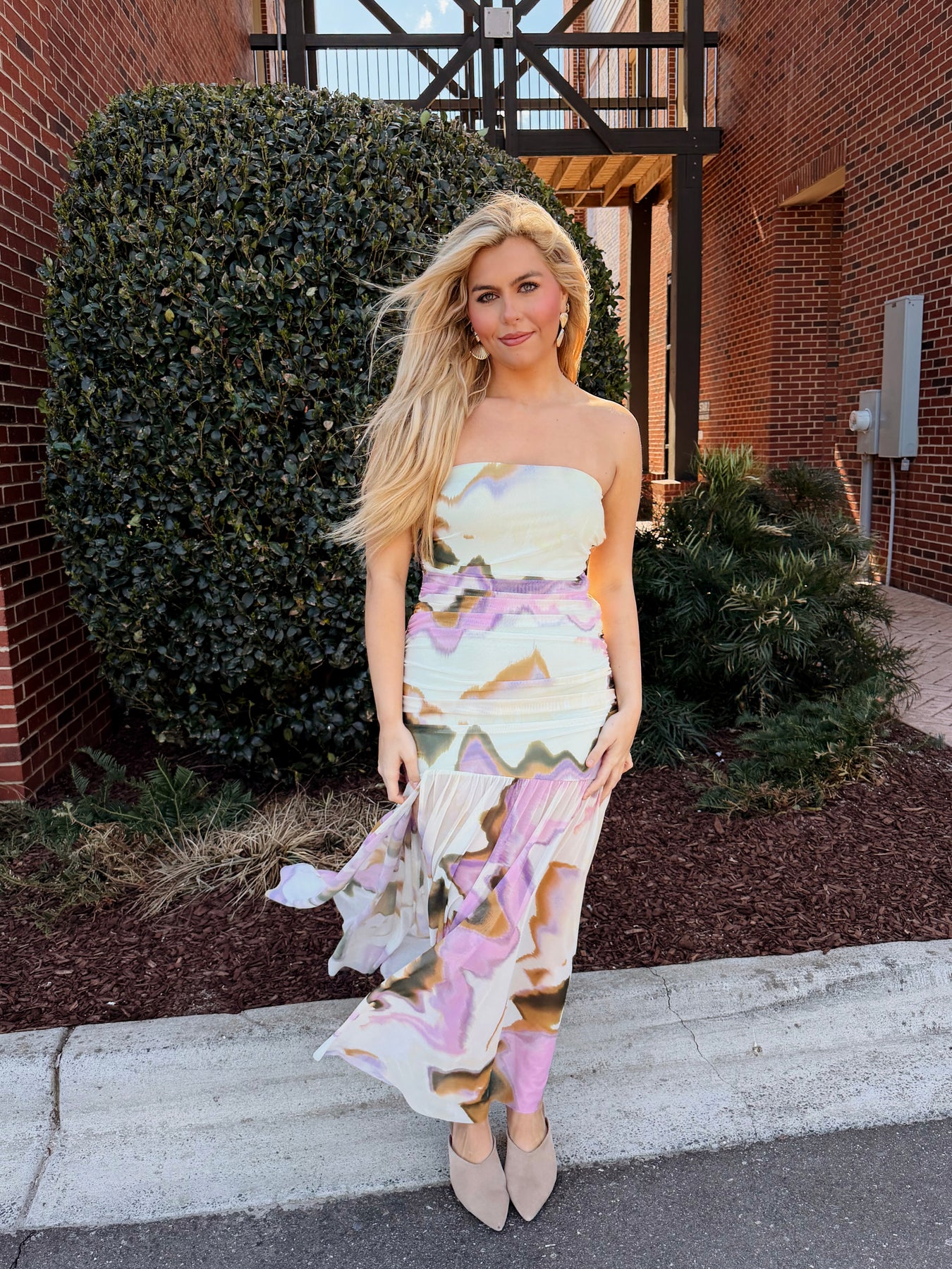 Effortless elegance meets modern sophistication in this KERRIE DRESS MULTI. The fluid silhouette drapes beautifully while the side slit adds movement and visual interest, creating a flattering balance between coverage and allure. Perfect for evening events, resort wear, or any occasion calling for refined style. The strapless neckline offers versatility for layering or showcasing statement jewelry, while the flowing fabric ensures comfortable, graceful wear throughout the day or night.