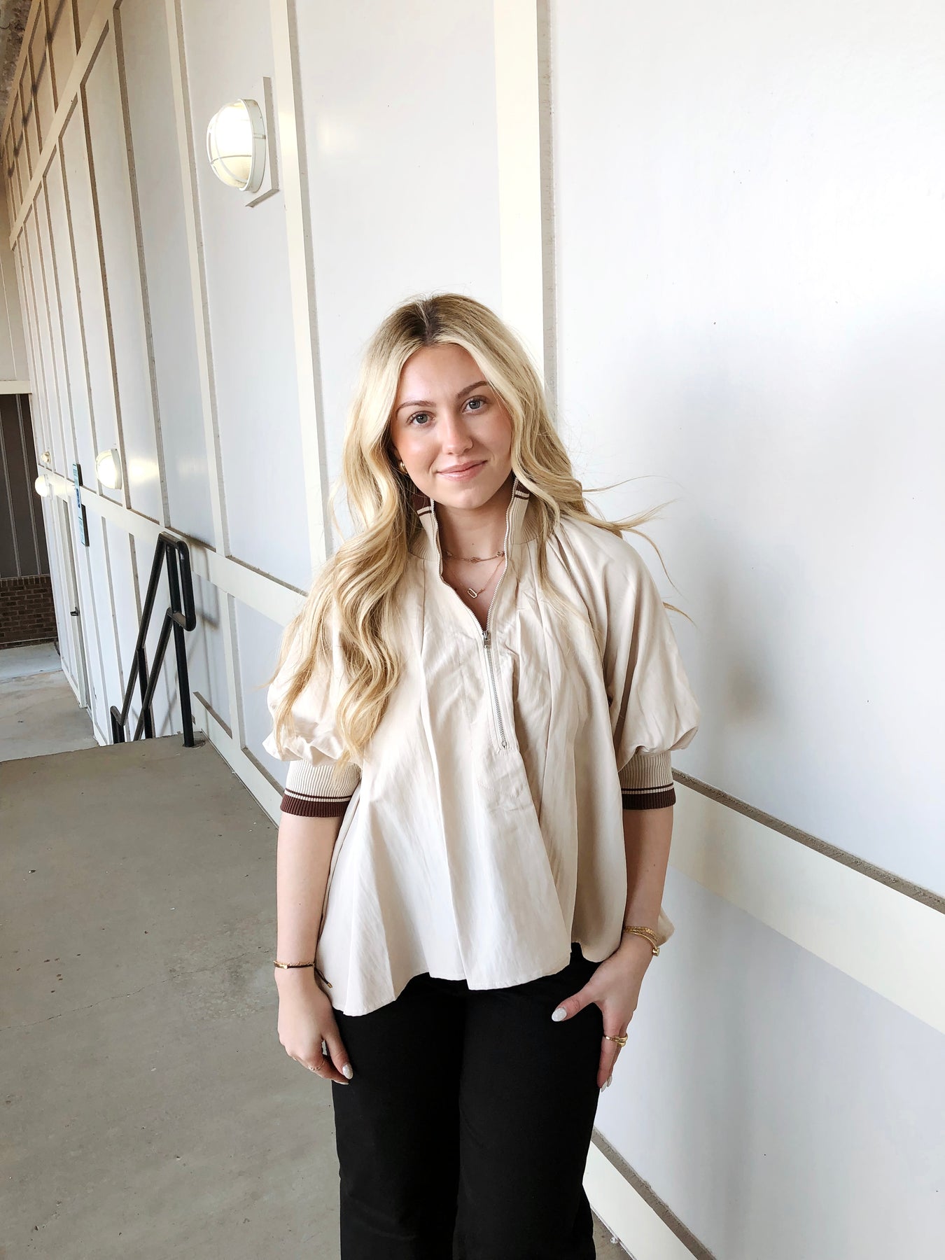 Embrace effortless style with this taupe mock neck band puff sleeve blouse—the perfect piece for anyone who refuses to compromise on comfort or flair. The soft, neutral taupe hue pairs beautifully with everything in your wardrobe, while the charming puff sleeves add just the right amount of personality. The mock neck keeps things polished and put-together, making this top ideal for casual outings or dressed-up occasions. Whether you're running errands or meeting friends for coffee, this blouse lets you express yourself without overthinking it. Live freely, dress boldly.
