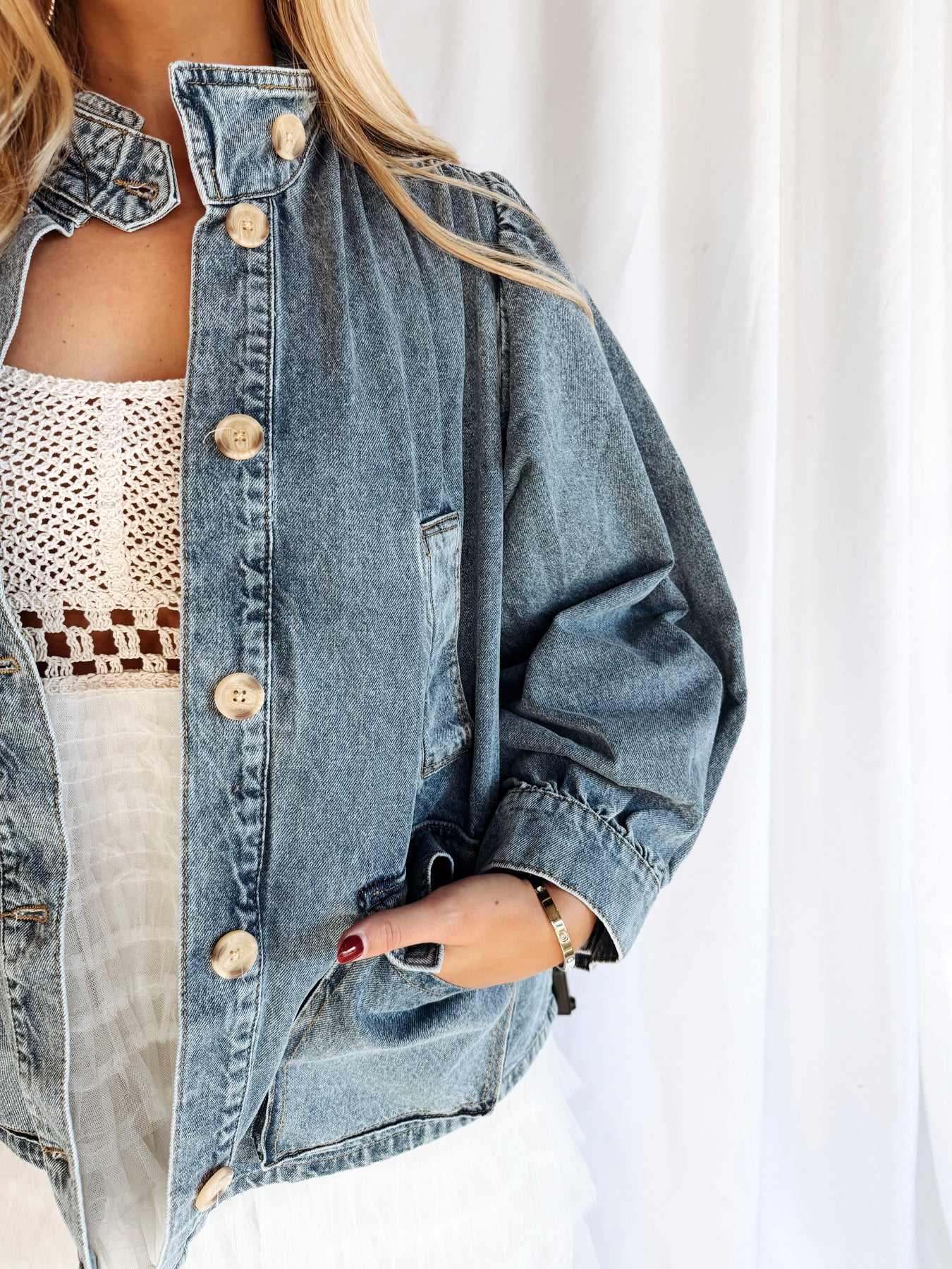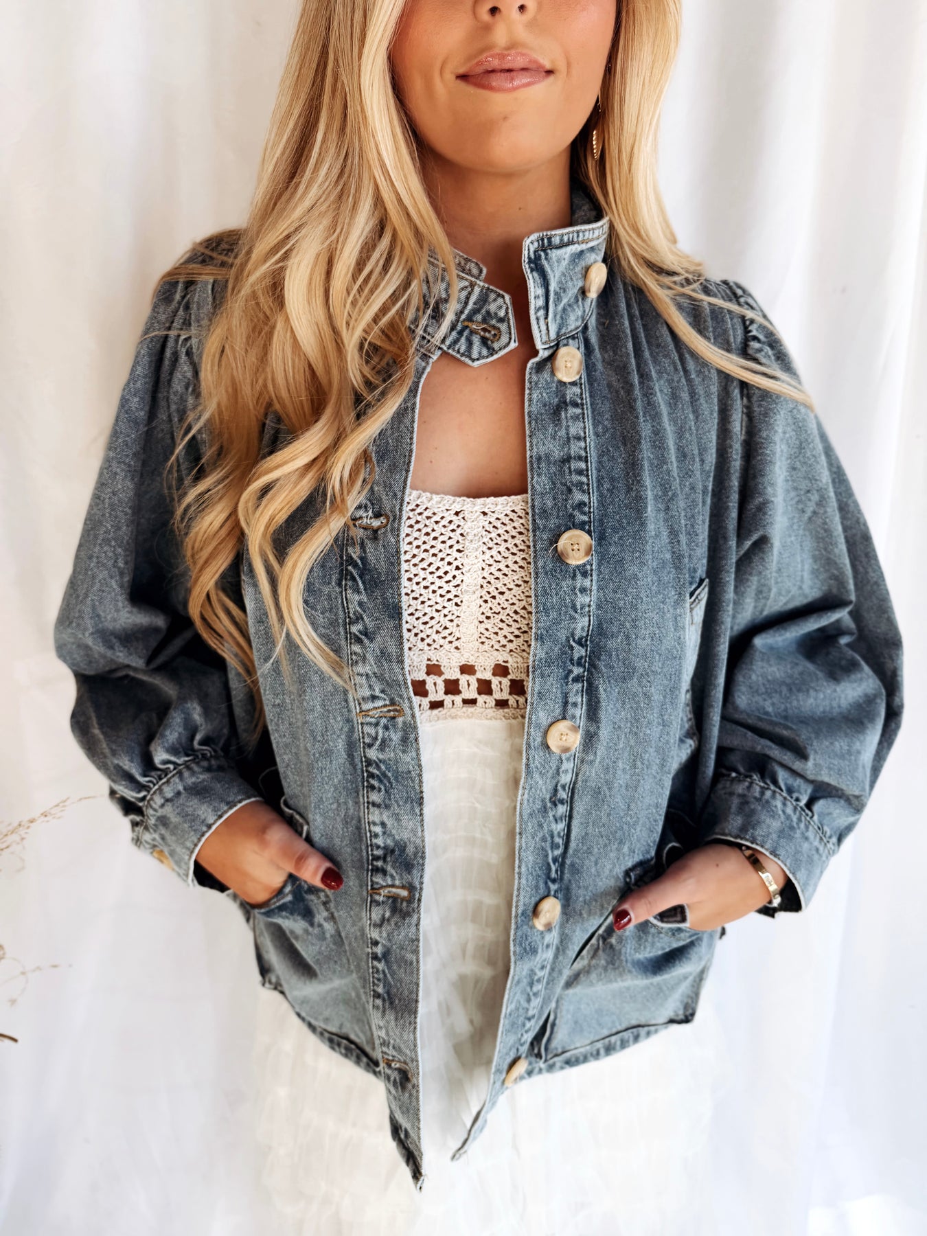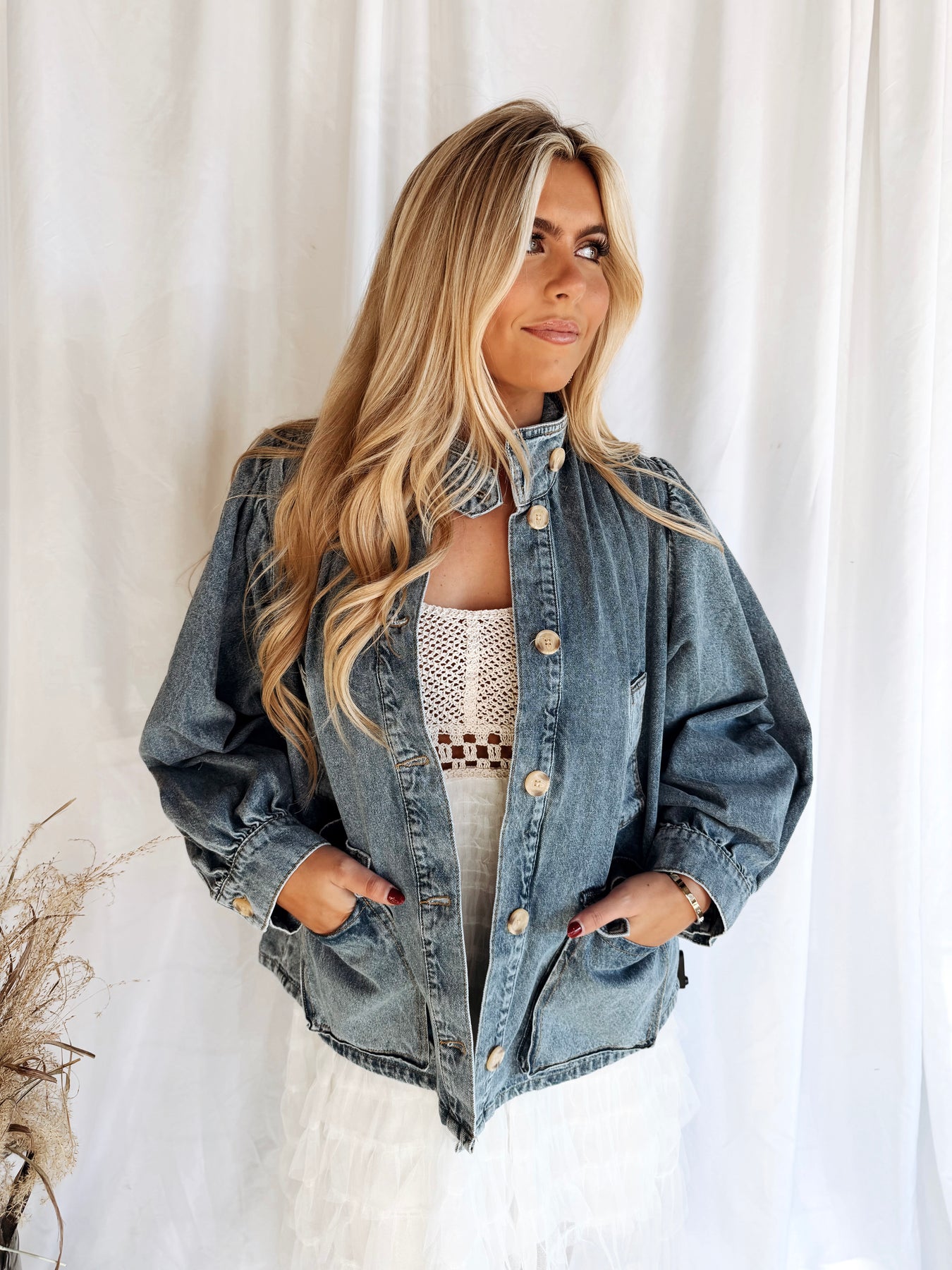 The Marceline Jacket is your new denim essential—a Steve Madden classic that's equal parts cool and practical. This button-down style features functional pockets perfect for stashing your phone, keys, or that snack you forgot about. Throw it over anything for instant effortless vibes. Whether you're heading out for coffee or a casual night out, this versatile jacket is ready to become your go-to layer.