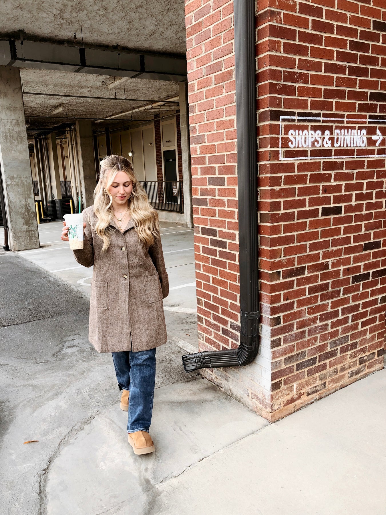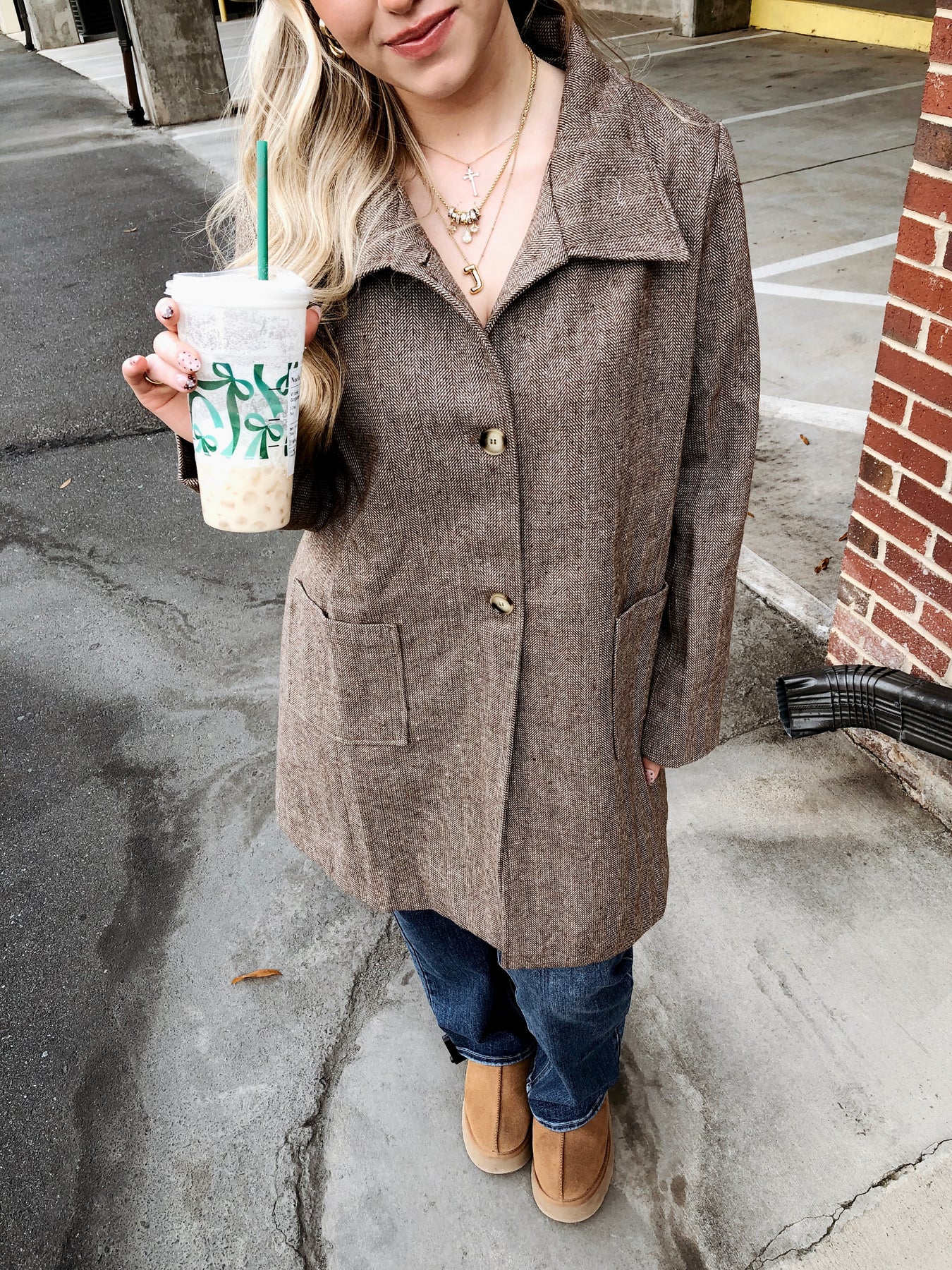 Elevate your everyday style with this chic tailored coat that's anything but ordinary. Featuring a striking asymmetric button-down closure and rich brown tones, it's the perfect piece to layer over your favorite outfits. The structured silhouette and thoughtful details make it ideal for dressing up casual looks or adding polish to your professional wardrobe. Whether you're heading to brunch or the office, this versatile jacket brings effortless sophistication to every occasion.
