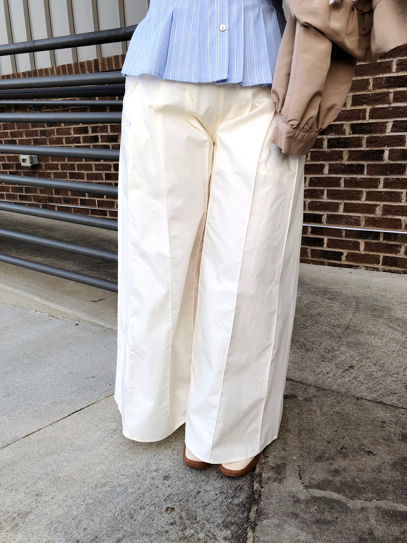 Effortlessly chic and undeniably comfortable, these pleated wide-leg pants in creamy milk white are your new everyday essential. The structured pleats add dimension and movement, while the relaxed silhouette flatters every frame. Perfect for dressing up with a blazer or keeping it casual with a tee, these versatile trousers transition seamlessly from office to weekend. A timeless neutral that pairs with everything in your closet.