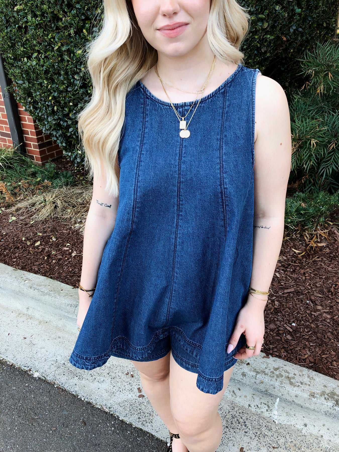 Effortless style meets timeless appeal with this sleeveless dark washed denim swing top. The relaxed silhouette drapes beautifully, offering comfortable movement and a flattering fit for any body type. Perfect for layering or wearing solo, this versatile piece transitions seamlessly from casual weekends to dressed-up occasions. The rich dark wash adds depth and pairs easily with your favorite jeans, skirts, or trousers. A wardrobe essential that works as hard as you do.