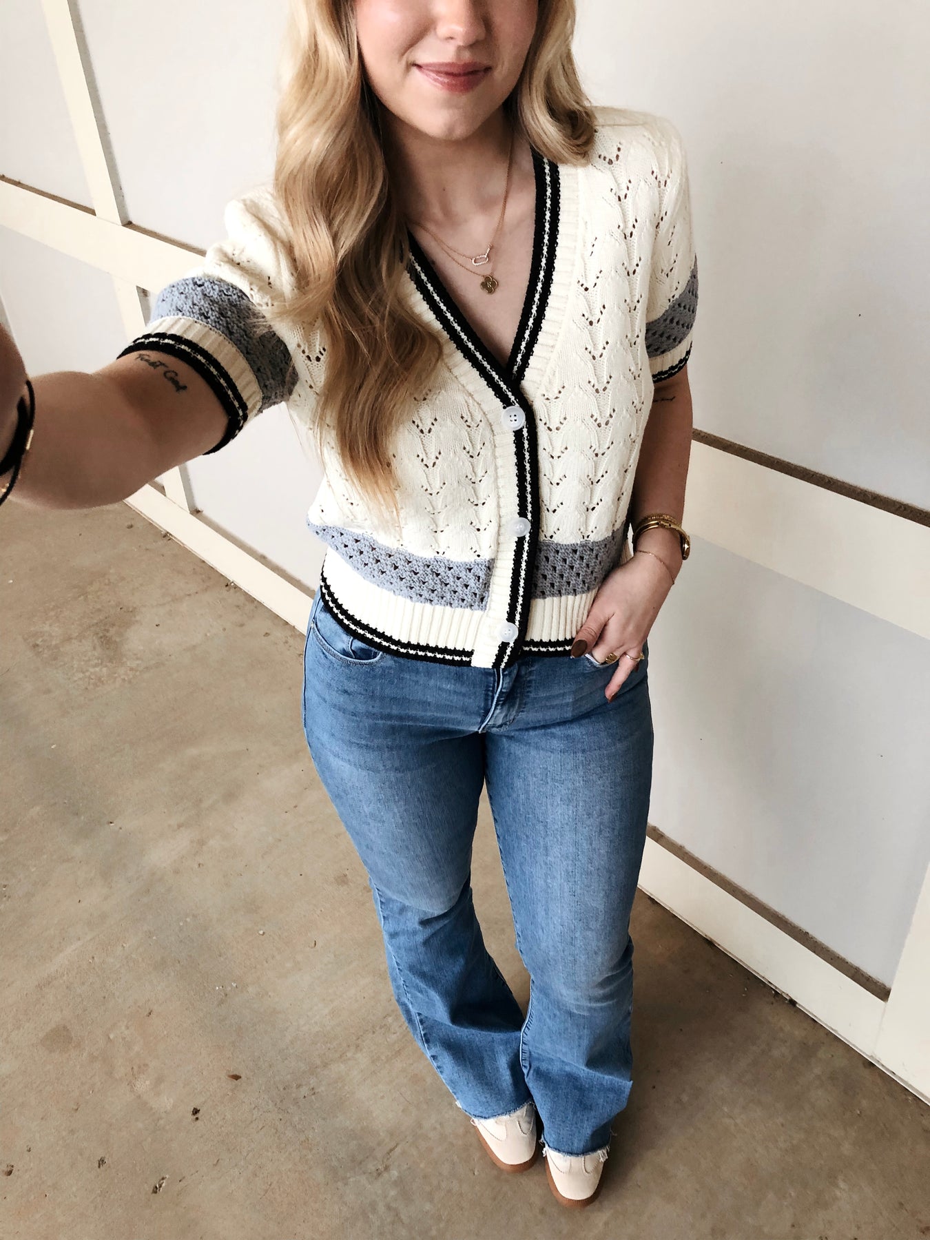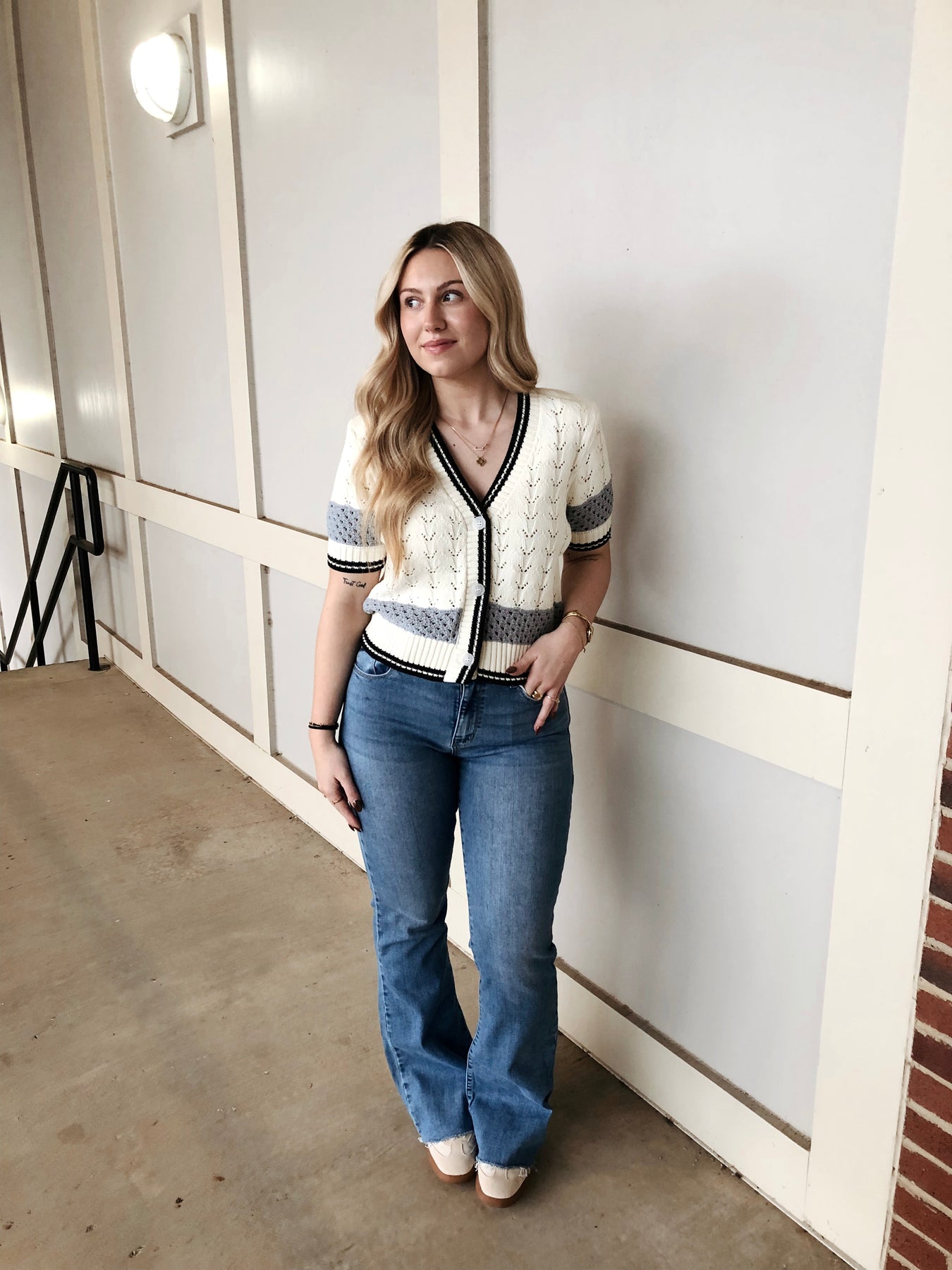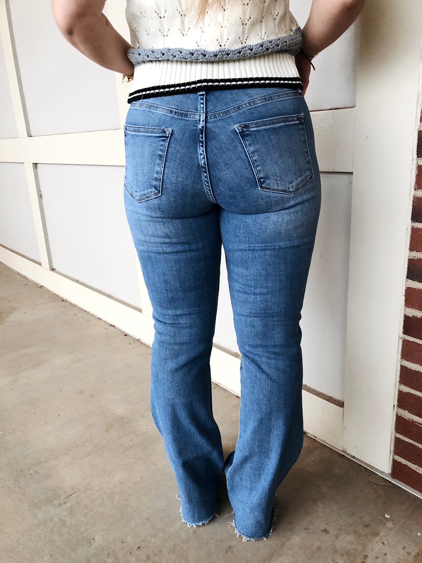 The Vanessa Jean brings retro flair to your everyday rotation with a flattering medium wash and classic flare silhouette. Designed with a playful hem detail that catches the light just right, these jeans strike the perfect balance between vintage-inspired and modern comfort. Whether you're dressing up for a night out or keeping it casual, the Vanessa delivers effortless style that works with everything in your closet. A timeless piece that never goes out of style.