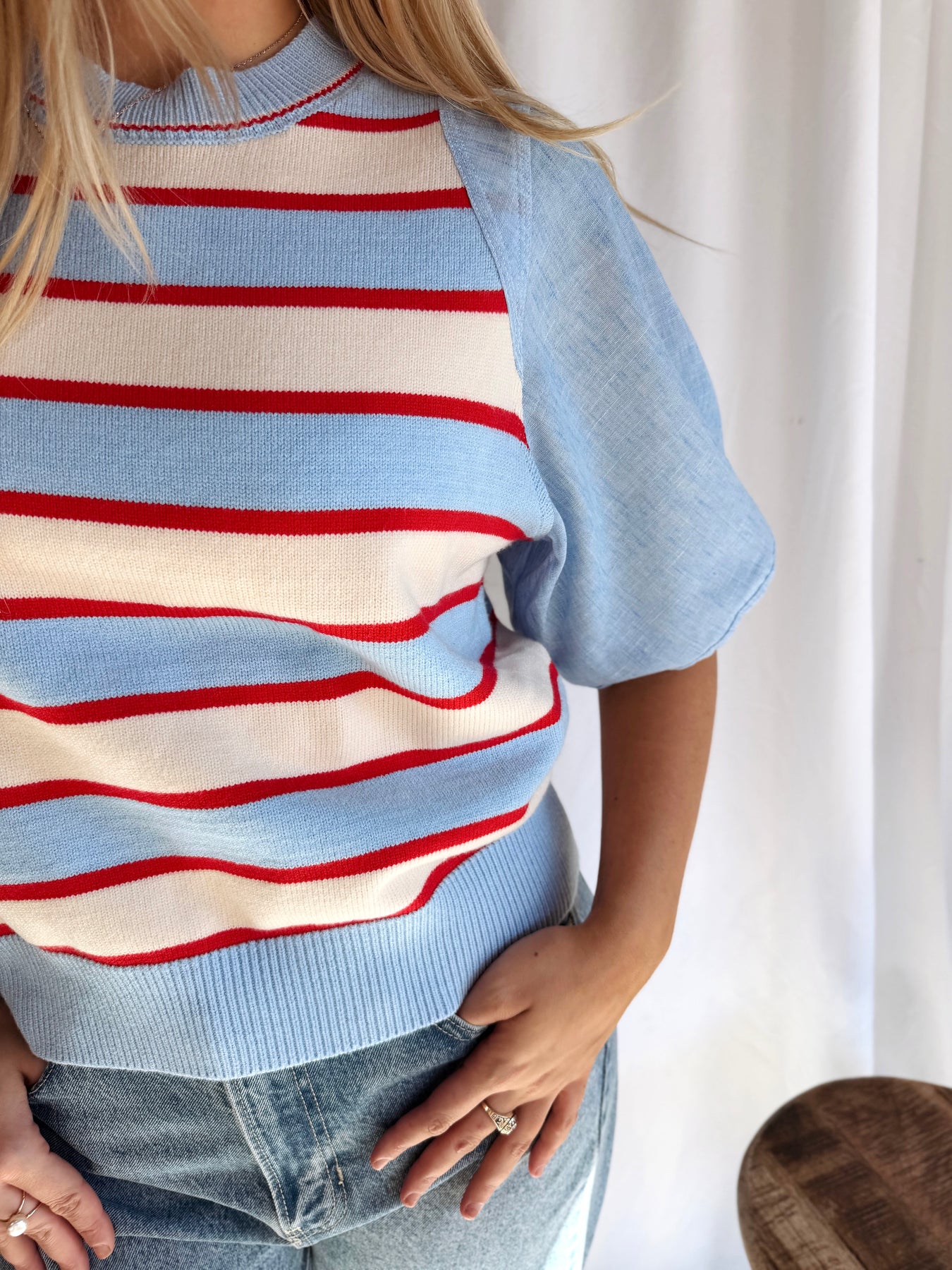 Spot the style in this playful puff sleeve knit top featuring bold stripes that'll have everyone doing a double-take. The voluminous sleeves add a fun, flirty touch while the cozy knit fabric keeps you comfortable all day long. Perfect for mixing prints, layering, or making a statement on its own. Channel your inner Waldo and stand out from the crowd!